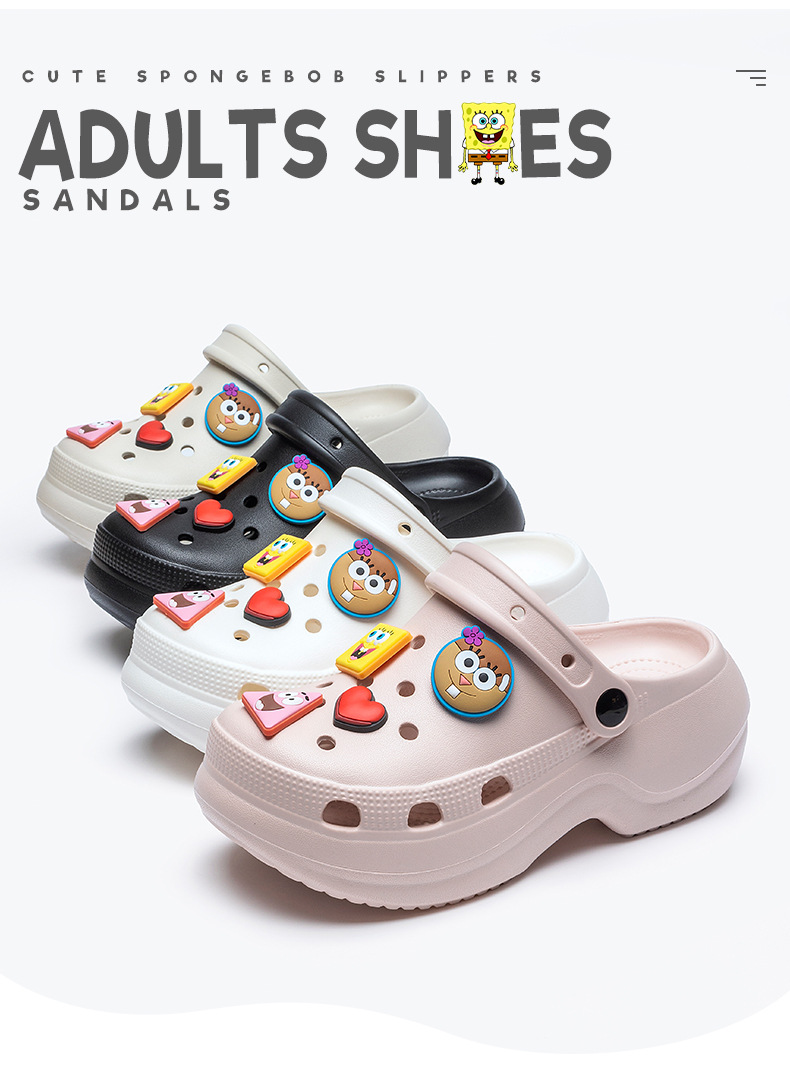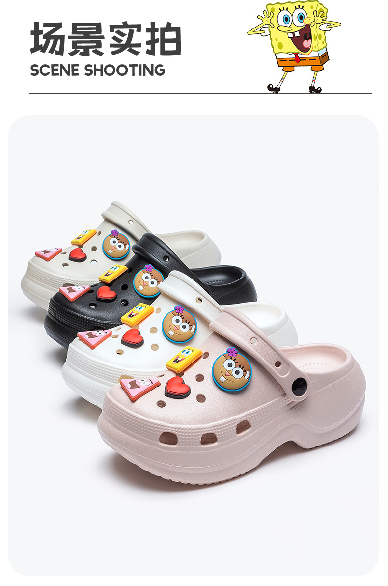 여름철 여성을 위한 스폰지밥 키높이 부드러운 밑창 발가락 슬리퍼, 미끄럼 방지, 냄새 방지, 학생용 아웃도어 웨어, 여성용 나막신 샌들스토어 가기