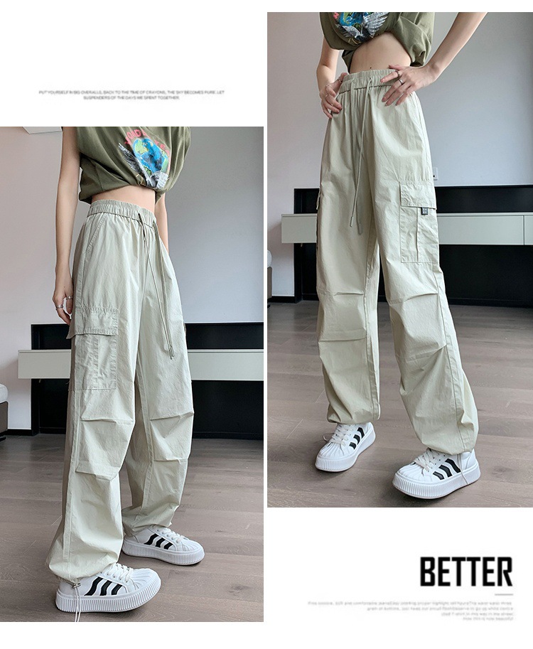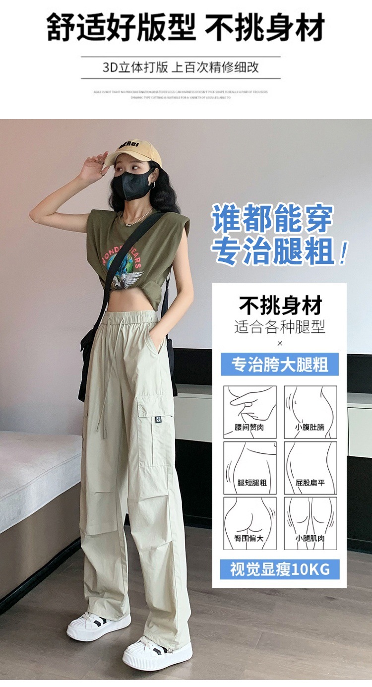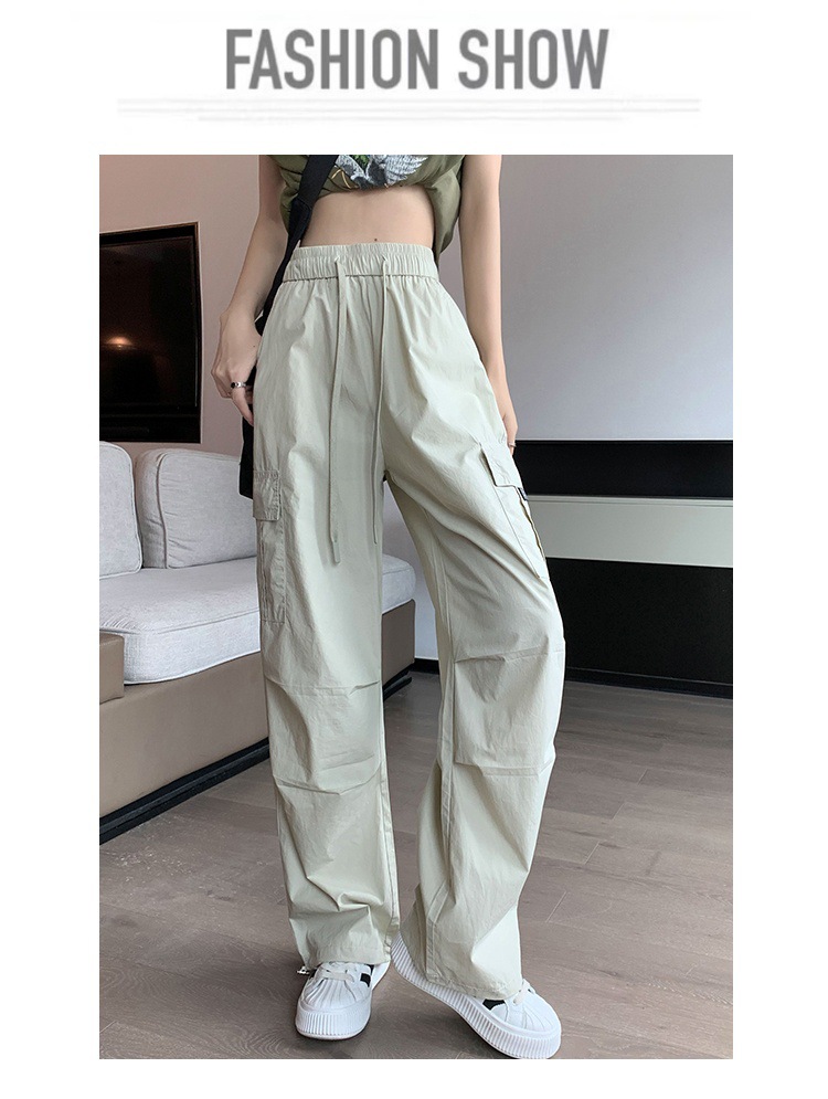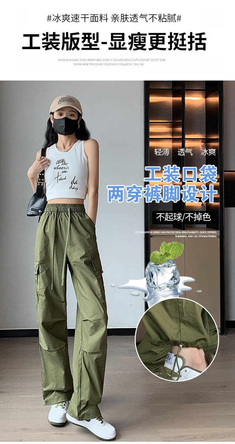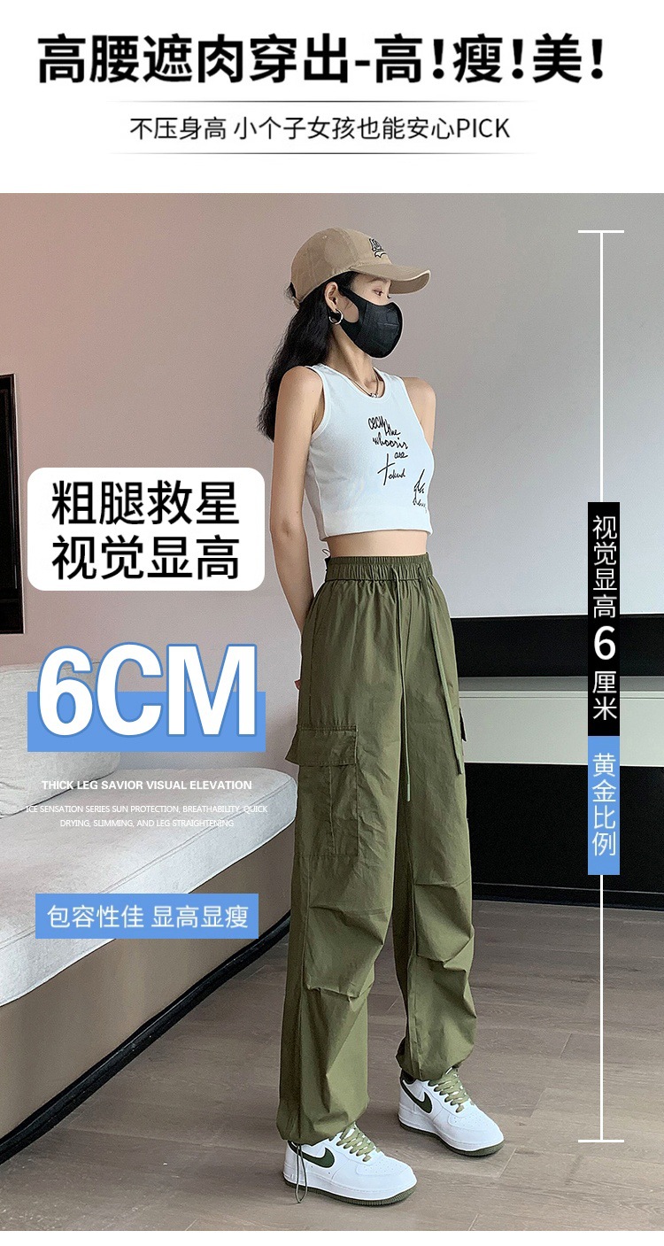카키 작업복 바지 여성의 봄 새로운 높은 허리 끈 야외 등산 바지 캐주얼 댄스 미국 빠른 건조 스포츠 바지