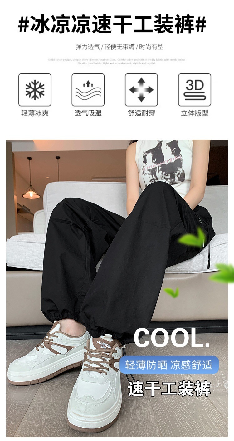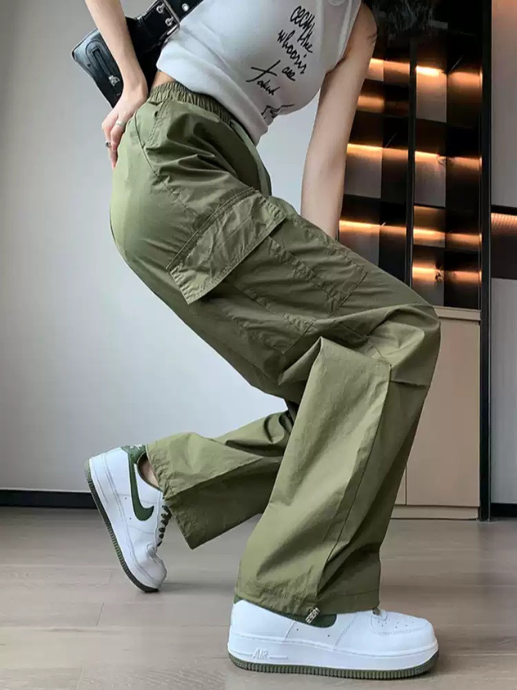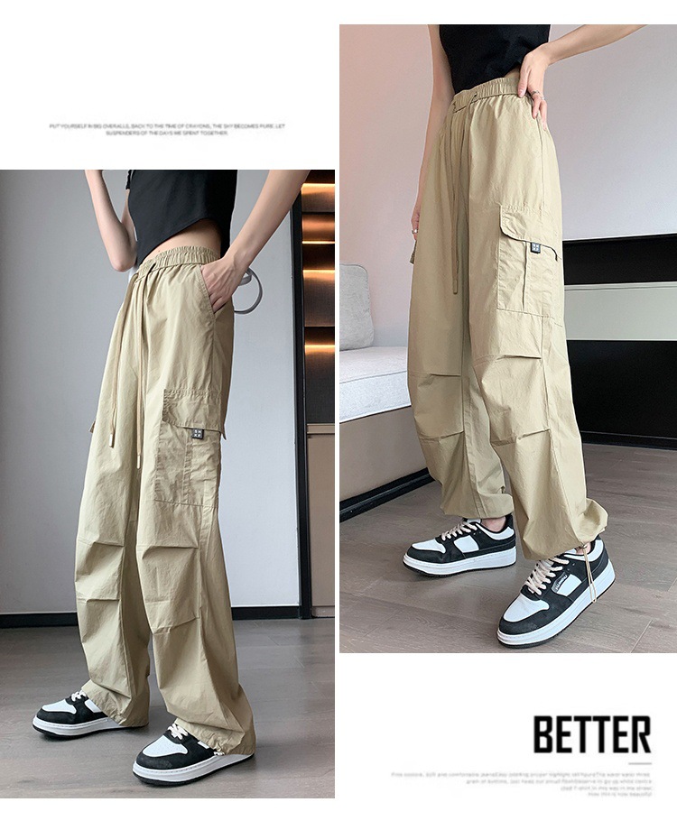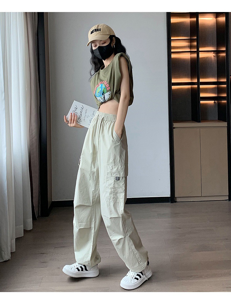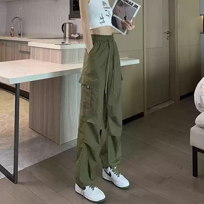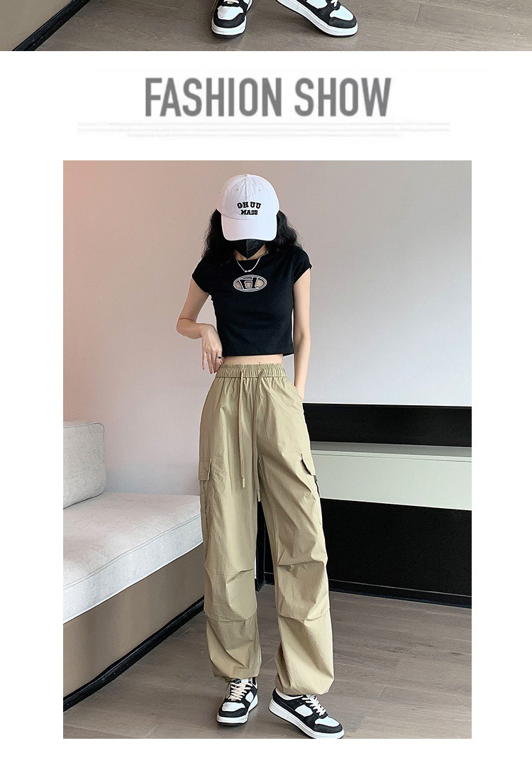 카키 작업복 바지 여성의 봄 새로운 높은 허리 끈 야외 등산 바지 캐주얼 댄스 미국 빠른 건조 스포츠 바지