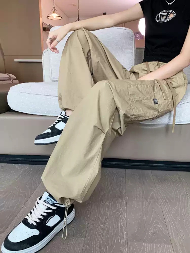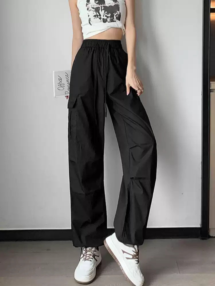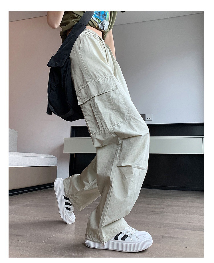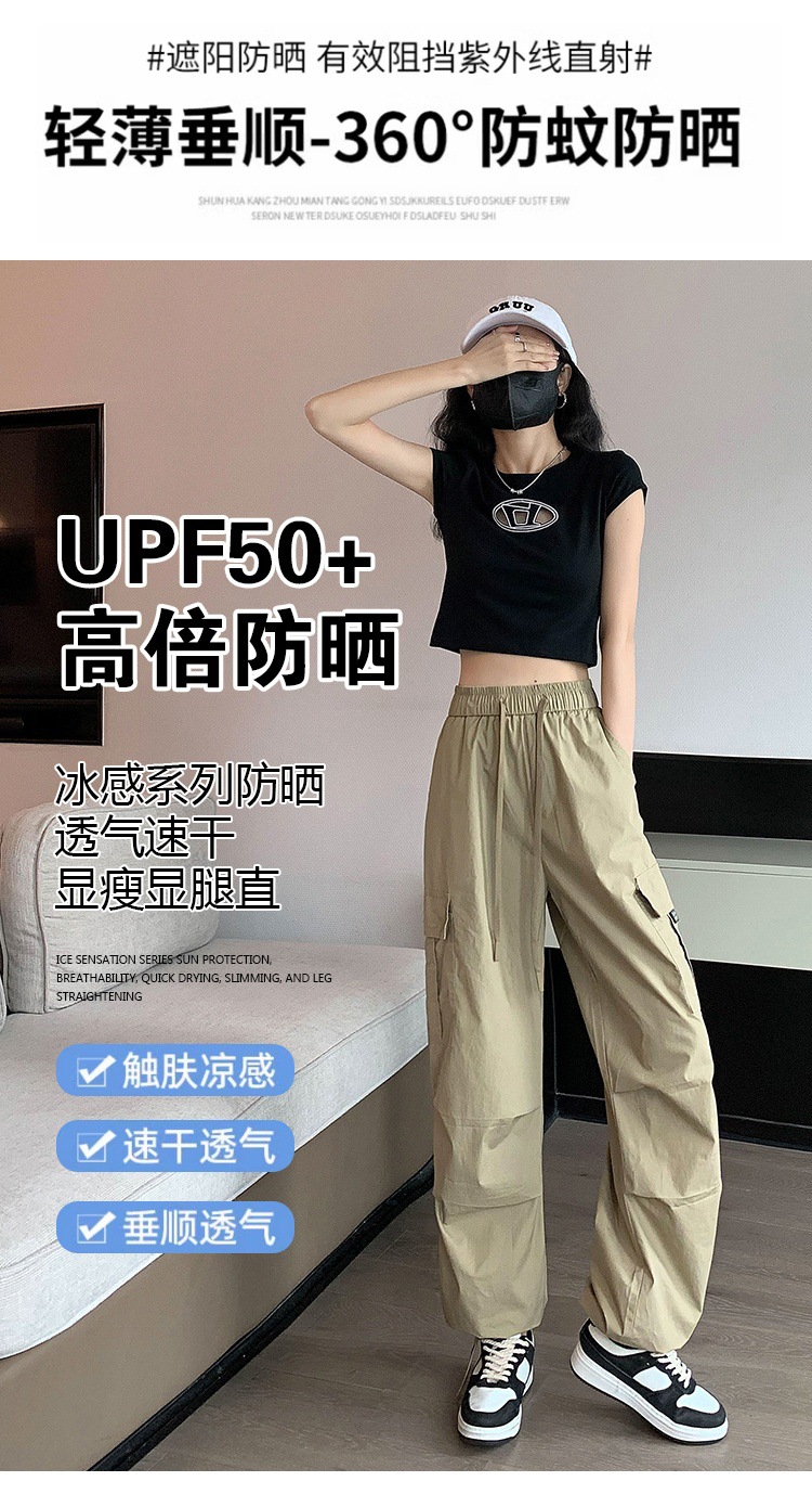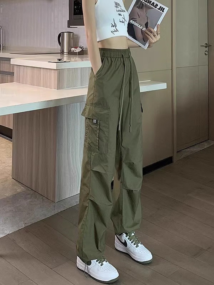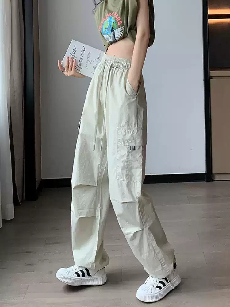 카키 작업복 바지 여성의 봄 새로운 높은 허리 끈 야외 등산 바지 캐주얼 댄스 미국 빠른 건조 스포츠 바지