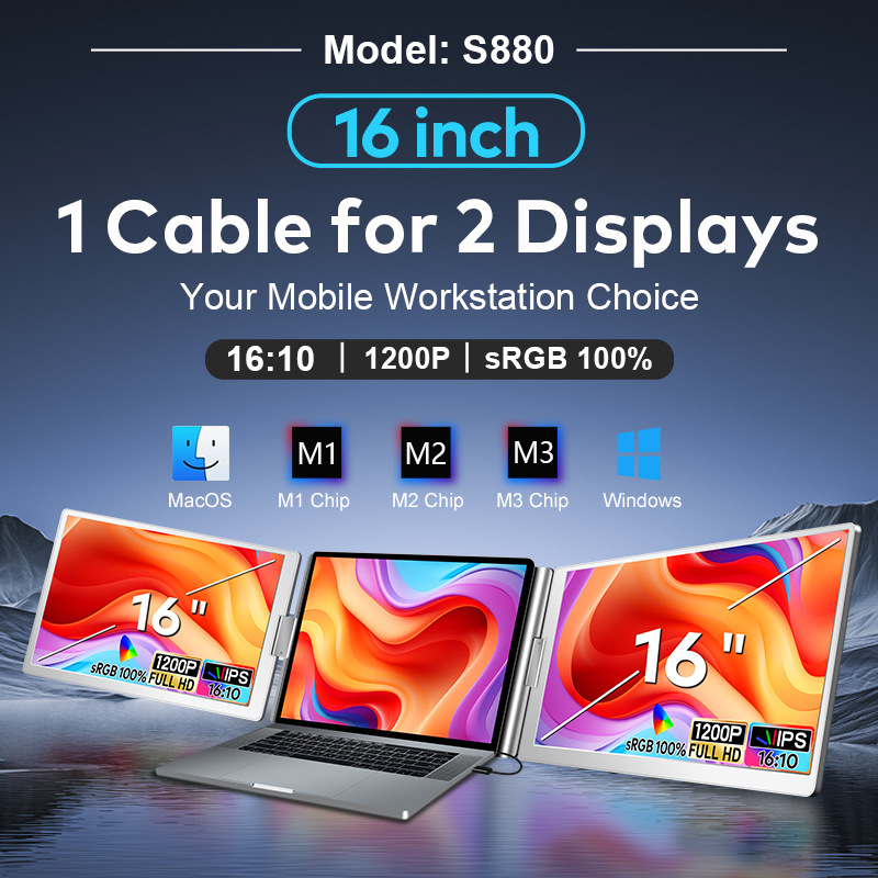 1라인 듀얼 스크린 오피스 휴대용 모니터 등받이 모델 듀얼 스크린 디스플레이 노트북 보조 스크린