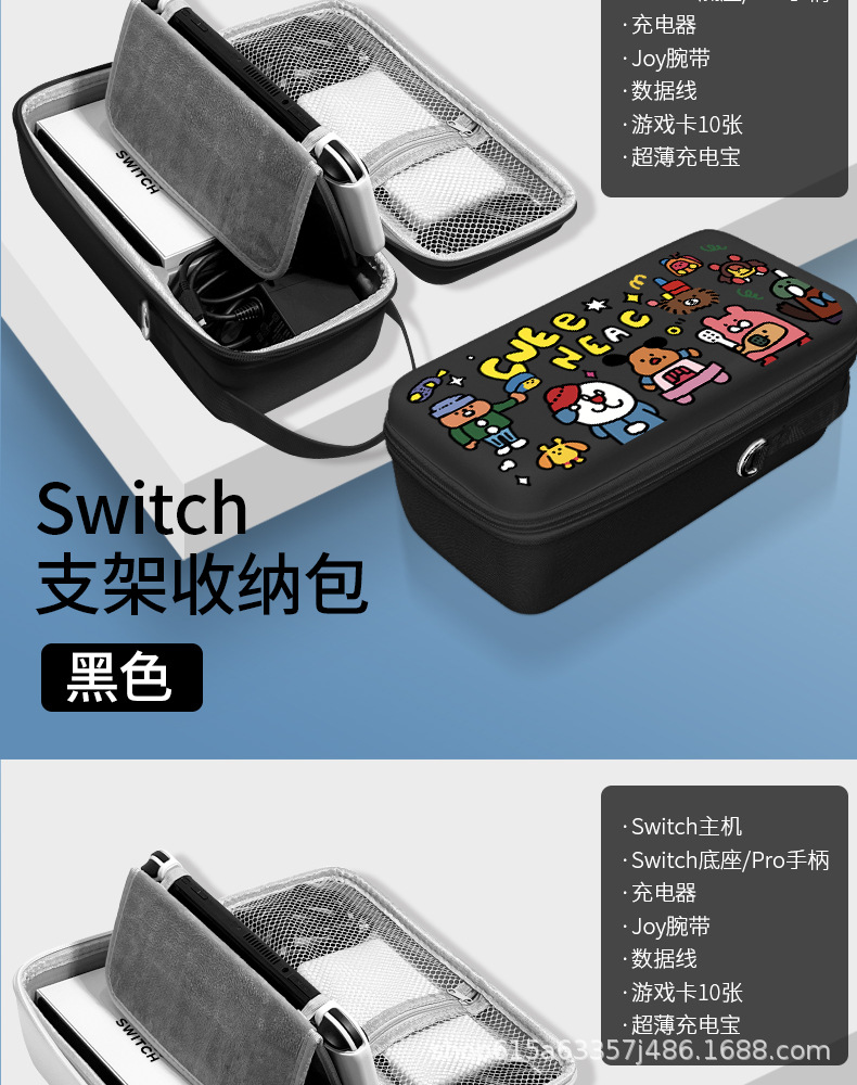 • 스위치 블랙 대형 수납가방 [충전기 + 베이스/프로 손잡이 수납 가능] 스탠드 내장 * 필름 + 캡 포함 [P8228 알람시계]