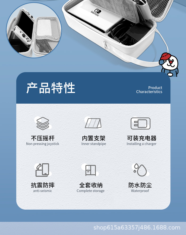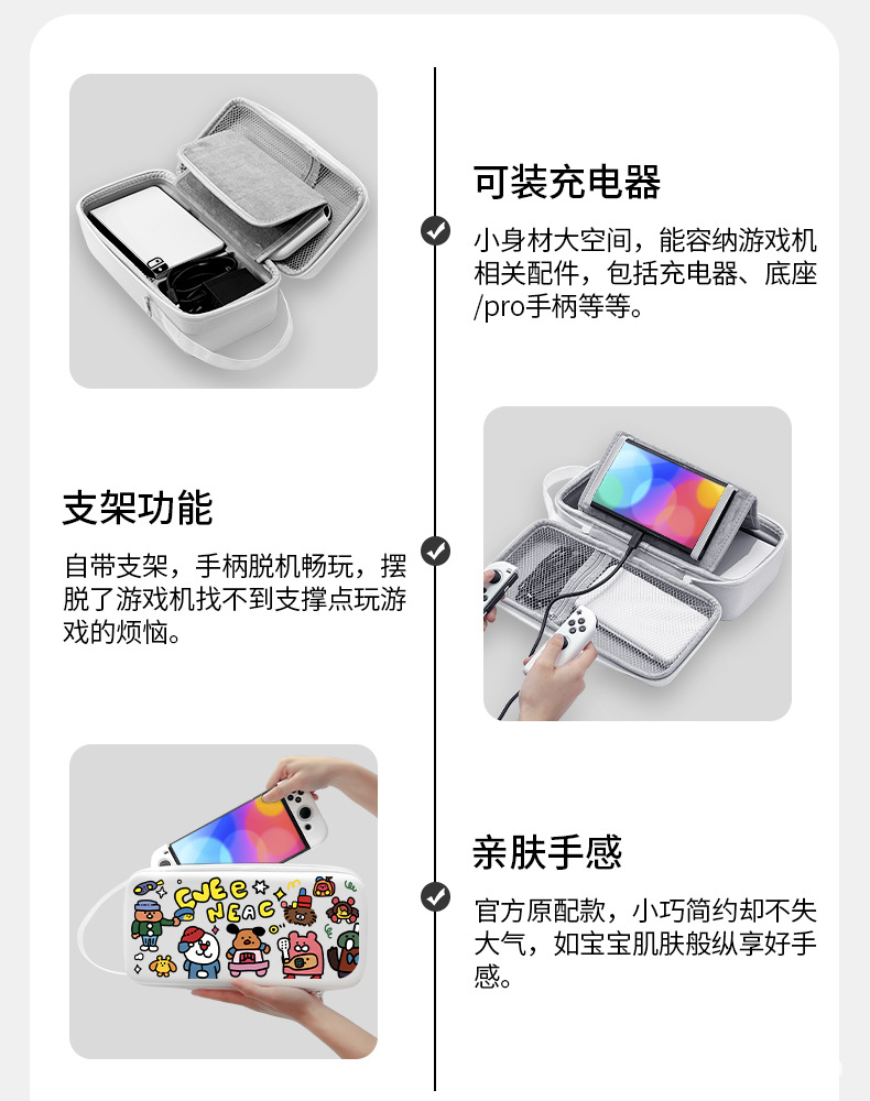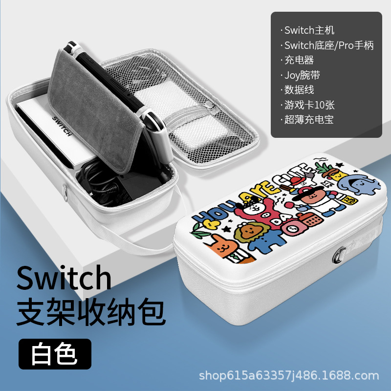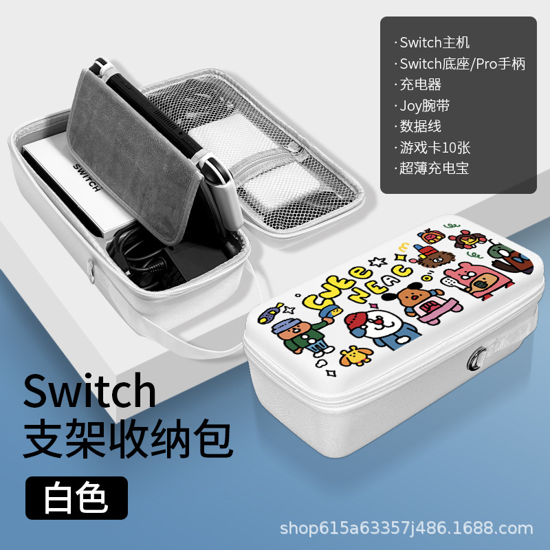 • 스위치 화이트 대형 수납가방 [충전기+베이스/프로손잡이 수납가능] 스탠드 내장 *필름+캡 포함 [P8229 래빗]