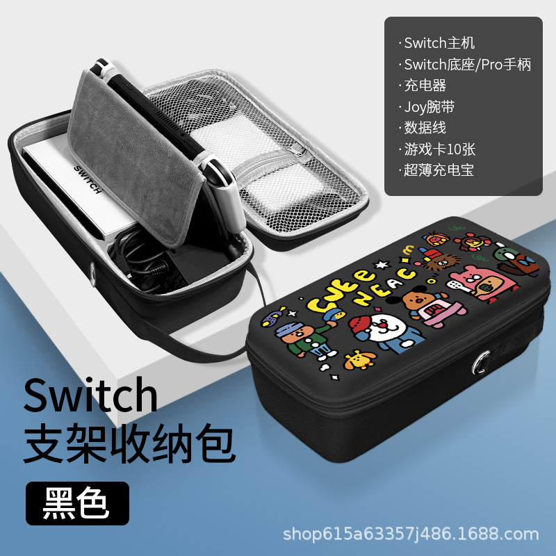 • 스위치 블랙 대용량 수납가방 [충전기+베이스/프로핸들 수납가능] 스탠드 내장 *필름+캡 포함 [P8229 래빗]
