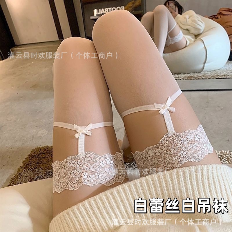 • 흰색 서스펜더 레이스 망사 스타킹 [골판지 포장]
