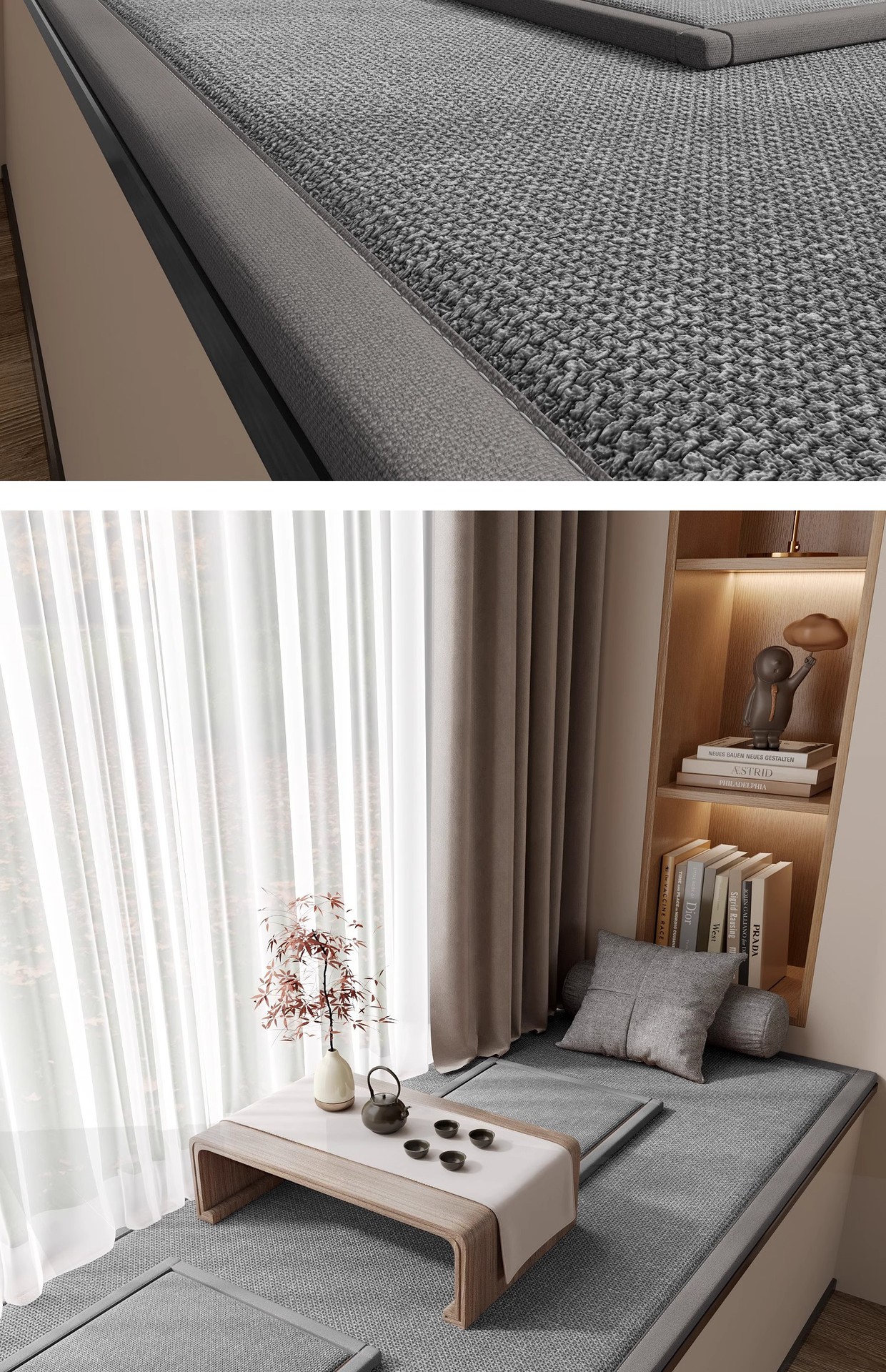 창틀 매트, 면 및 린넨, 심플한 스타일, 사계절 범용 창틀 매트, 두꺼운 미끄럼 방지 및 내마모성 침실 발코니 메모리 폼 쿠션