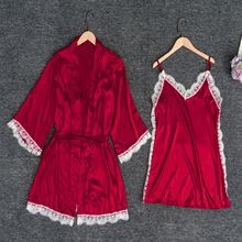 여성용 잠옷 여름 얼음 실크 섹시하고 뜨거운 성인 봄, 가을 긴팔 얇은 여성용 잠옷 5 피스 세트 멀티 컬러스토어 가기
