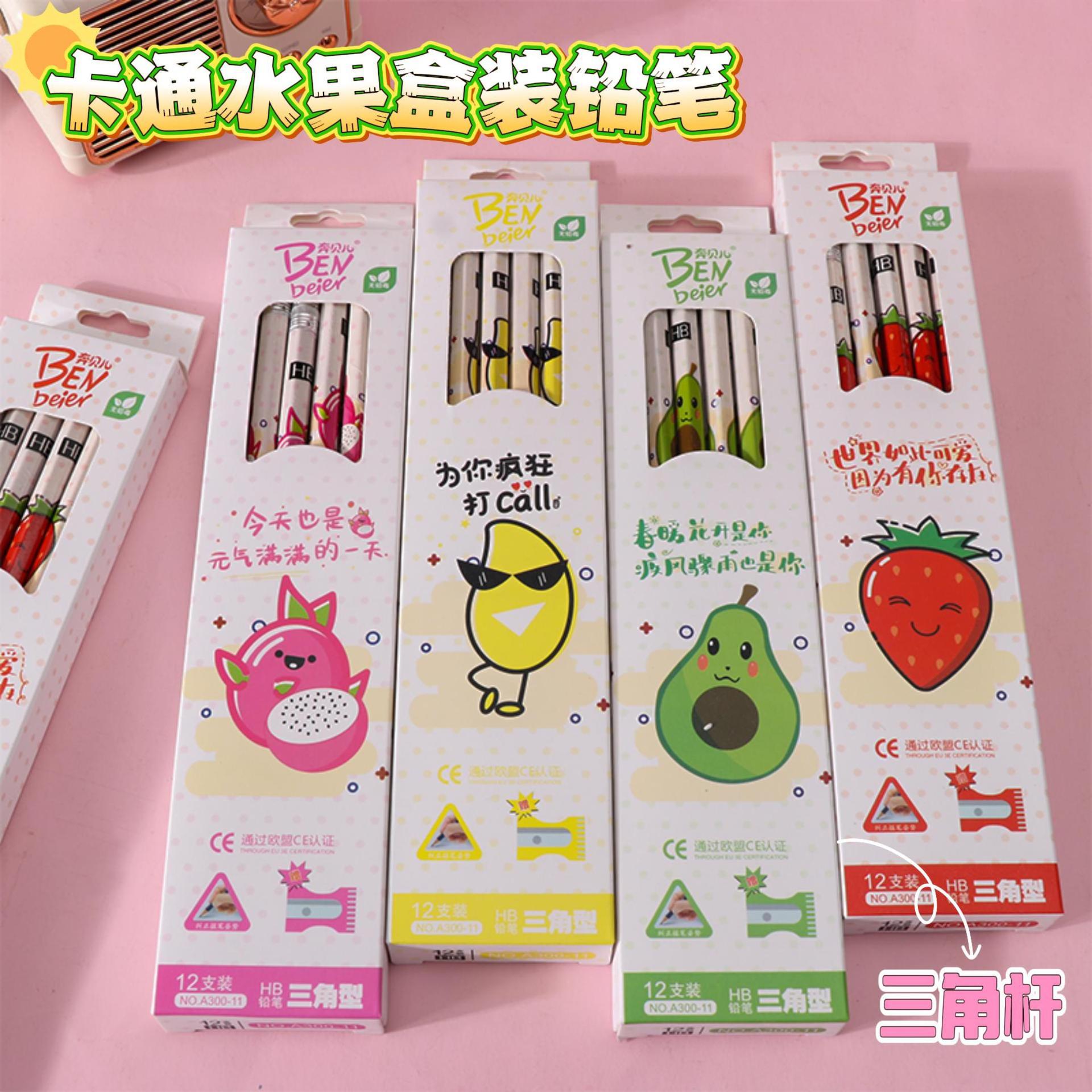 만화 어린이 연필 삼각형 막대 초등학생 2b 연필 12개 한 상자 연필깎이 문구 세트스토어 가기