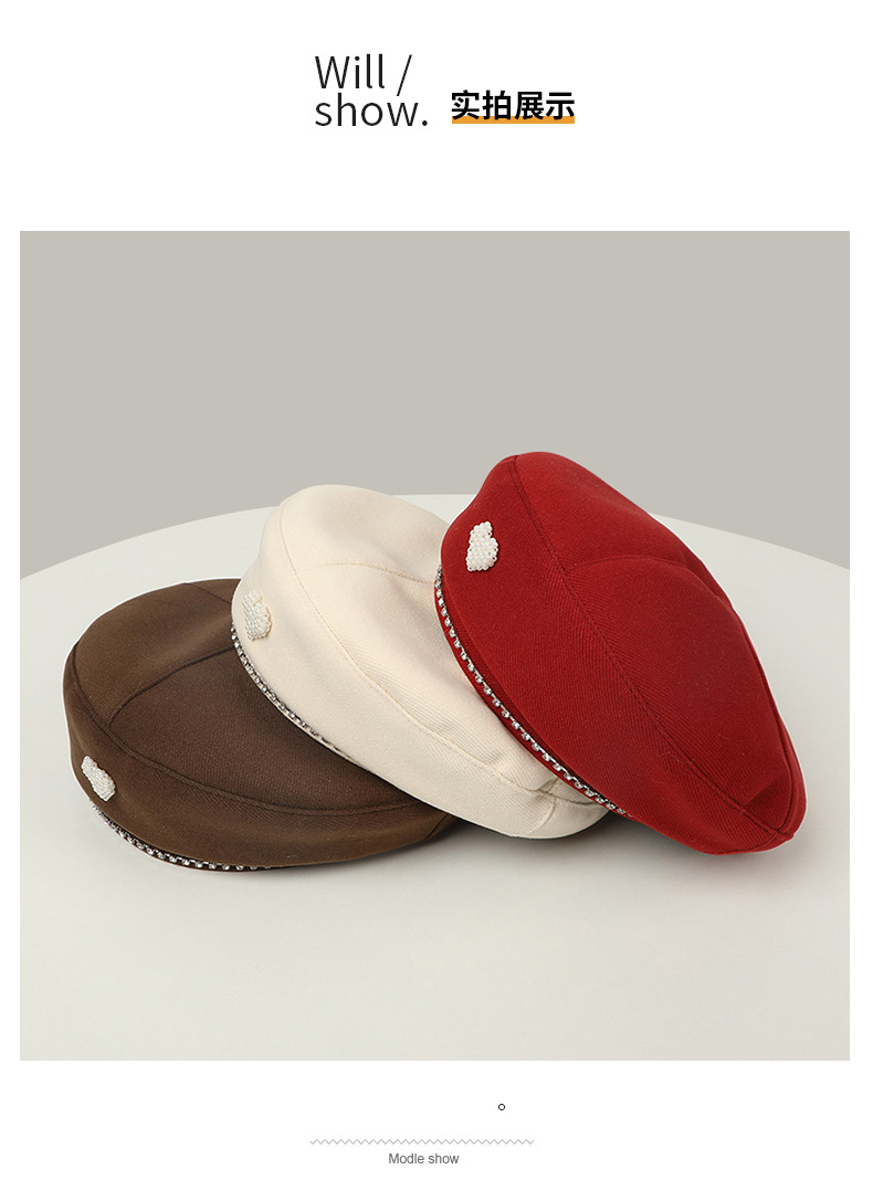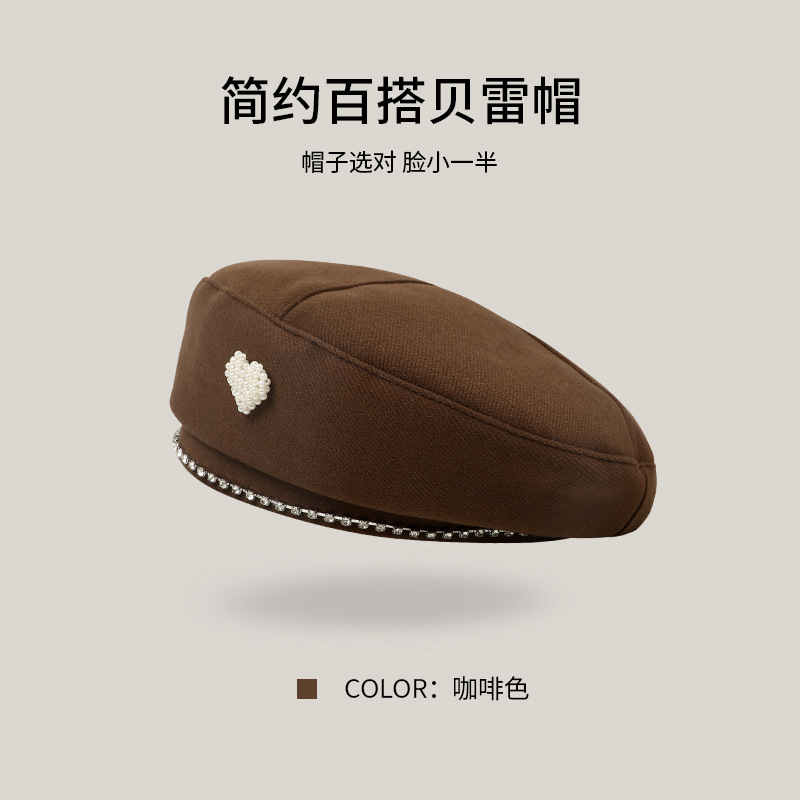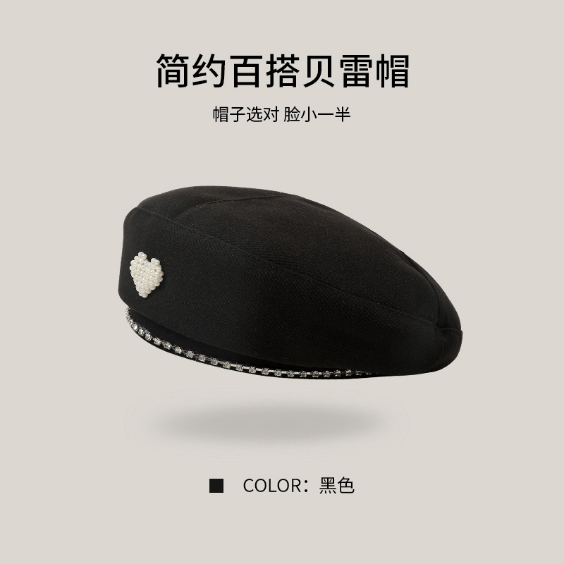 사랑 베레 어린이 가을과 겨울 새로운 Ins 사이버 연예인 버드 캡 블랙 올 매치 쇼 얼굴 작은 화가 모자