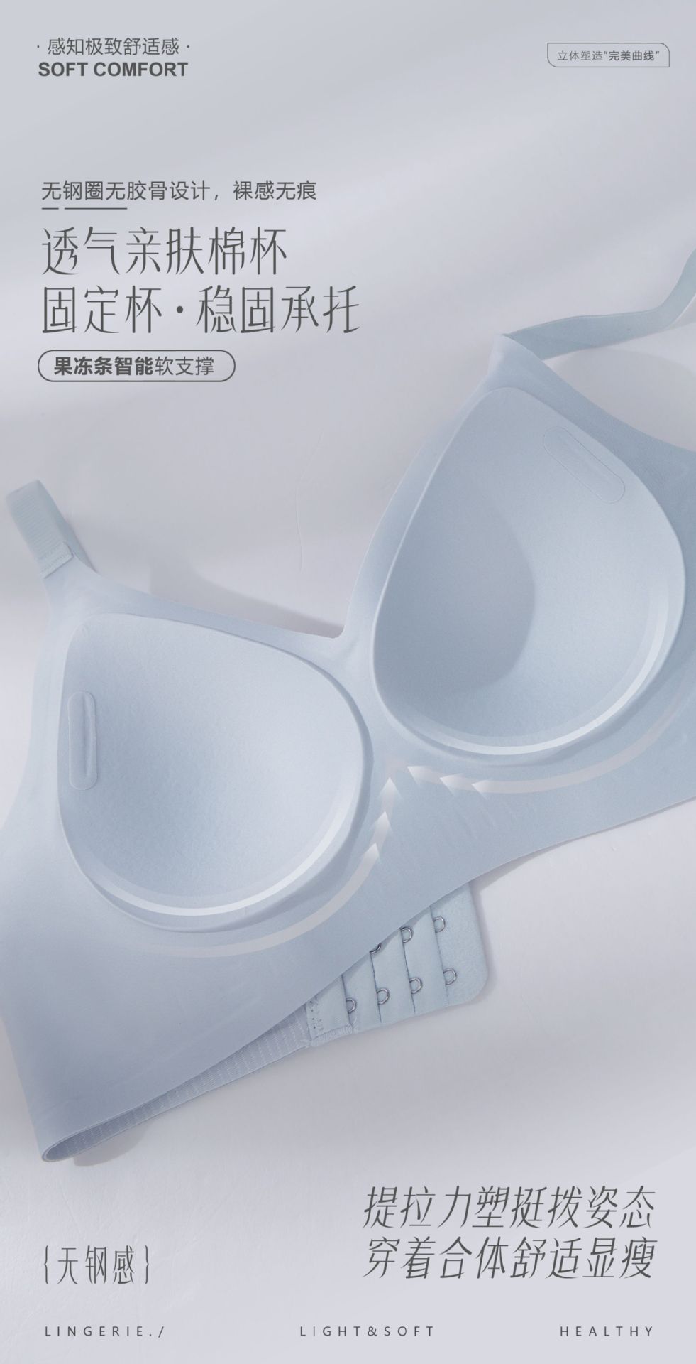 무봉제 속옷, 부드러운 지지 브라, 매끄럽고 편안한 푸쉬업 브라, 조절 가능한 속옷, 고정 컵