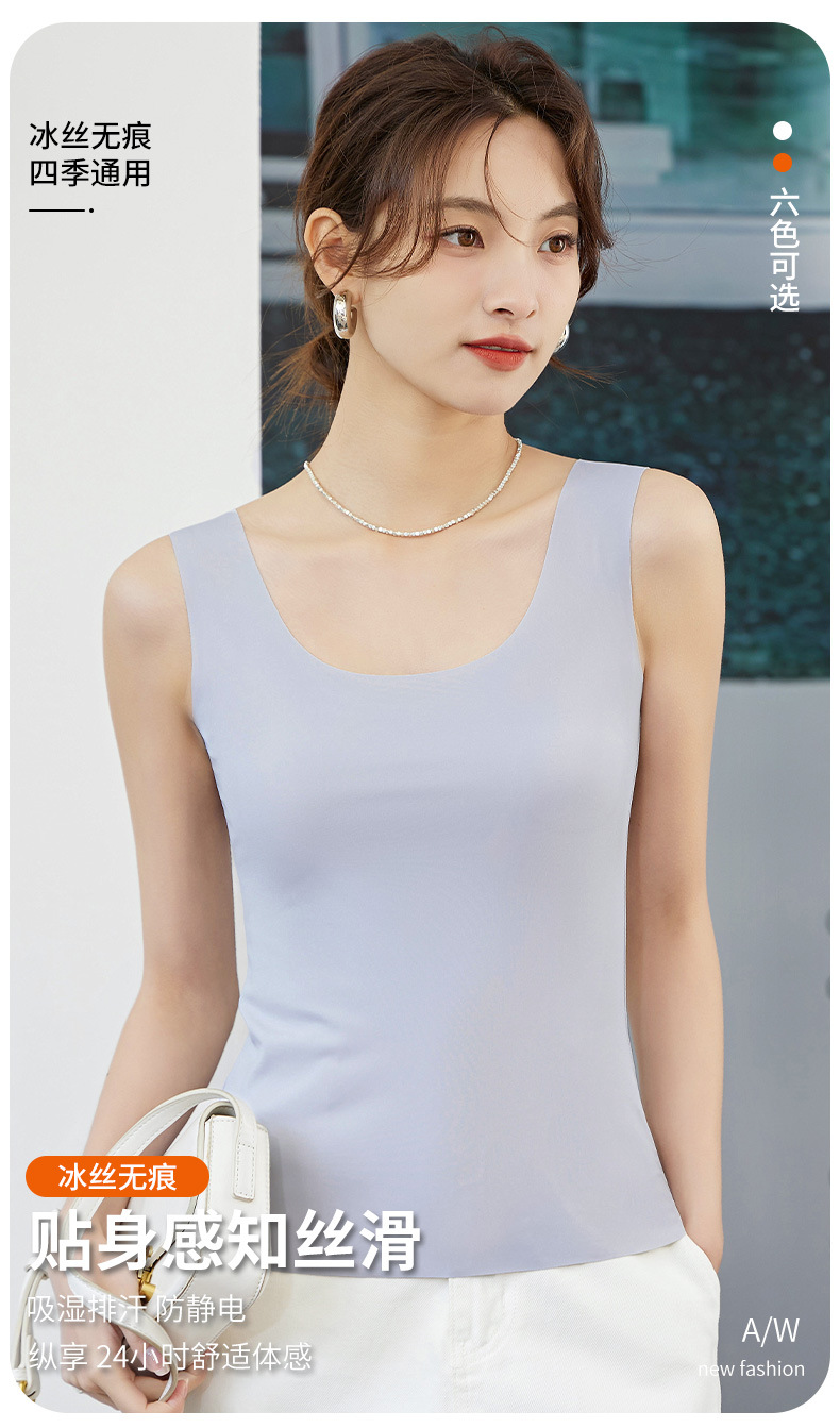 여성용 아이스 실크 심리스 안티투시 베이직 캐미솔, 내부 및 외부 착용 가능, 노출 방지 베이스 캐미솔, 플러스 사이즈스토어 가기