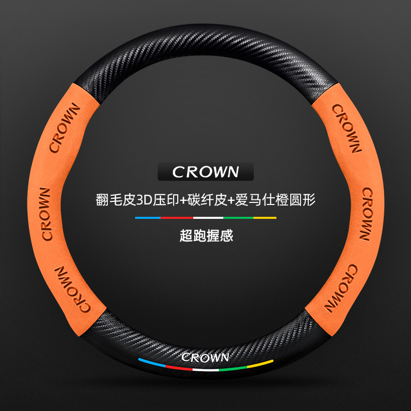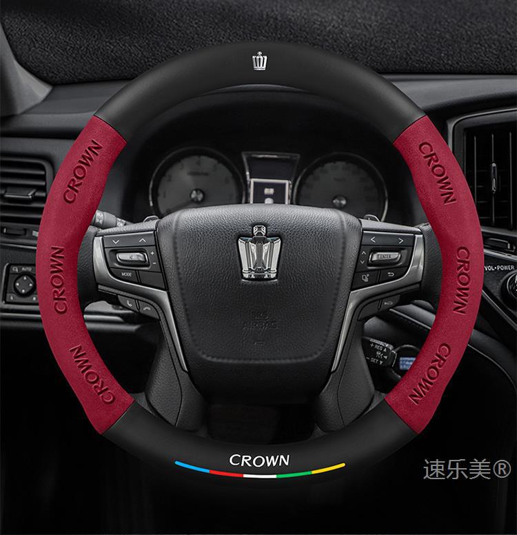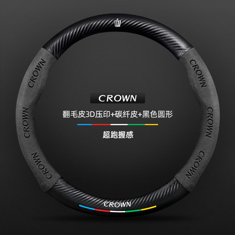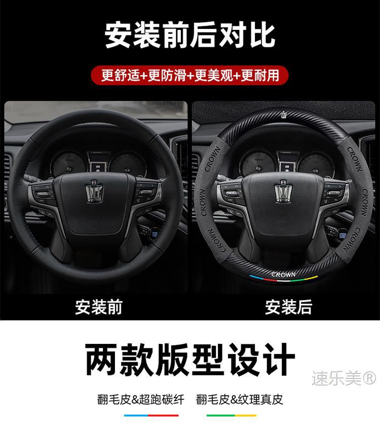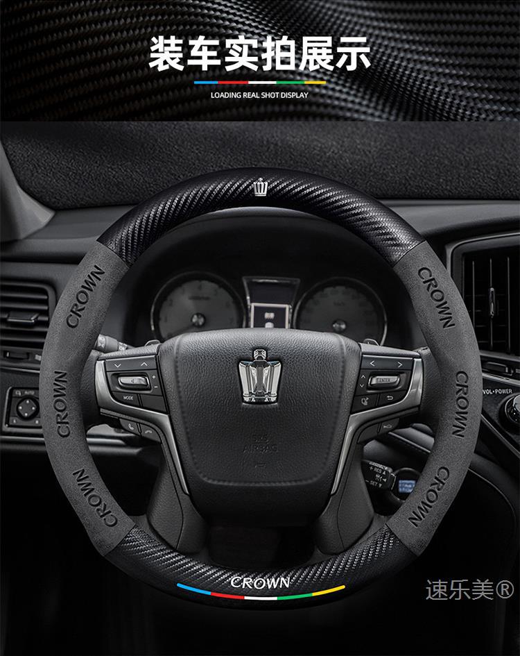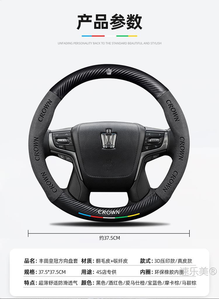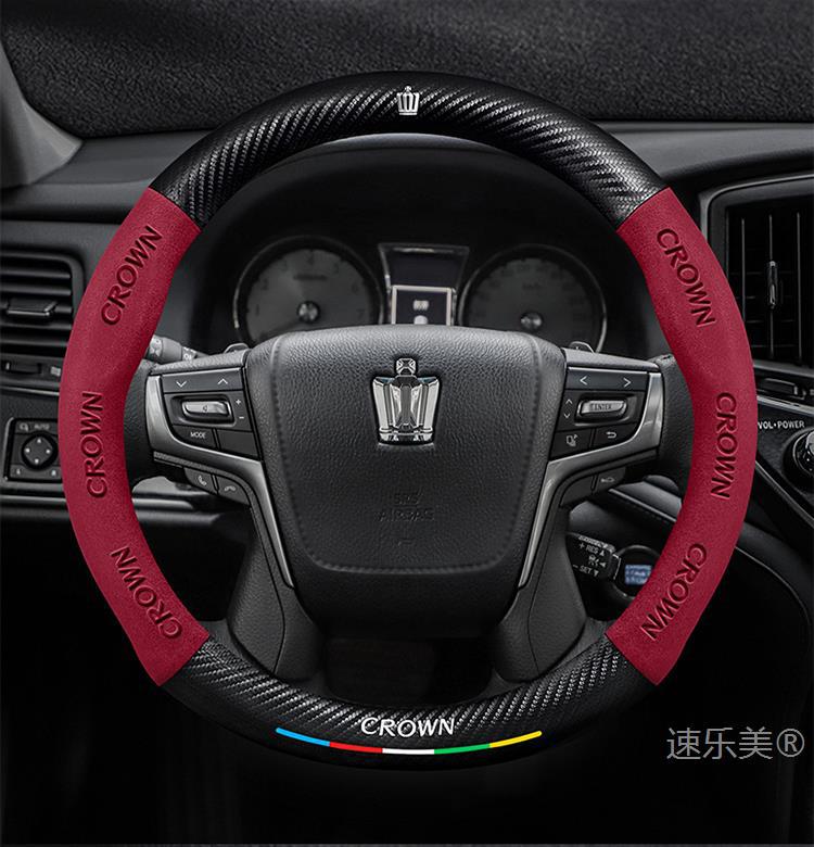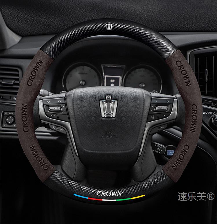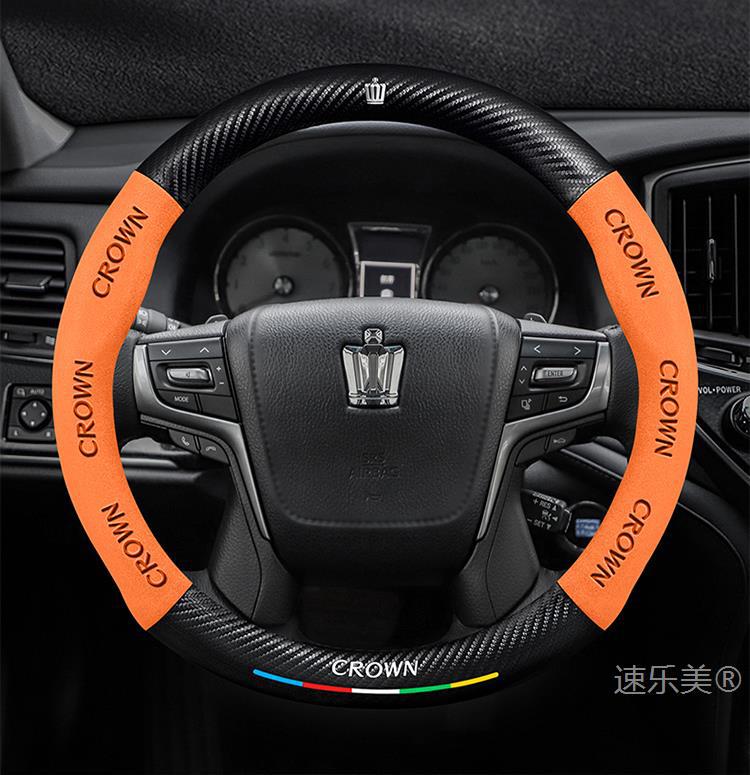 Toyota Crown 스티어링 휠 커버에 적합 12세대 13세대 14세대 정품 가죽 스웨이드 초박형 탄소 섬유 자동차 핸들 커버스토어 가기