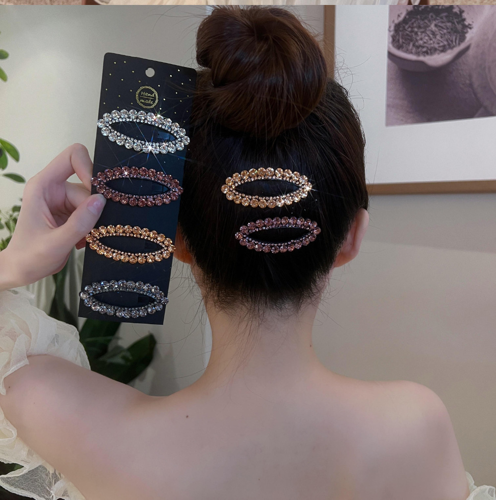 • 샴페인 골드 라인스톤 타원형 BB 클립
