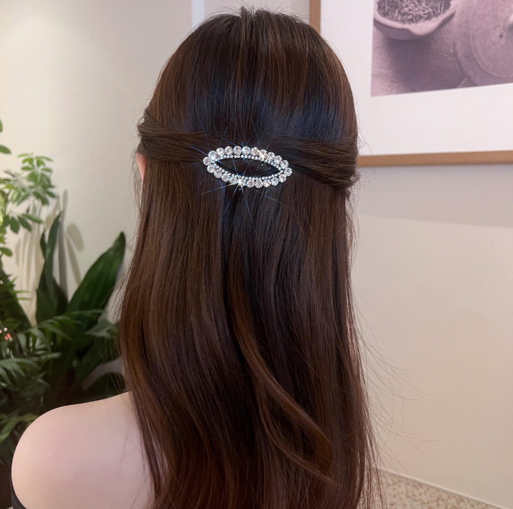 • 실버 화이트 라인스톤 타원형 BB 클립