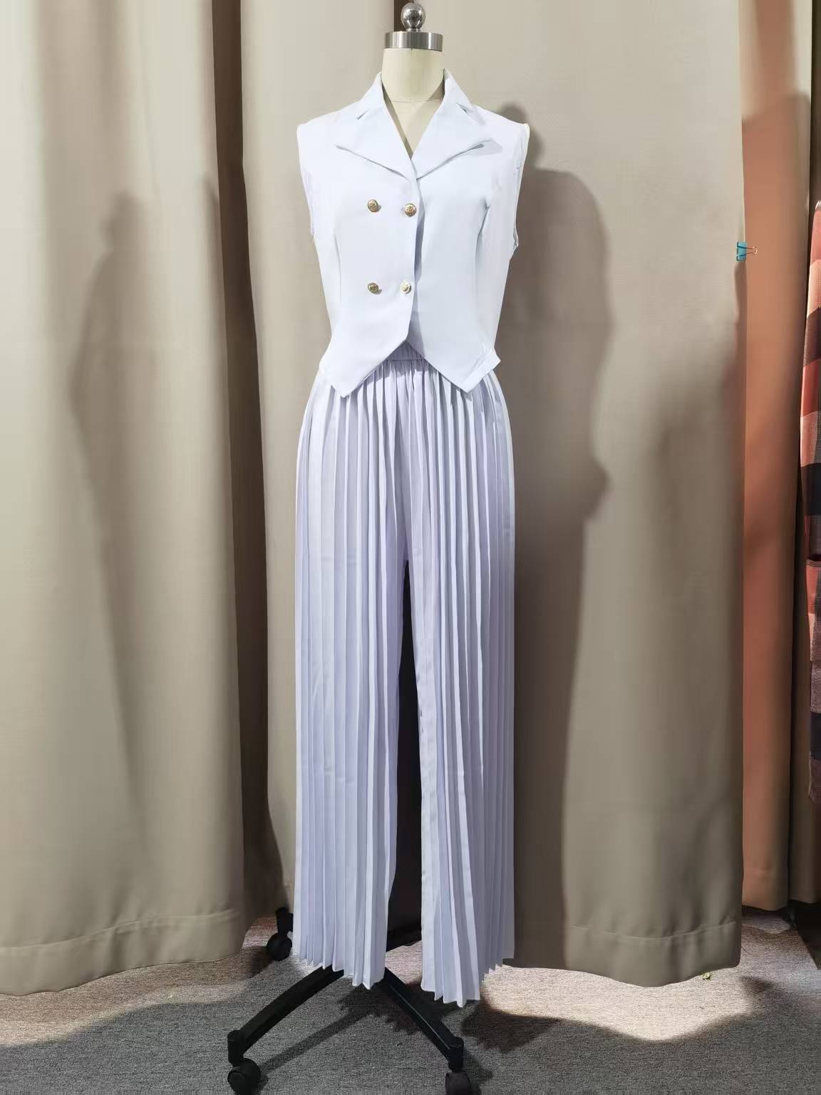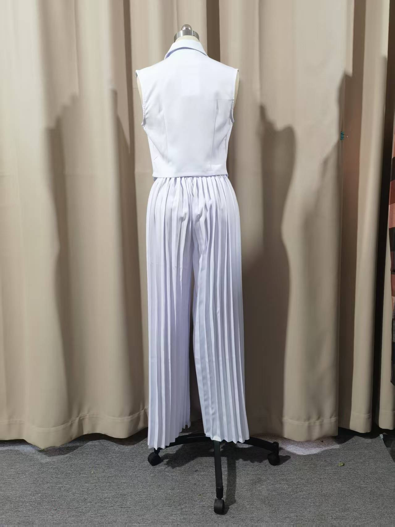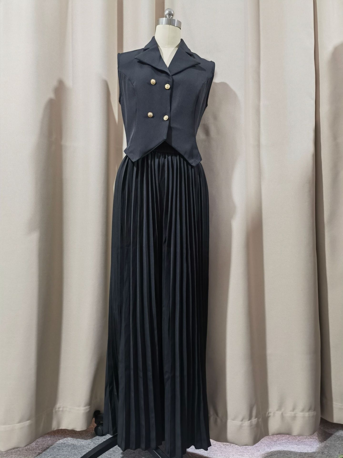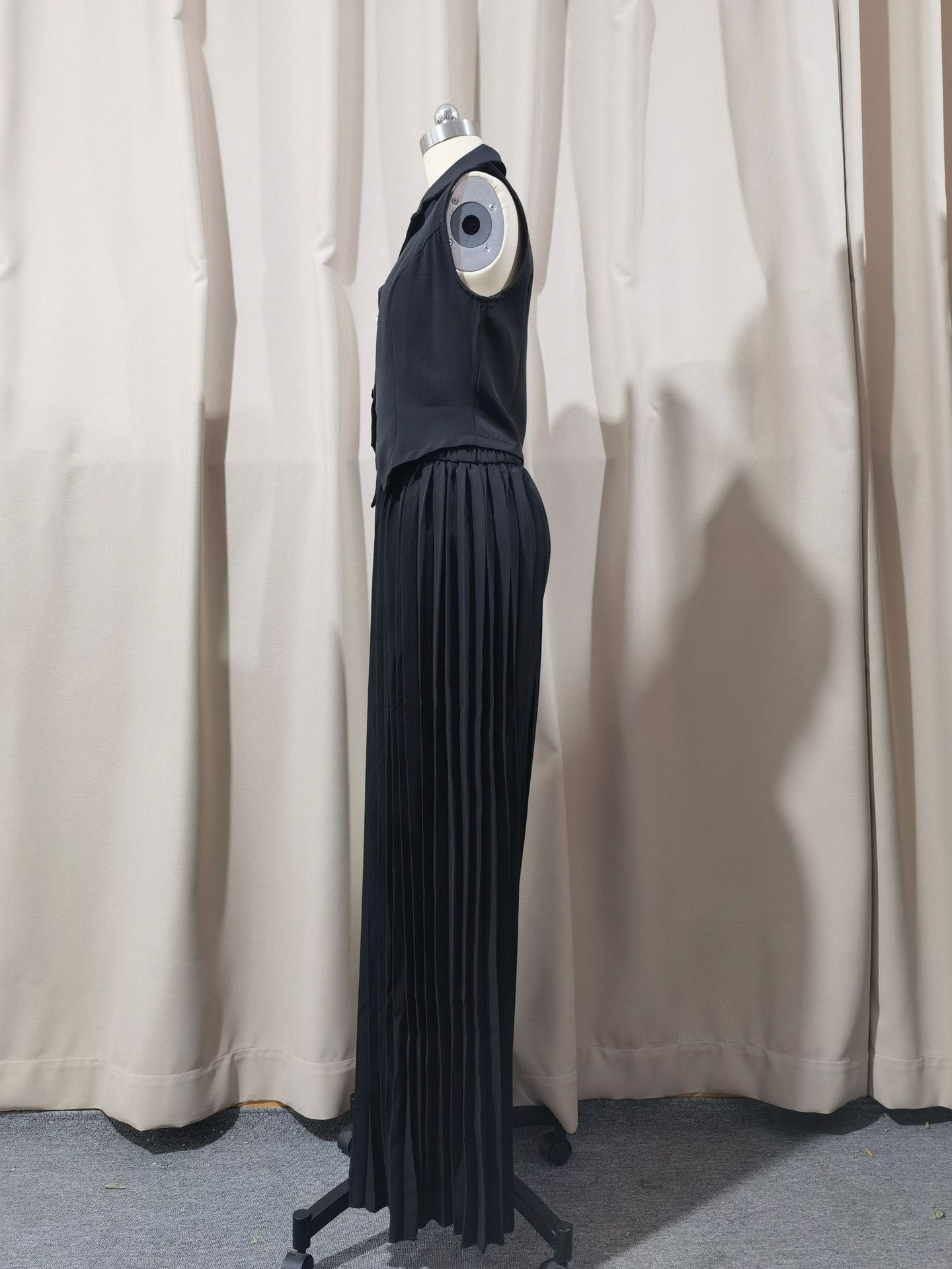 2025 유럽과 미국 여성의 국경 새로운 패션 조끼 주름 치마 바지 세트 여성 투피스 바지