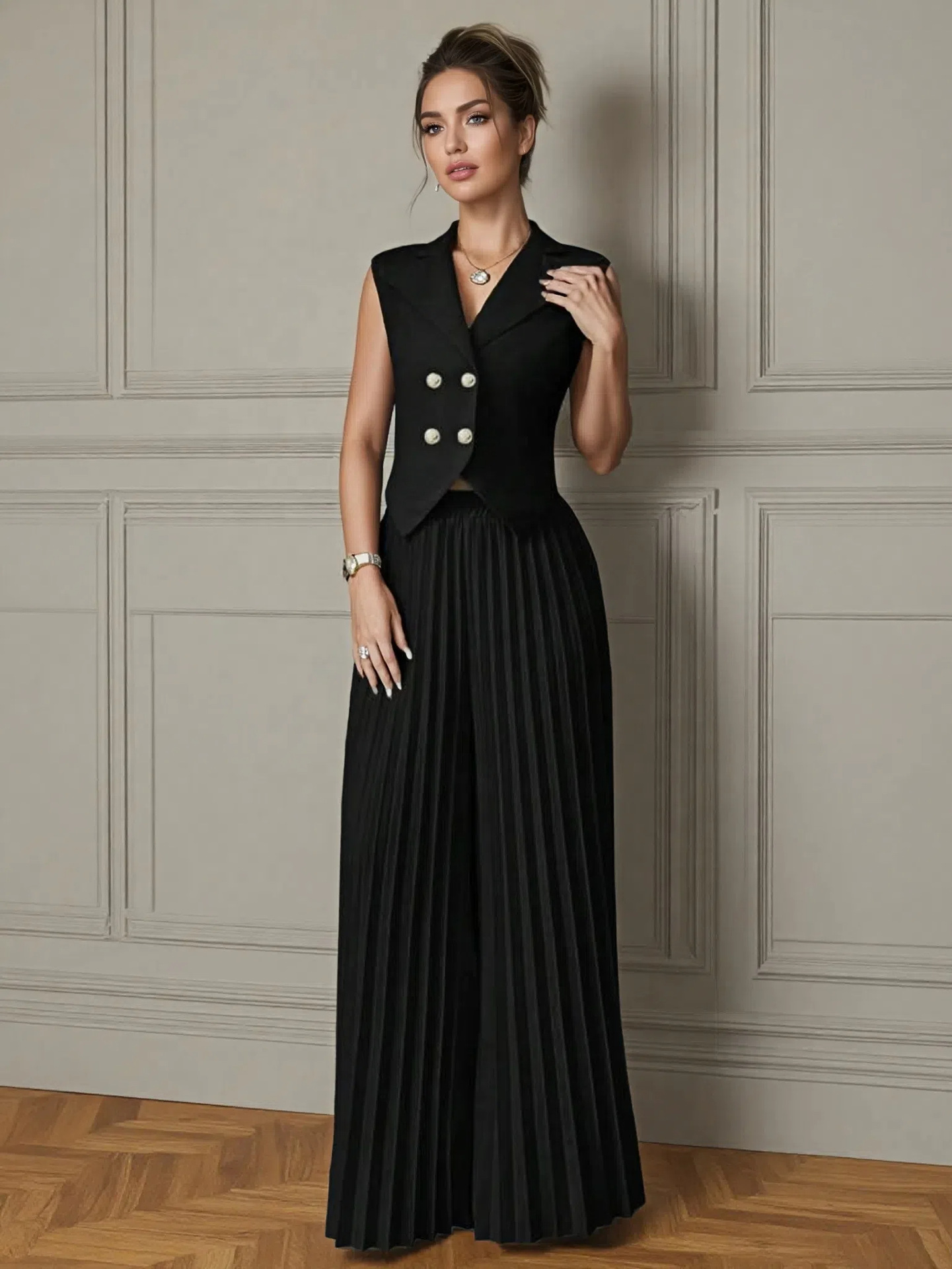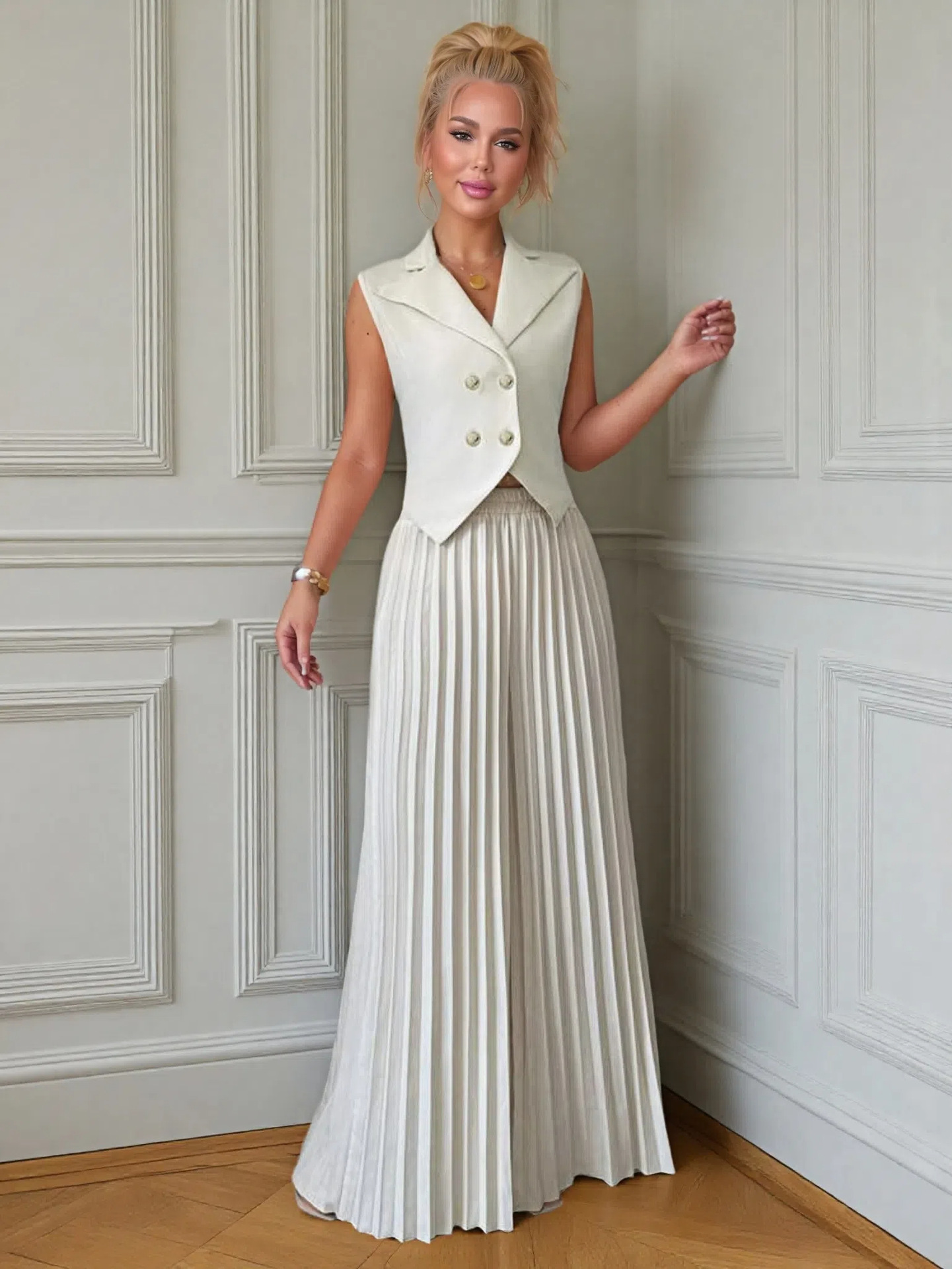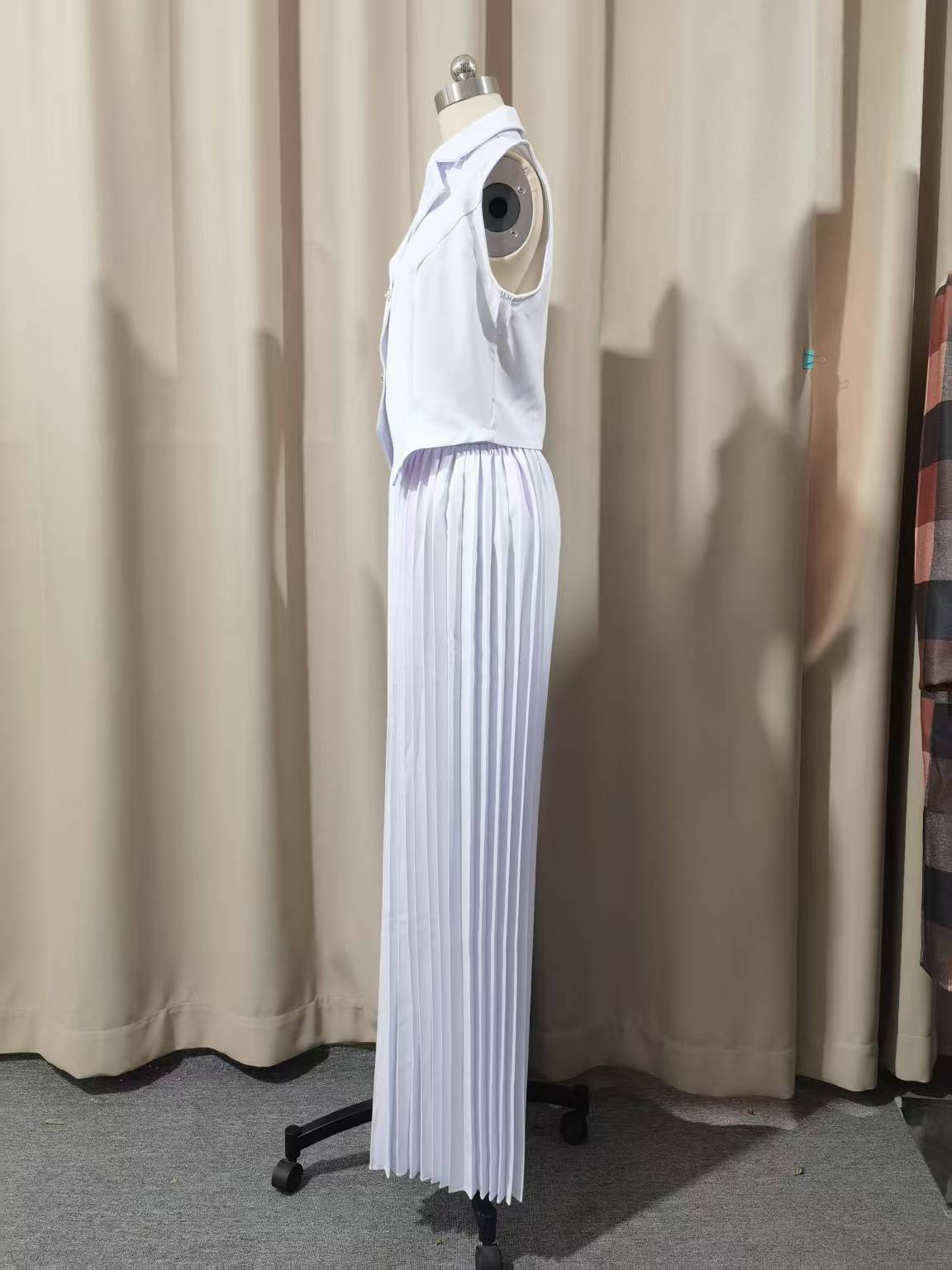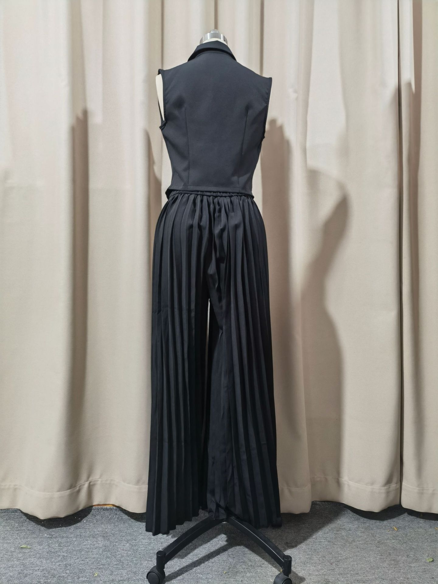 2025 유럽과 미국 여성의 국경 새로운 패션 조끼 주름 치마 바지 세트 여성 투피스 바지