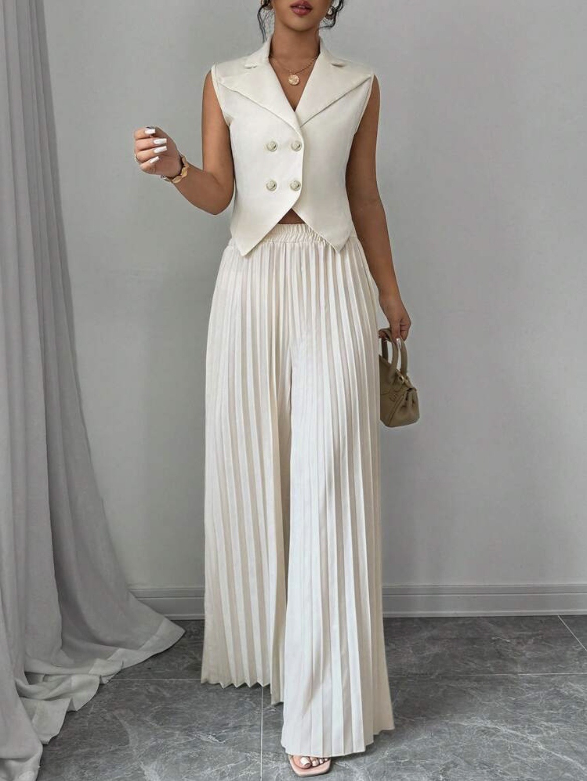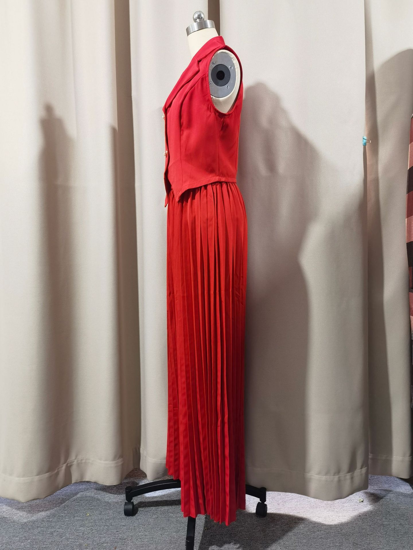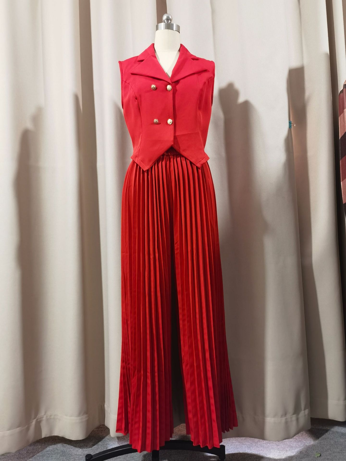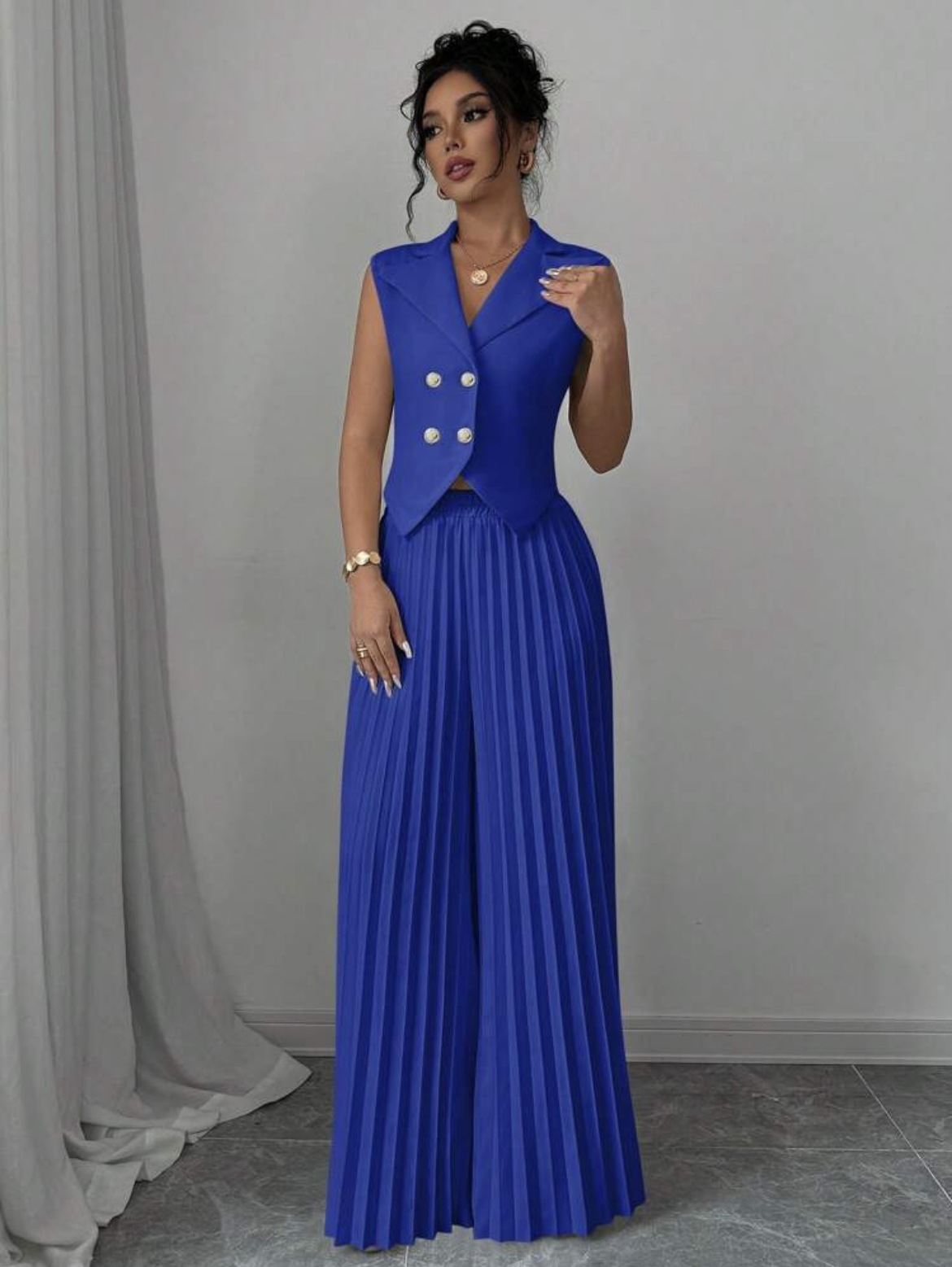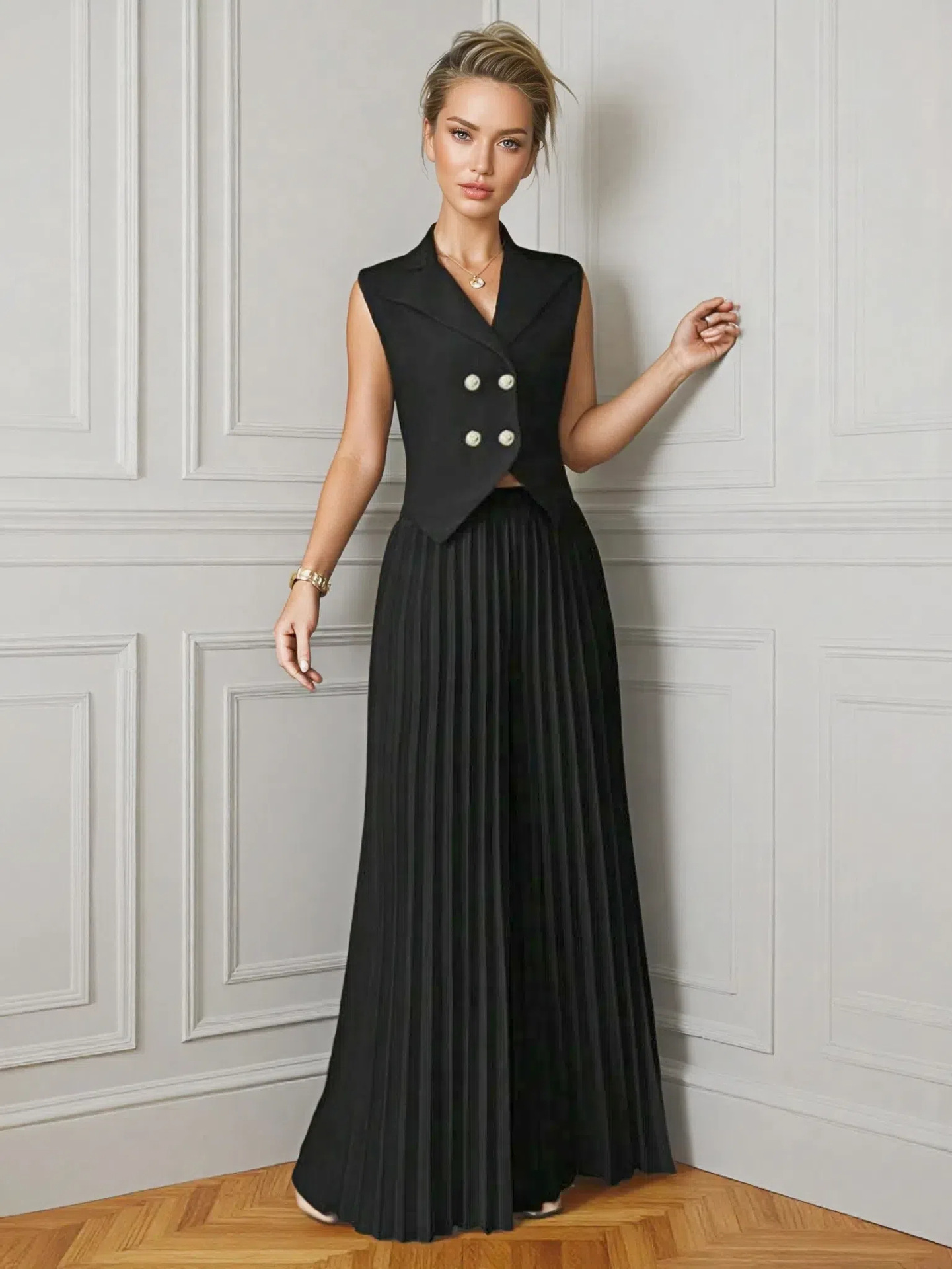 2025 유럽과 미국 여성의 국경 새로운 패션 조끼 주름 치마 바지 세트 여성 투피스 바지