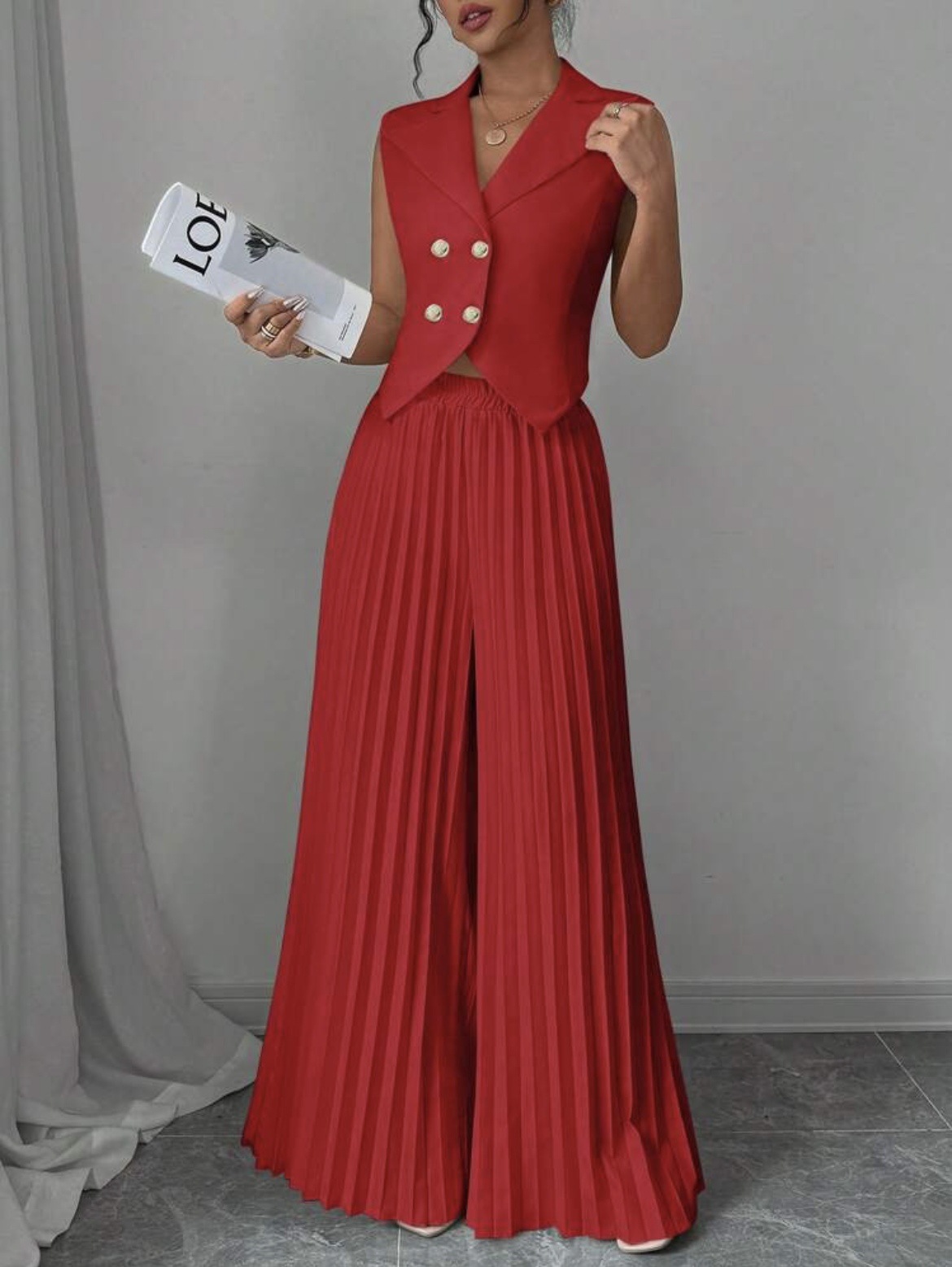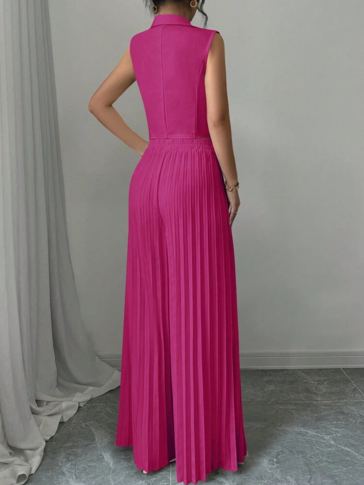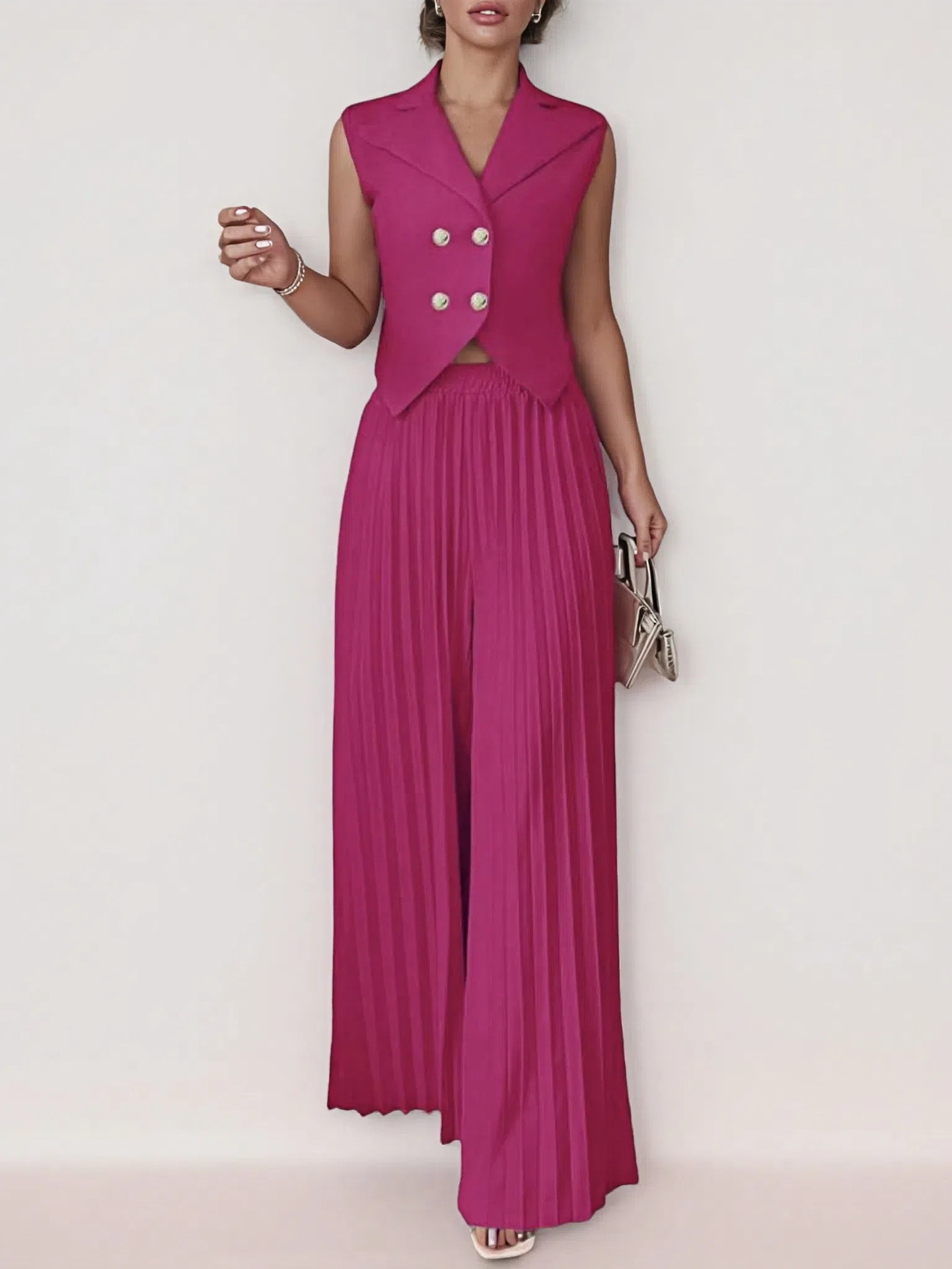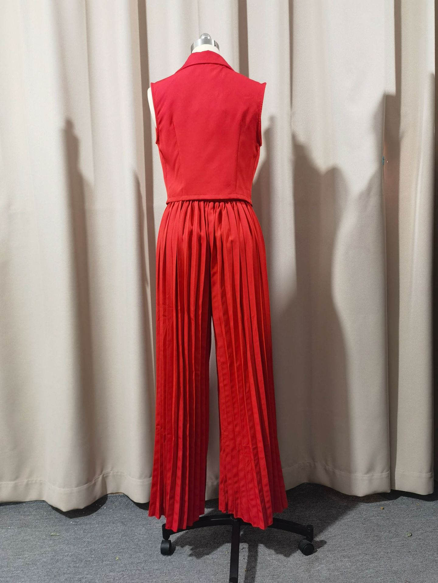 2025 유럽과 미국 여성의 국경 새로운 패션 조끼 주름 치마 바지 세트 여성 투피스 바지