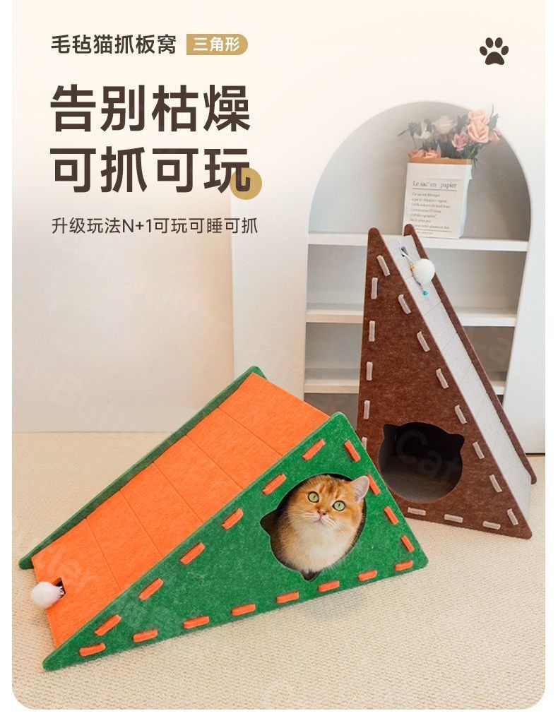 펠트 고양이 스크래치 보드 둥지 수직 고양이 스크래치 보드 내마모성 및 비 칩 고양이 발톱 삼각형 벽걸이 형 고양이 스크래치 보드 고양이 둥지 일체형스토어 가기