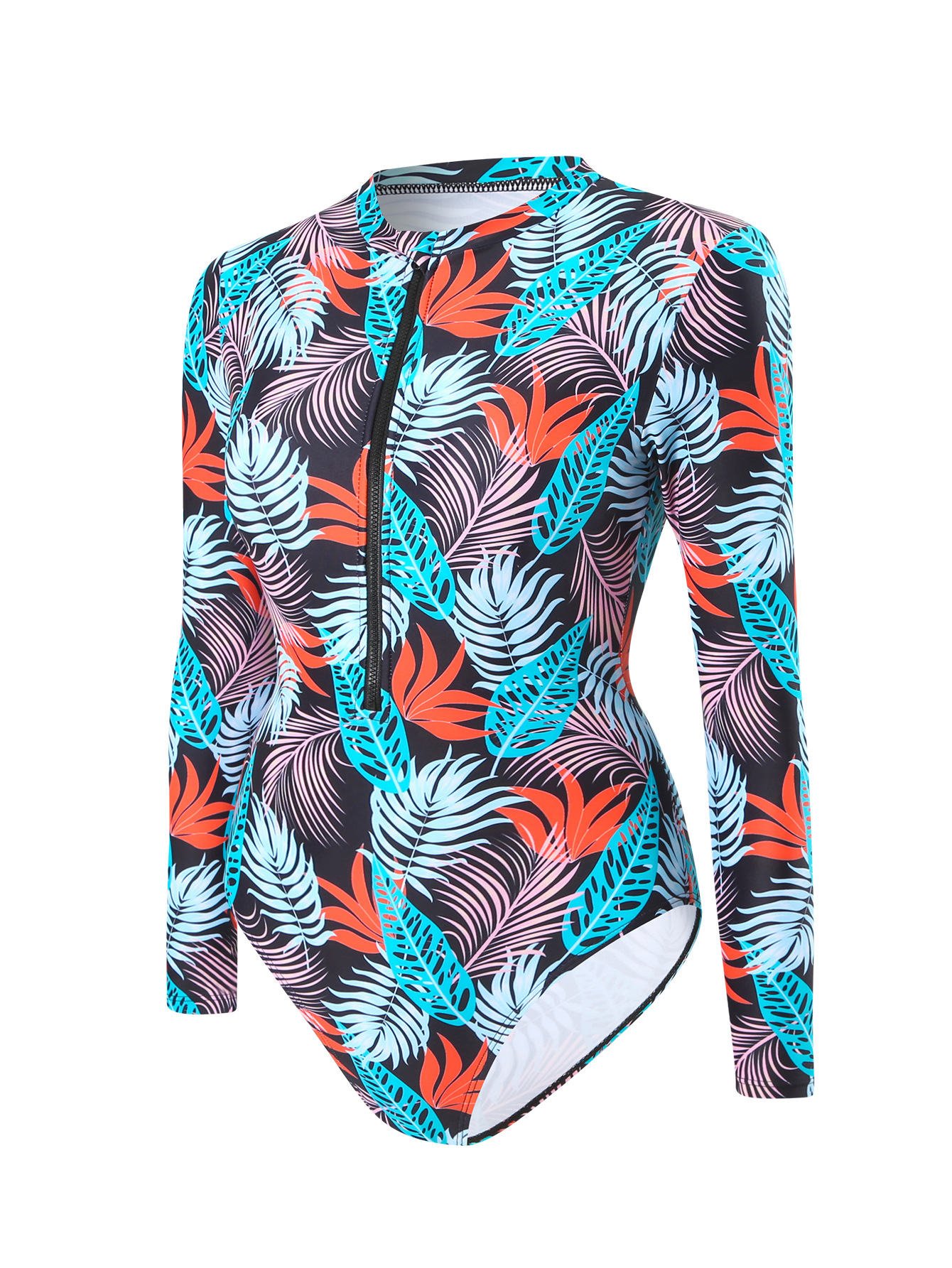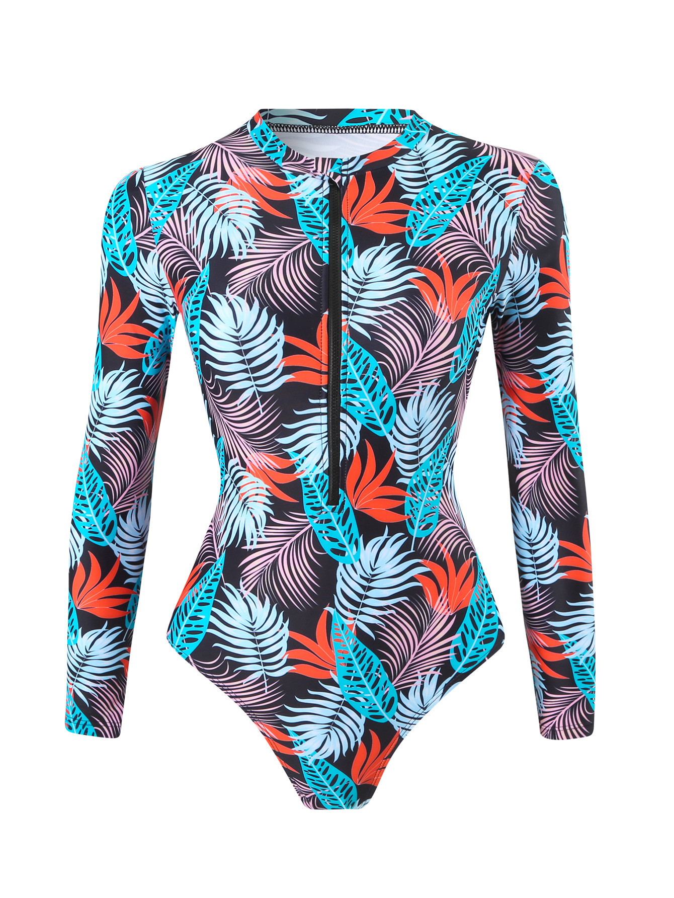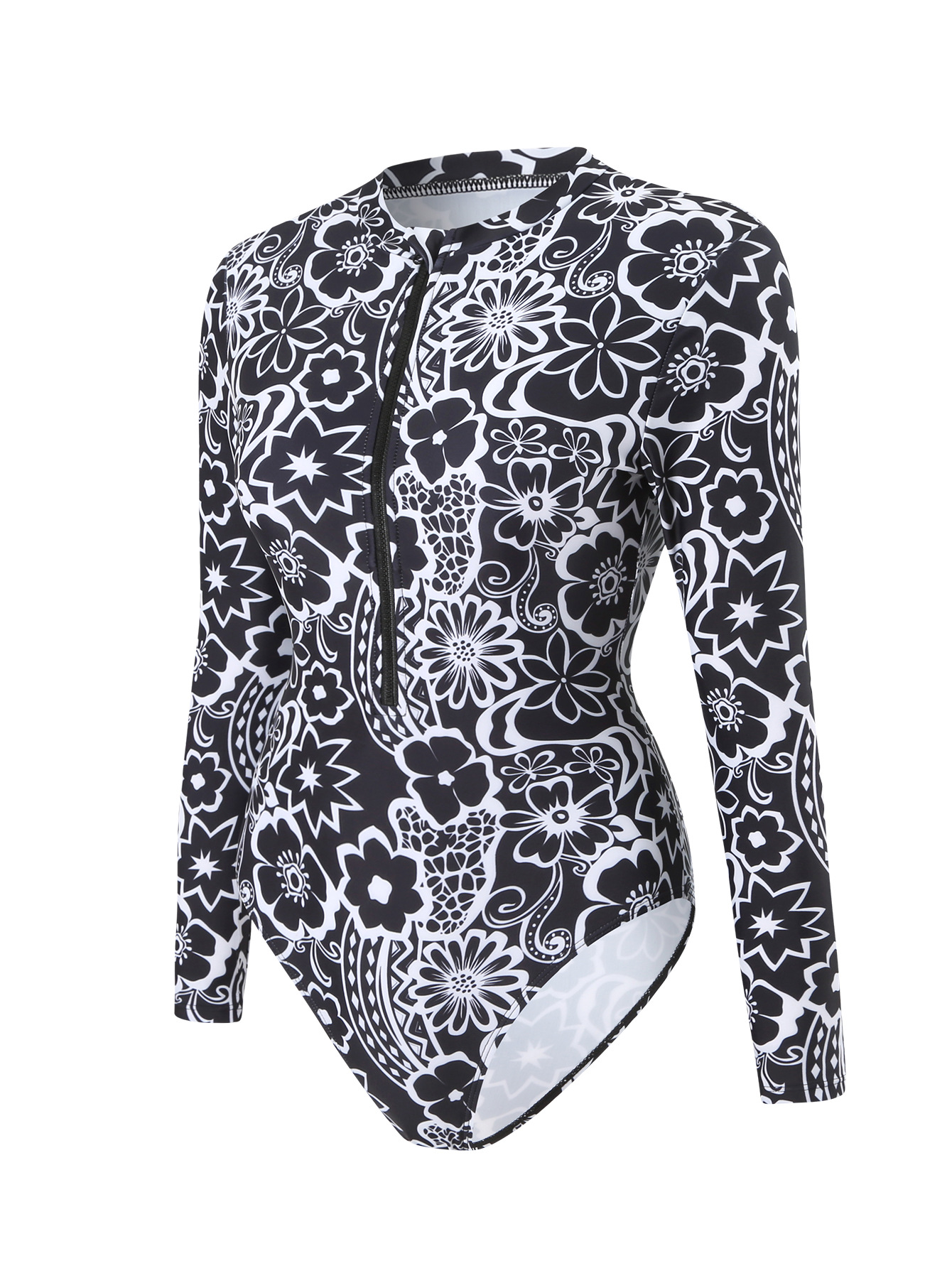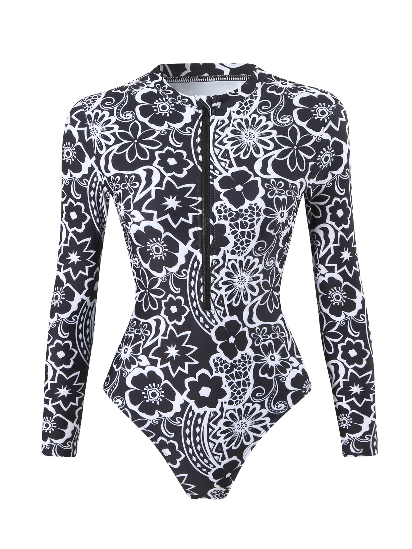 유럽과 미국은 국경을 넘나 드는 새로운 여성의 멀티 프린트 타이트 섹시한 지퍼 긴 소매 삼각형 원피스 경쟁 스포츠 수영복