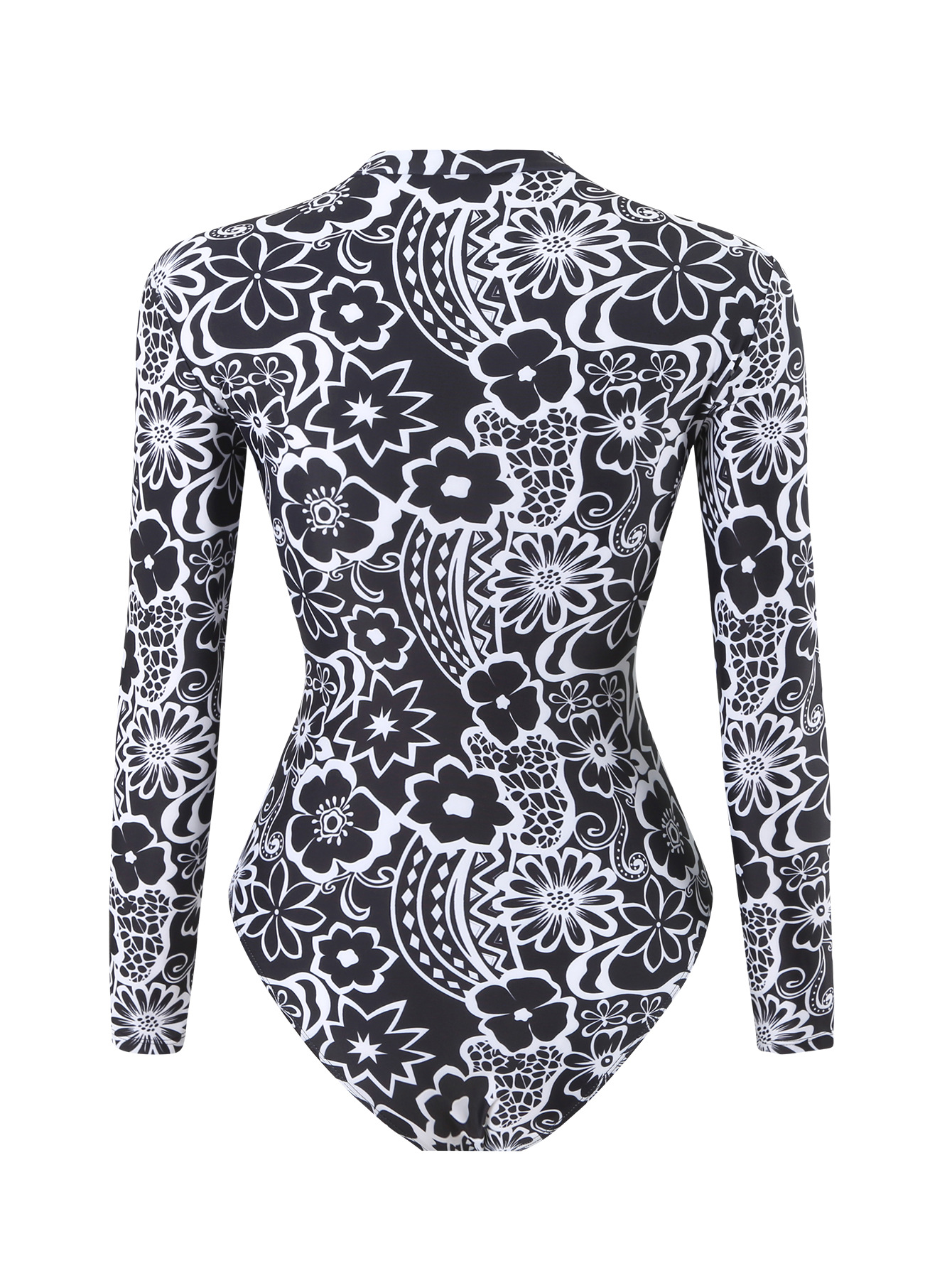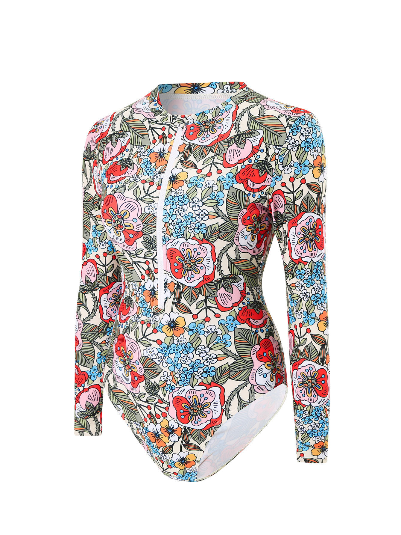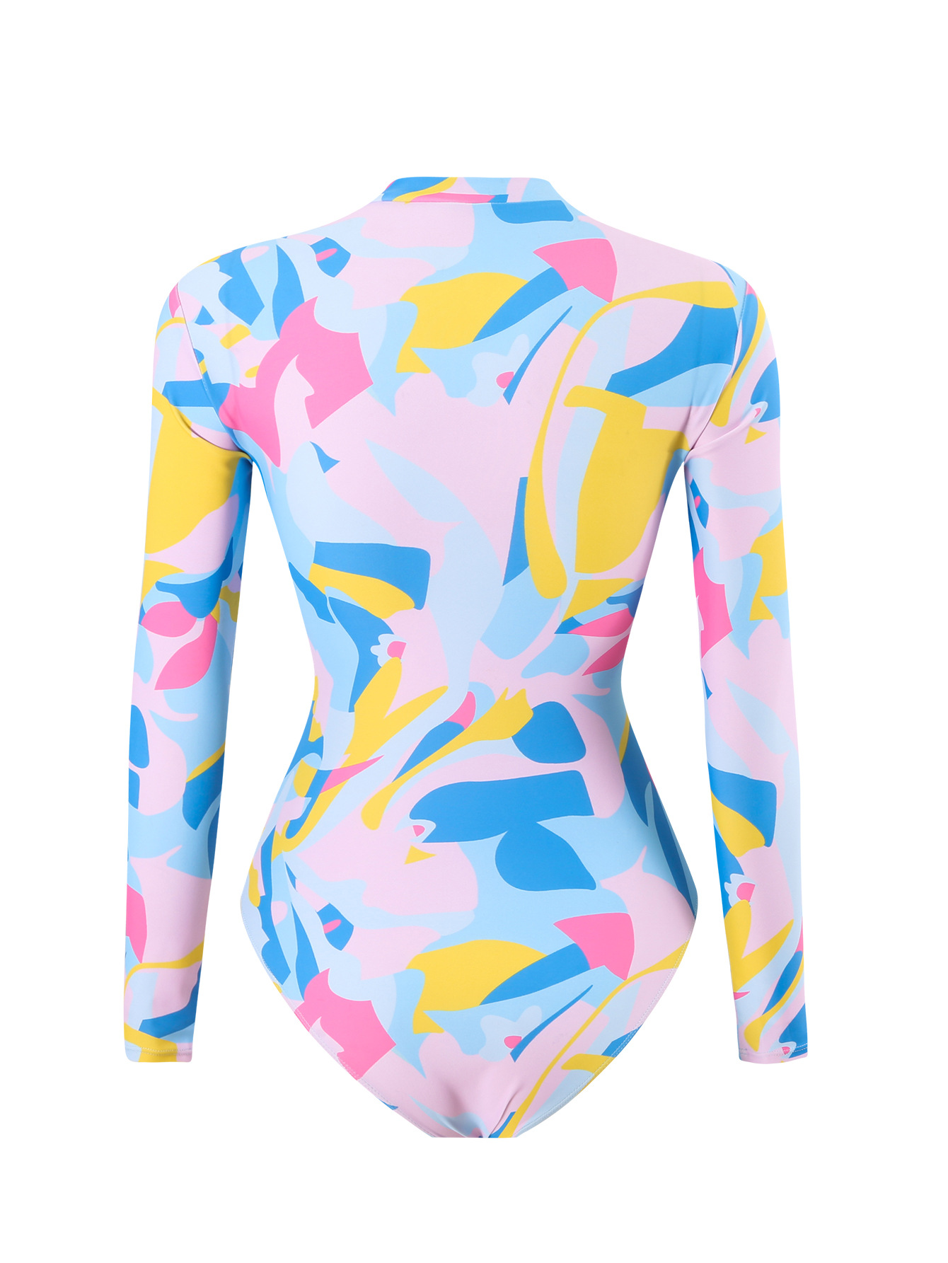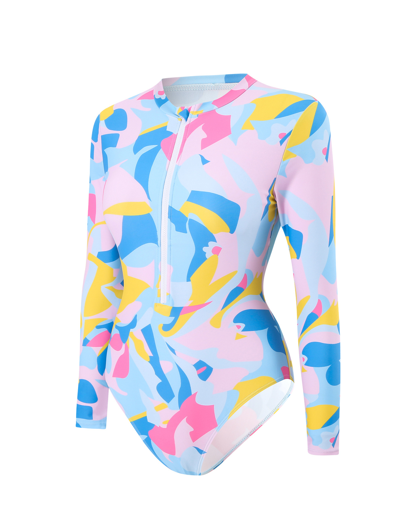 유럽과 미국은 국경을 넘나 드는 새로운 여성의 멀티 프린트 타이트 섹시한 지퍼 긴 소매 삼각형 원피스 경쟁 스포츠 수영복
