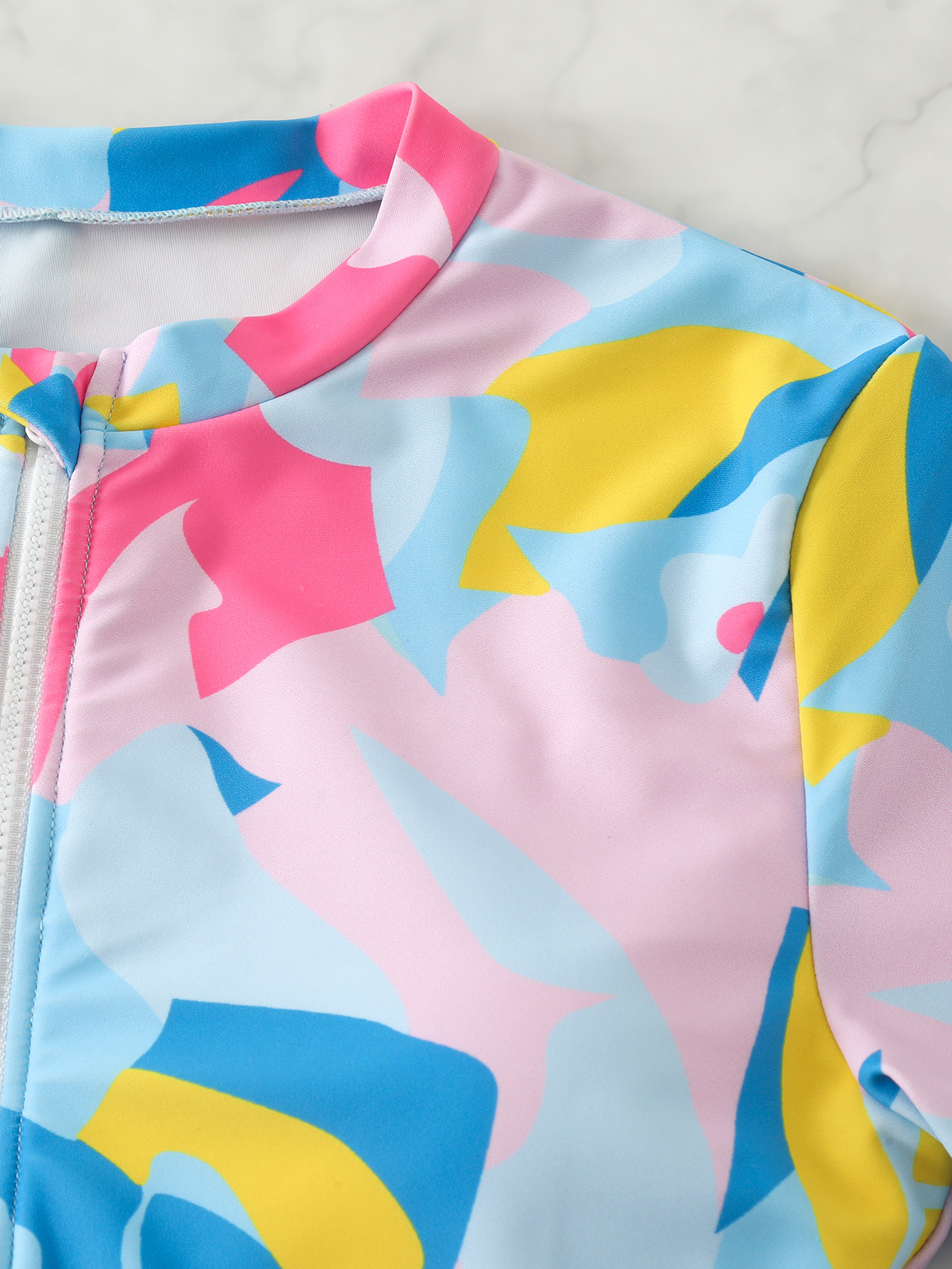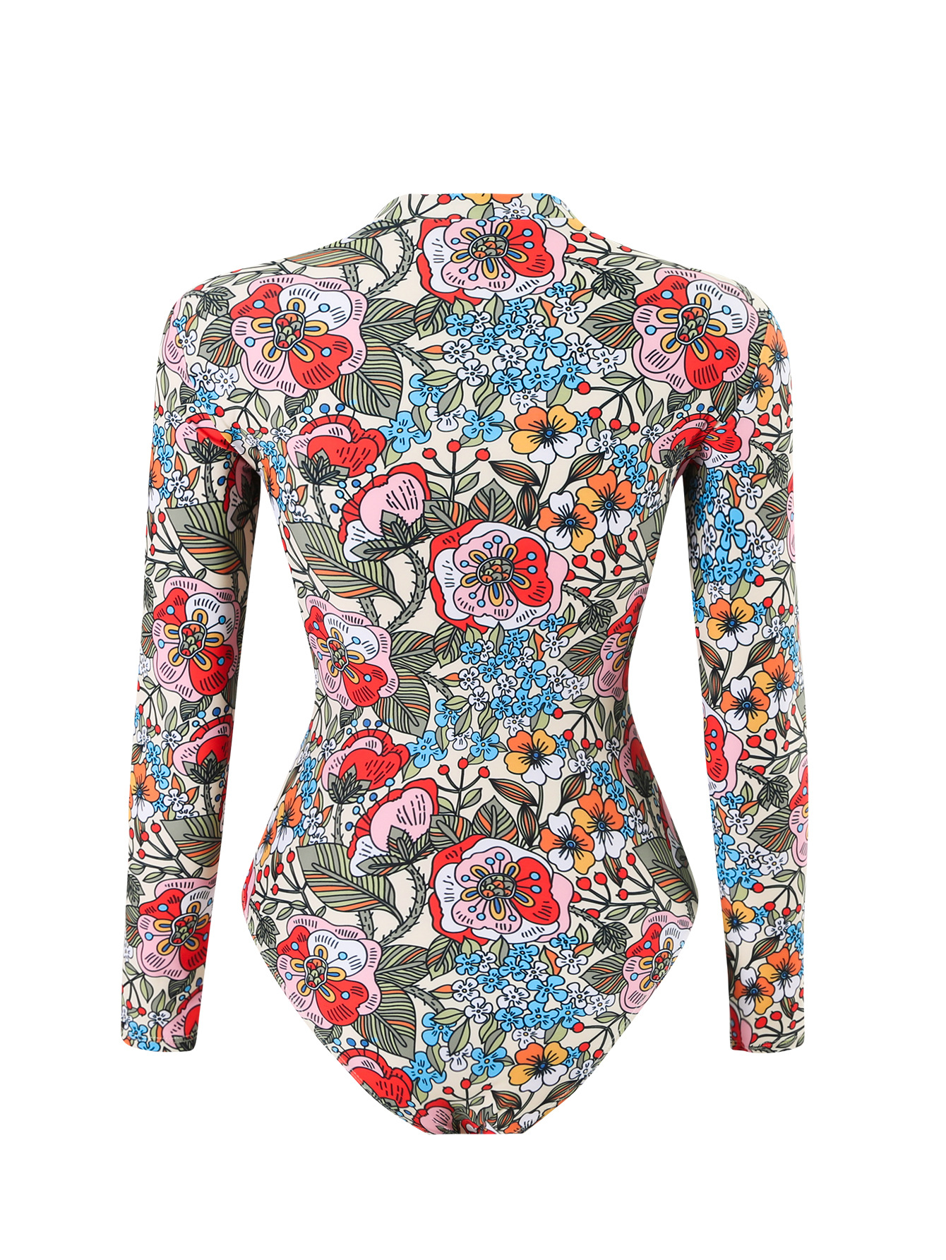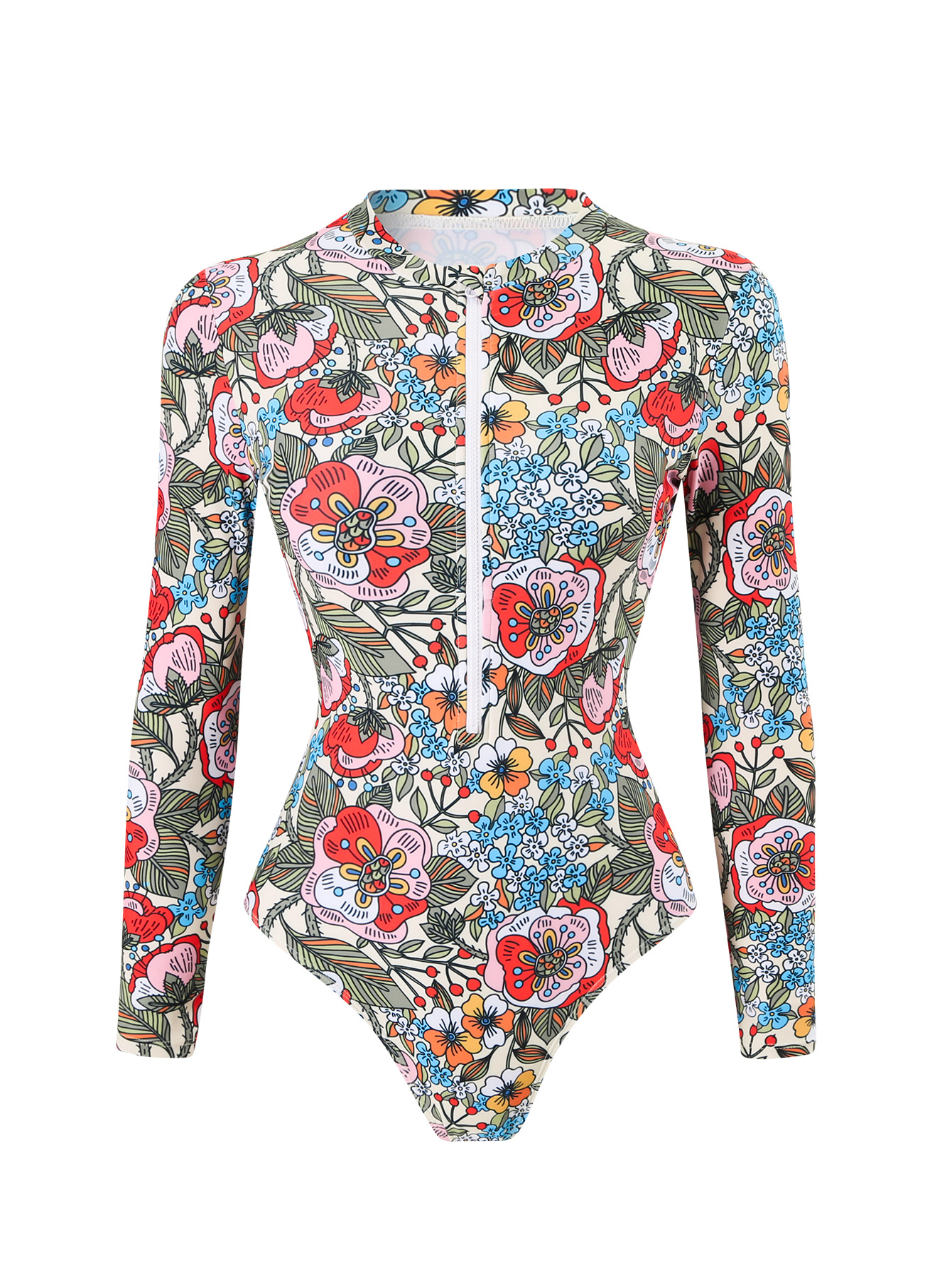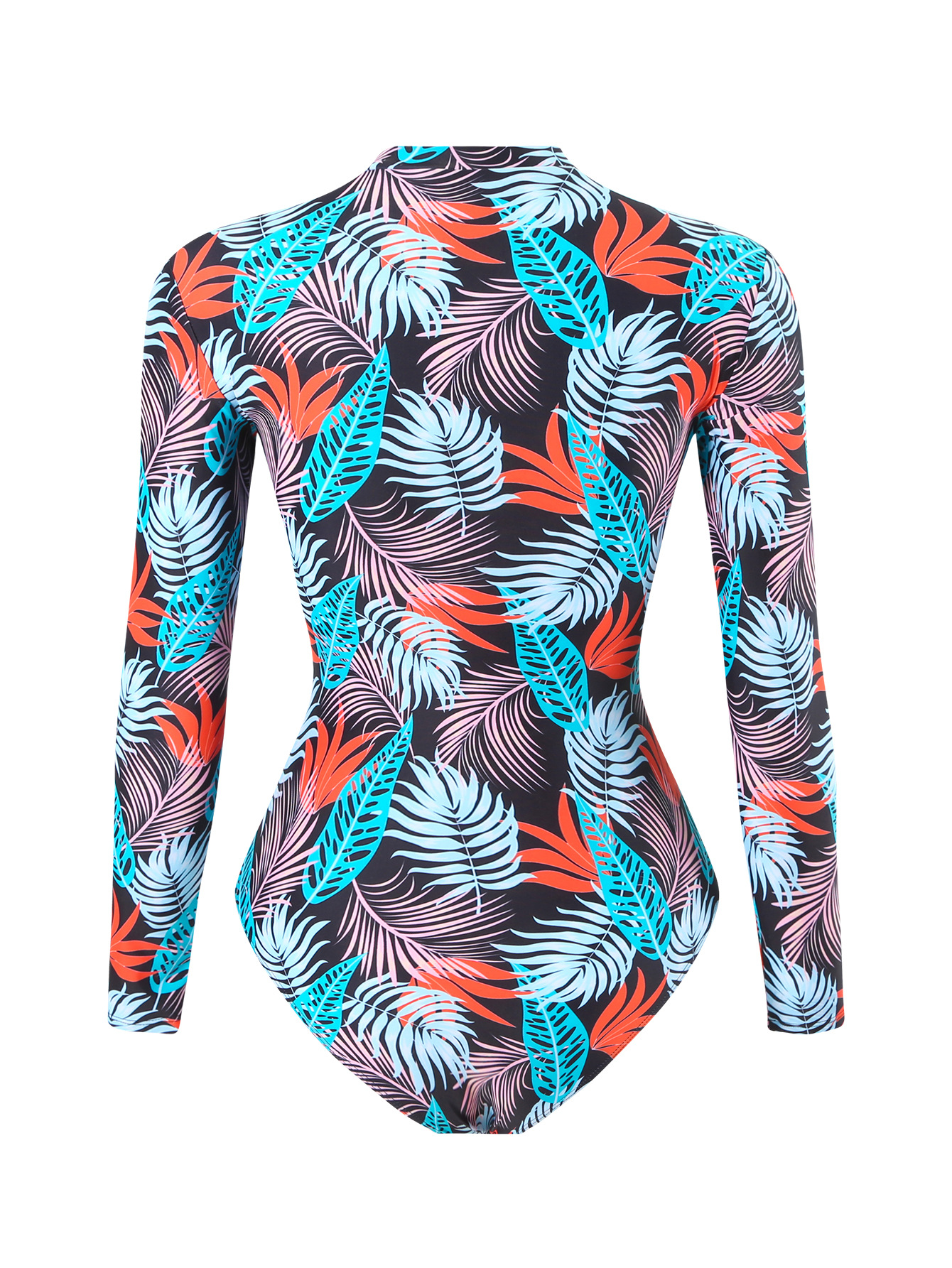 유럽과 미국은 국경을 넘나 드는 새로운 여성의 멀티 프린트 타이트 섹시한 지퍼 긴 소매 삼각형 원피스 경쟁 스포츠 수영복