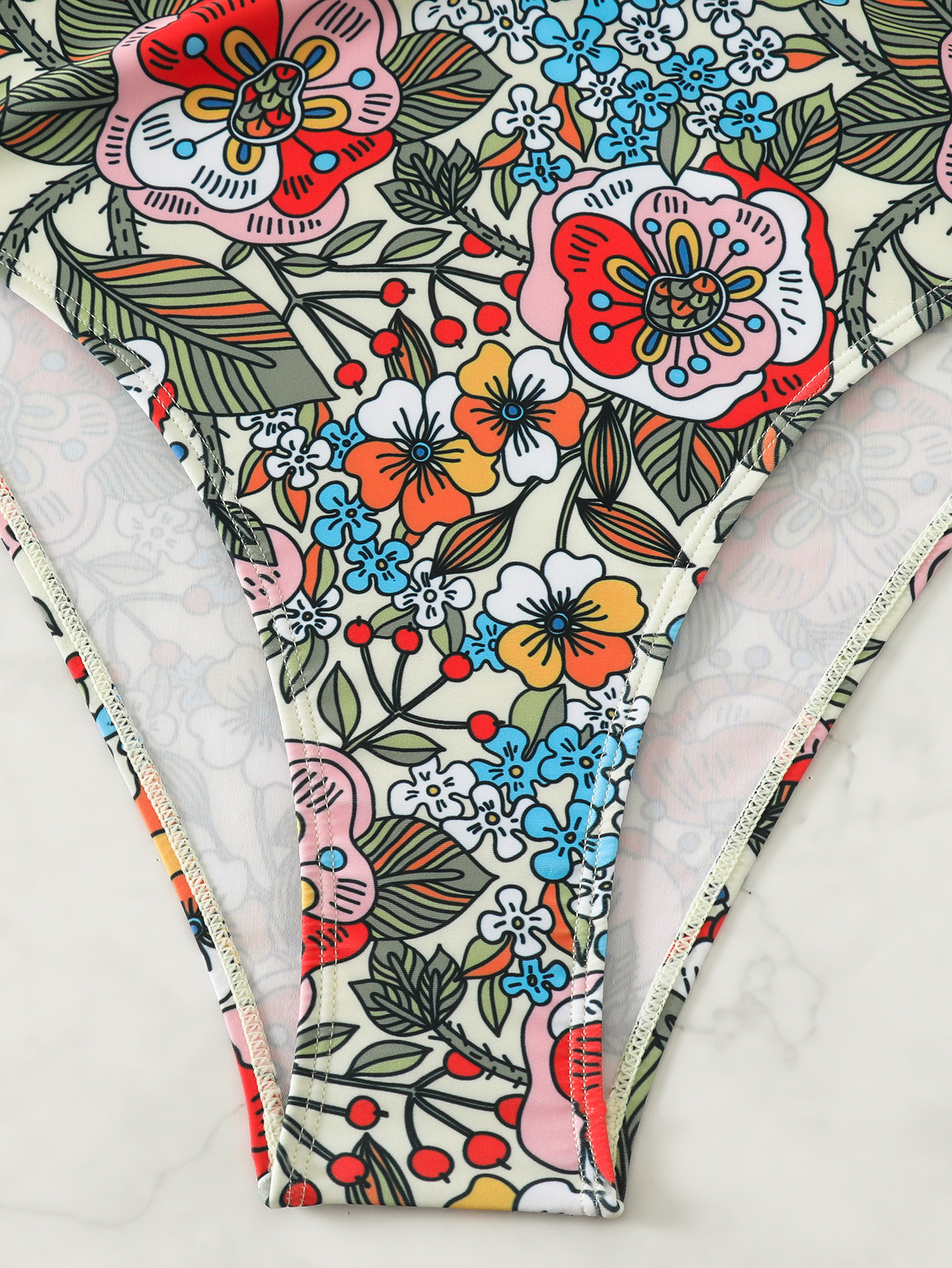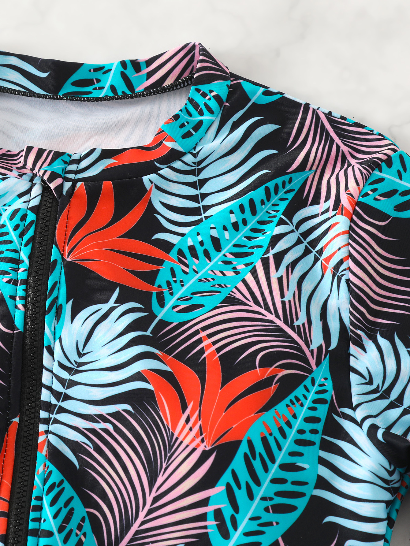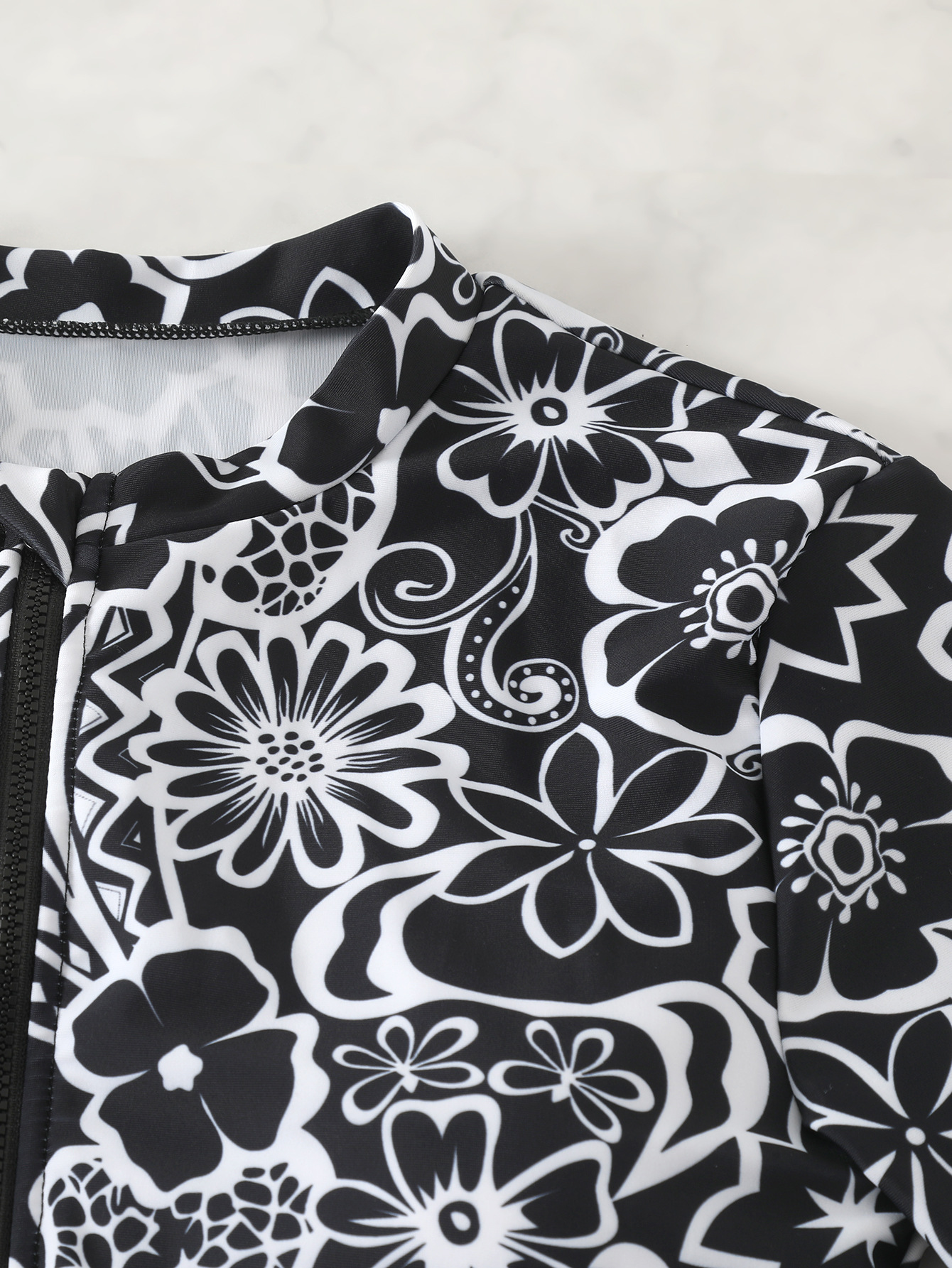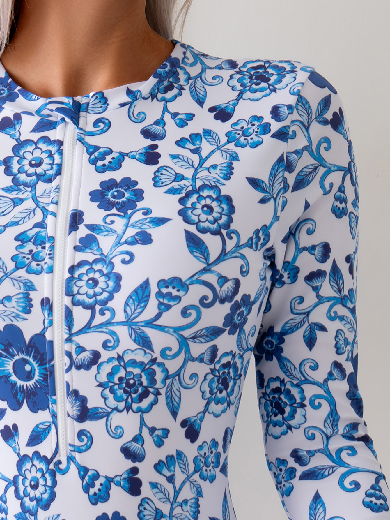 유럽과 미국은 국경을 넘나 드는 새로운 여성의 멀티 프린트 타이트 섹시한 지퍼 긴 소매 삼각형 원피스 경쟁 스포츠 수영복
