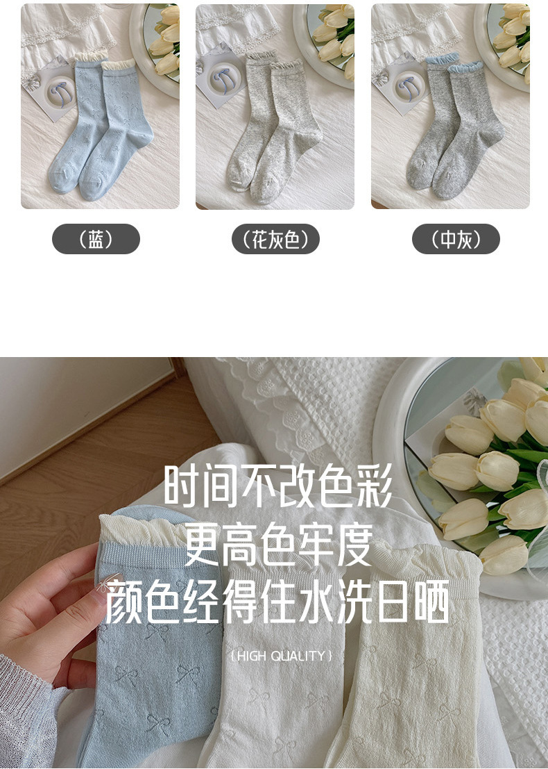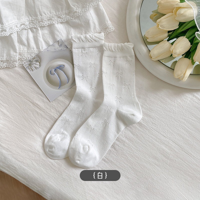 흰색 활 양말 여성 튜브 양말 여름 얇은 miu 스타일 발레 바람 양말을 쌓은면 통기성 스타킹