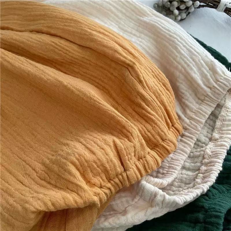 아동용 바지 2025 여름 느슨한 면 및 린넨 호박 바지 소년과 소녀를위한 아기 캐주얼 스타일 얇은 바지 유행스토어 가기
