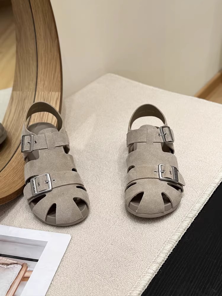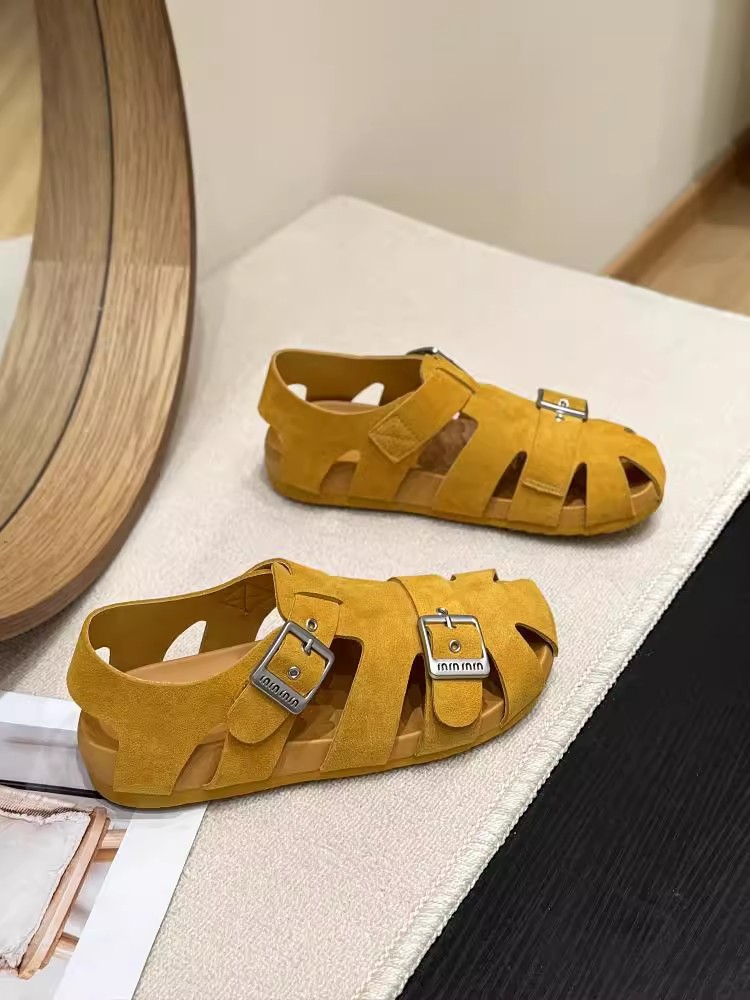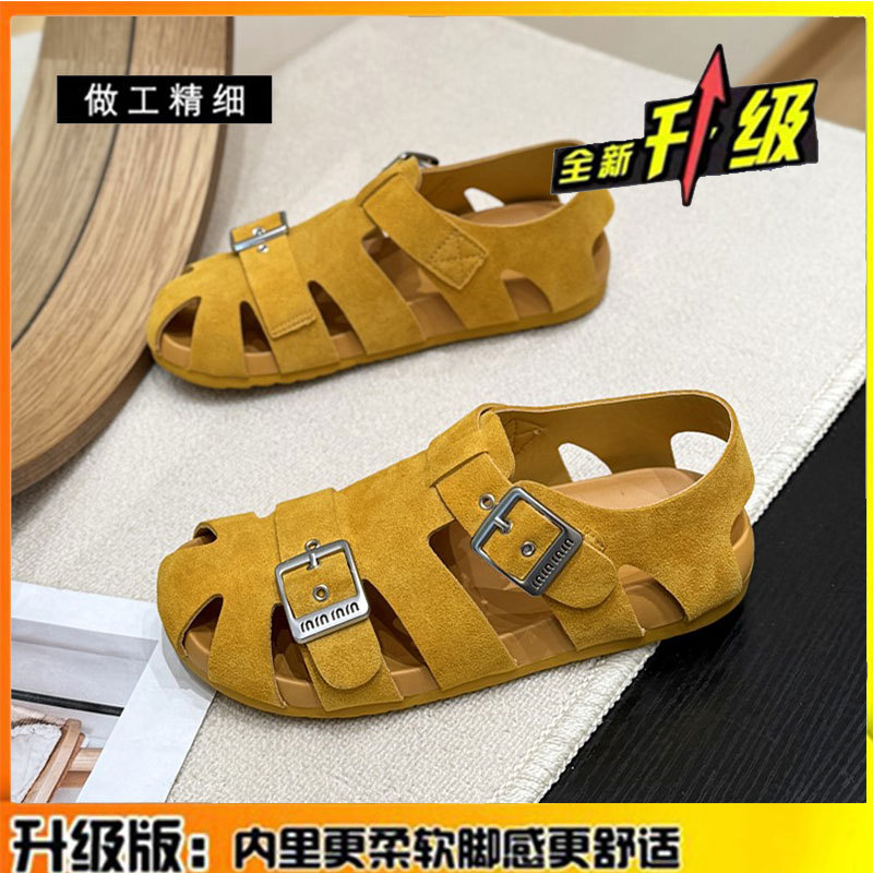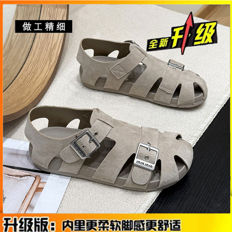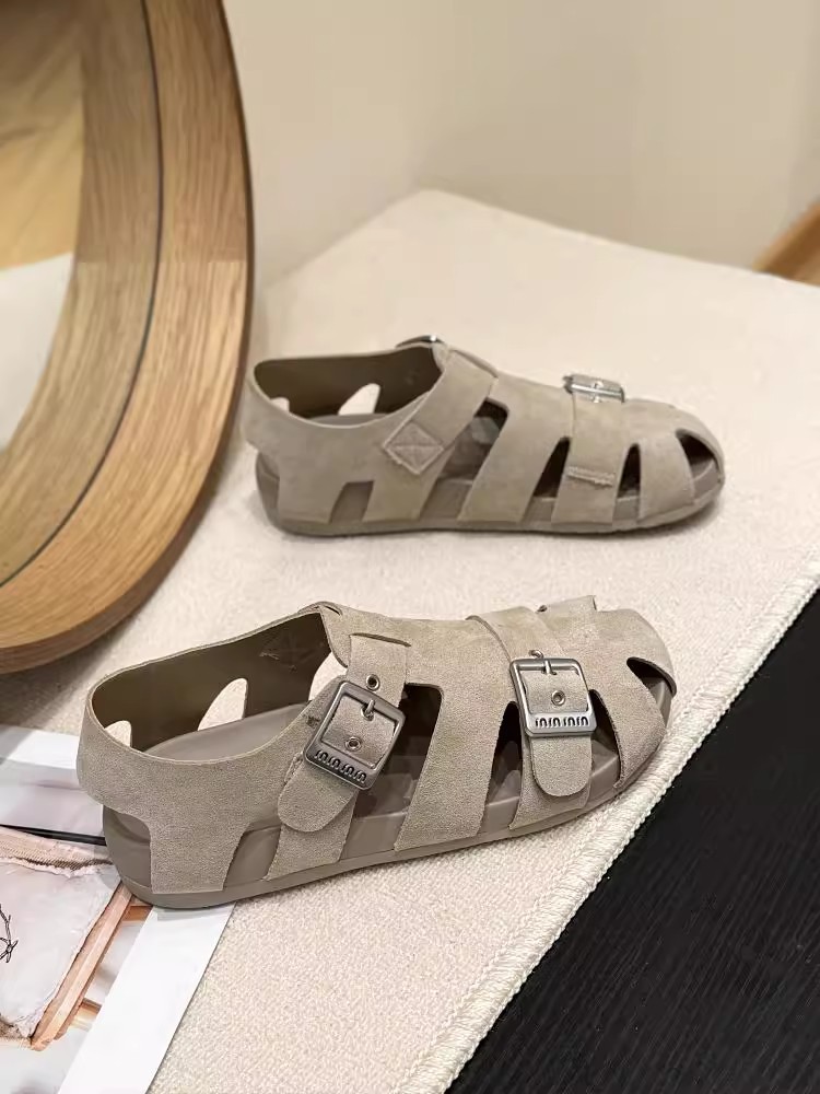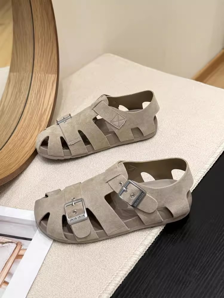 정품 가죽 중공 벨트 버클 버켄 여성 2025 년 여름 새로운 부드러운 밑창 편안한 돼지 케이지 로마 샌들