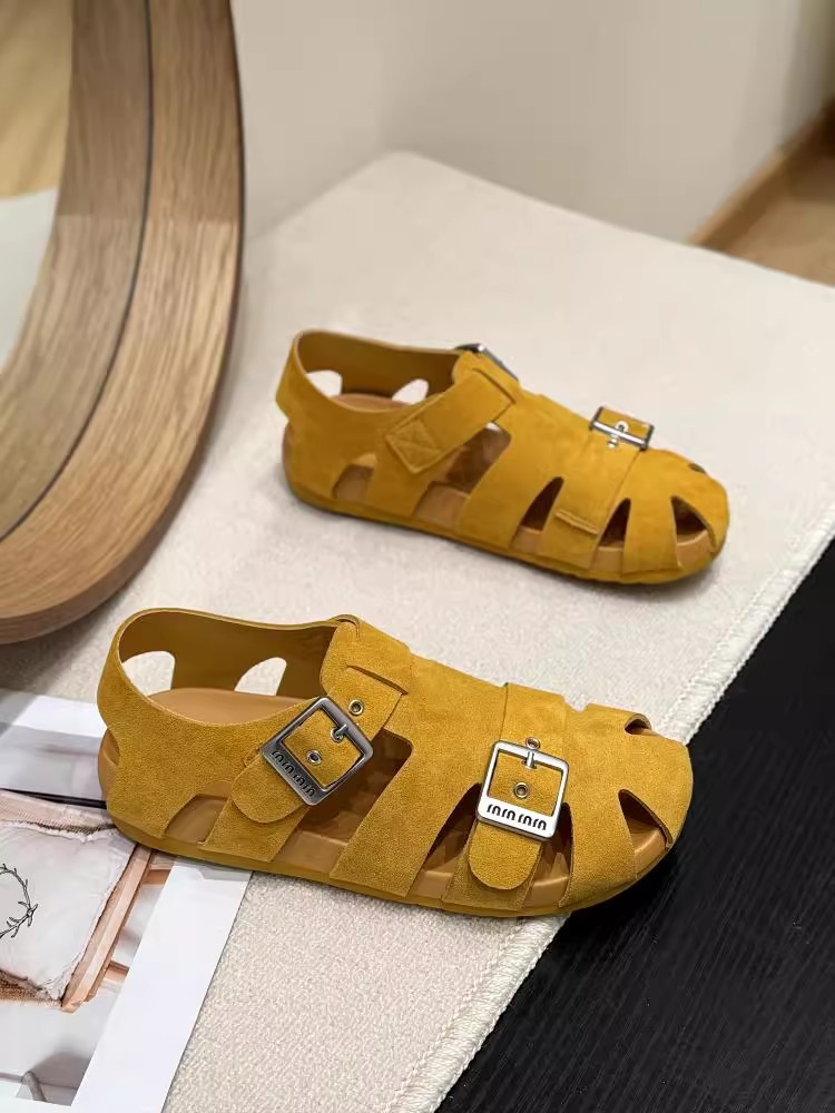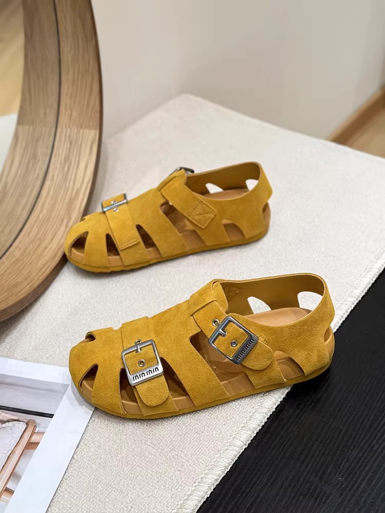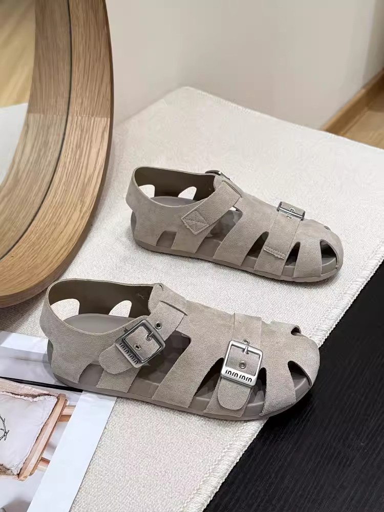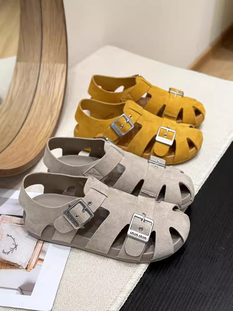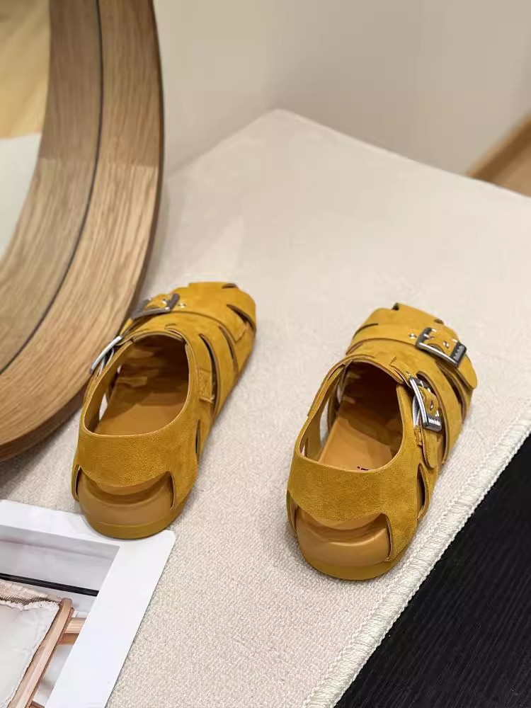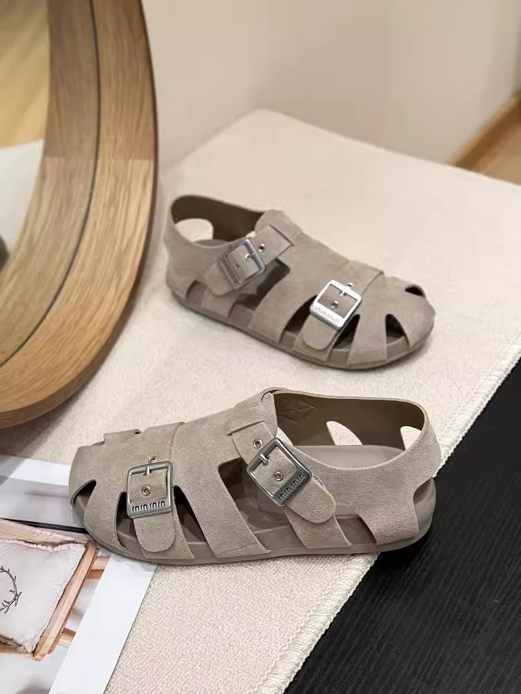 정품 가죽 중공 벨트 버클 버켄 여성 2025 년 여름 새로운 부드러운 밑창 편안한 돼지 케이지 로마 샌들