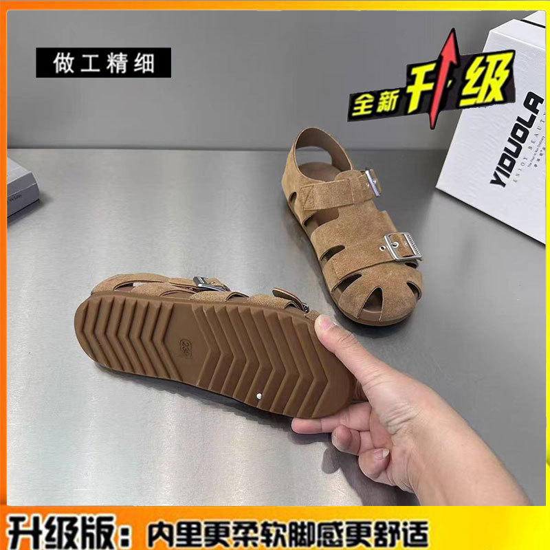정품 가죽 중공 벨트 버클 버켄 여성 2025 년 여름 새로운 부드러운 밑창 편안한 돼지 케이지 로마 샌들스토어 가기