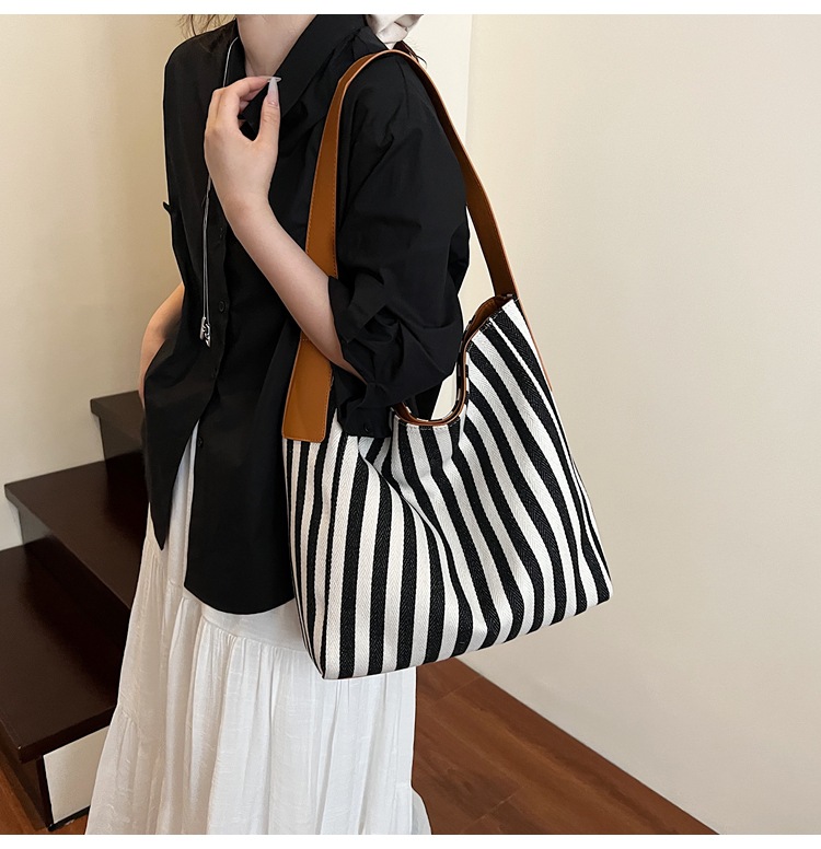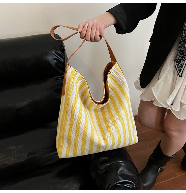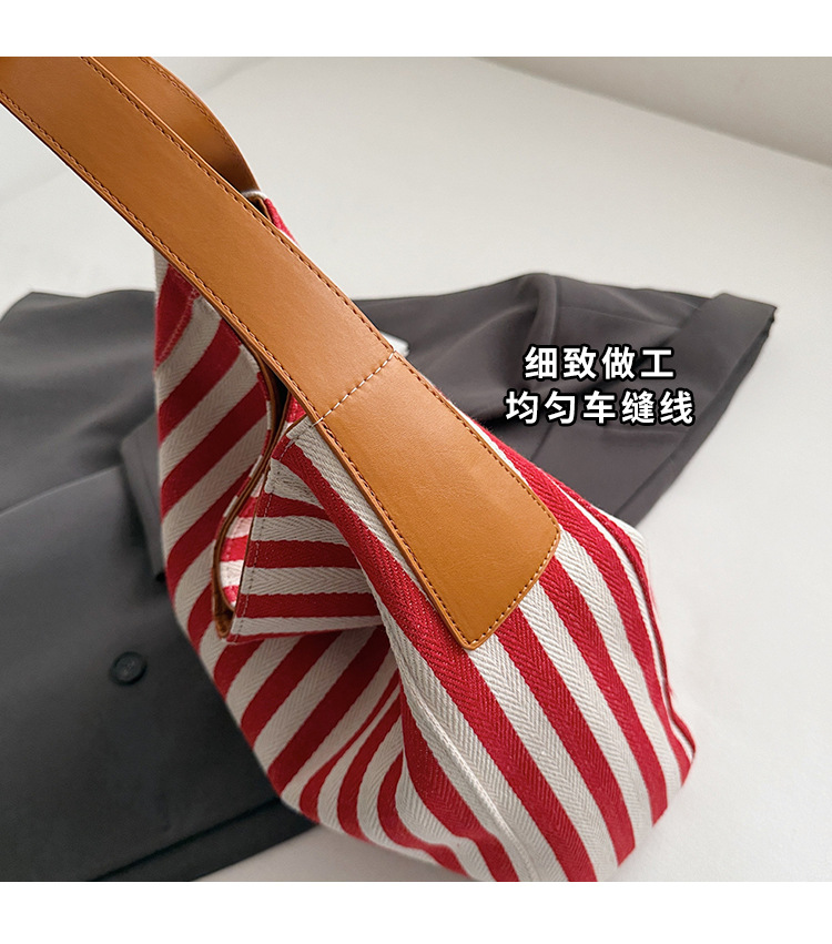 레드 캔버스 백 스트라이프 숄더 다용도 대용량 도파민 핸드백 봄 여름 신작 통근 겨드랑이 가방