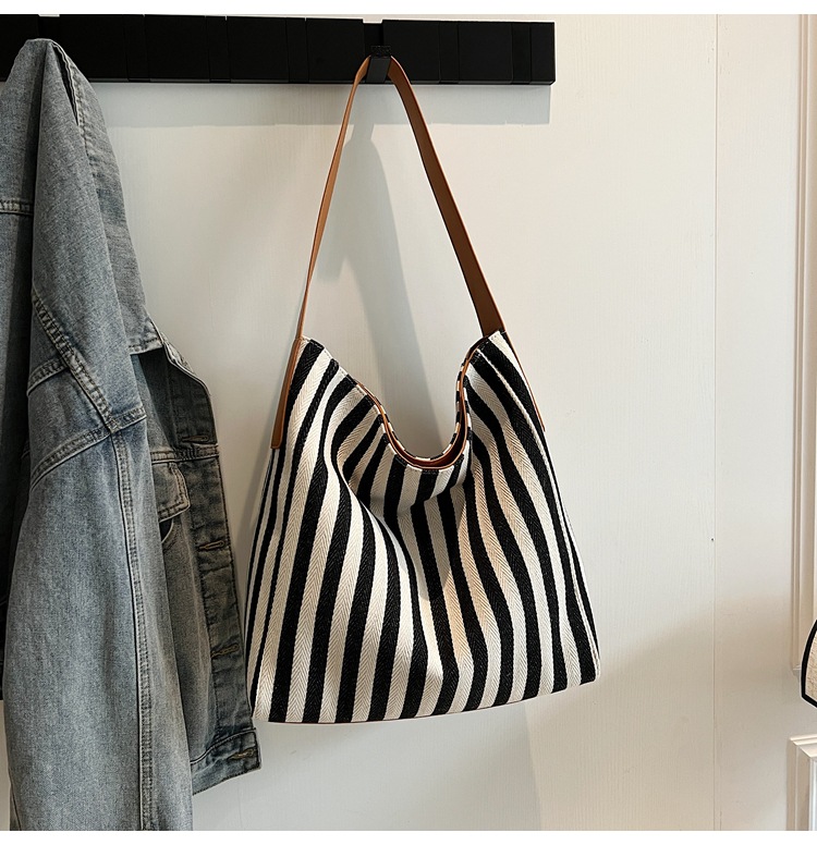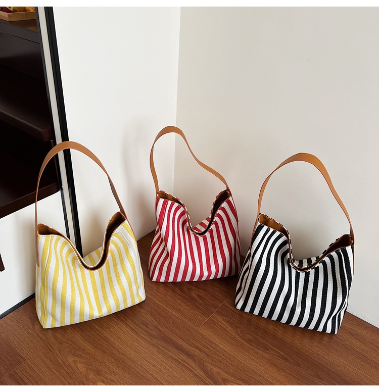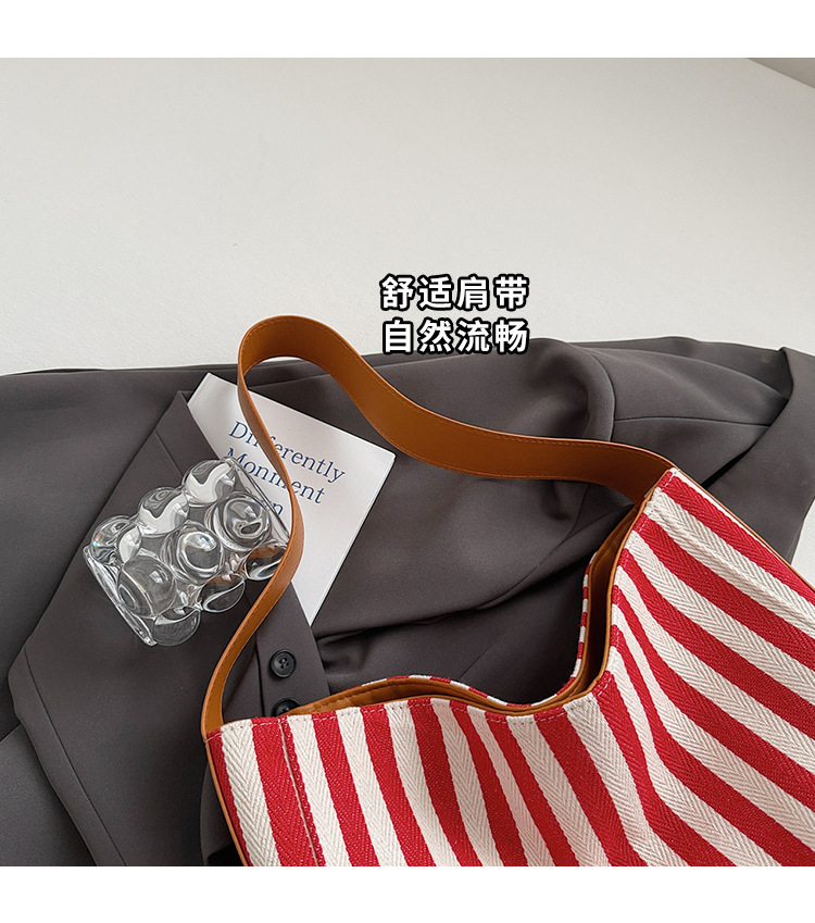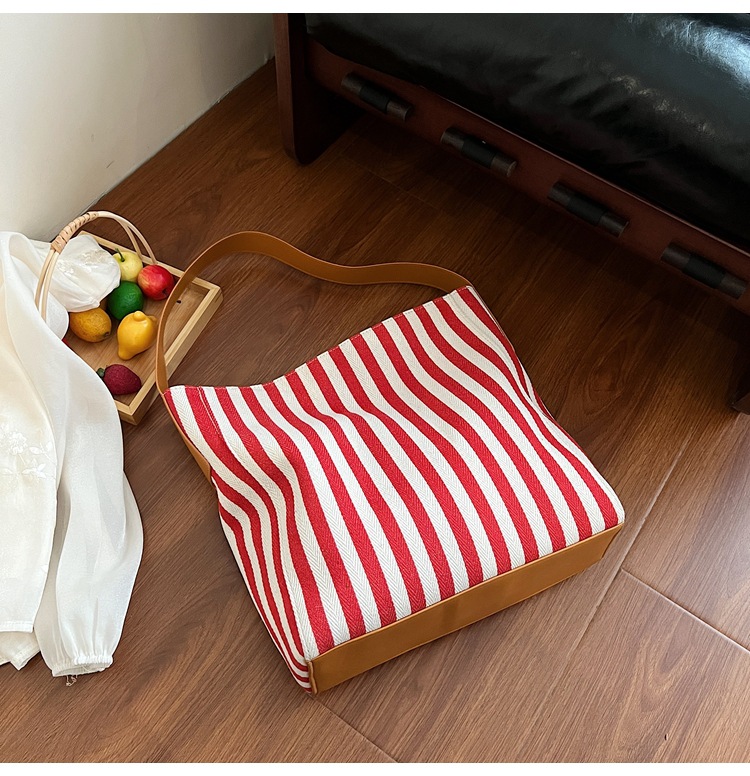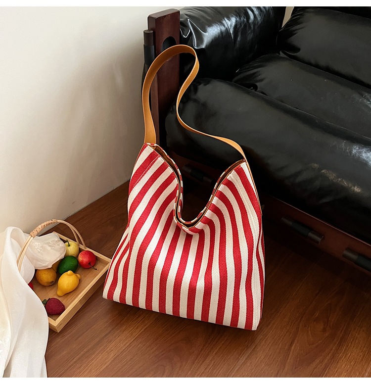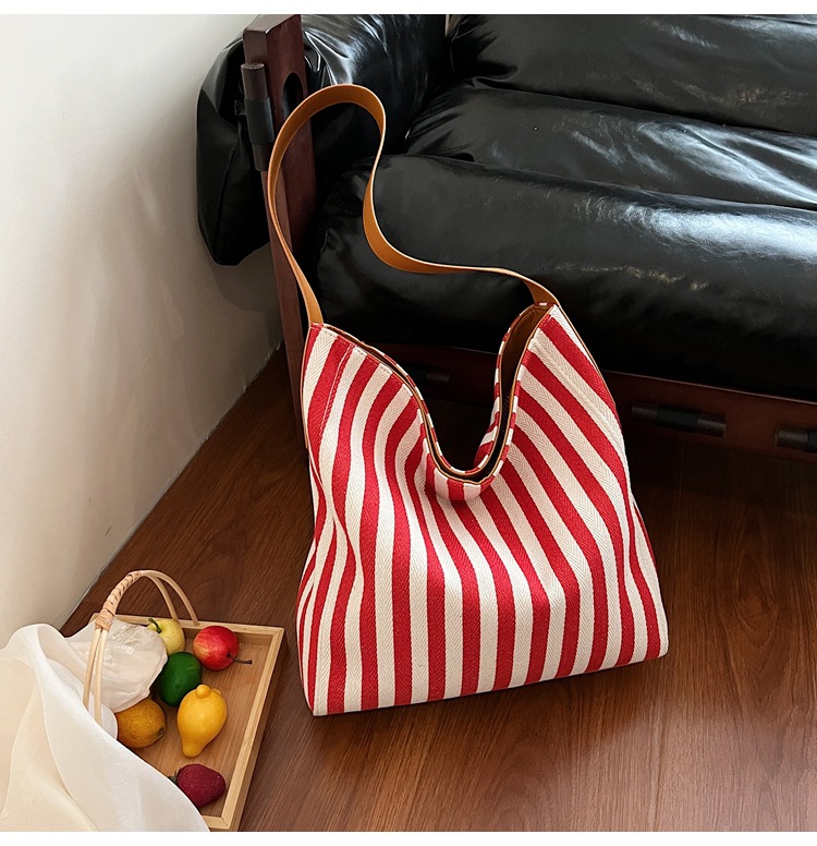 레드 캔버스 백 스트라이프 숄더 다용도 대용량 도파민 핸드백 봄 여름 신작 통근 겨드랑이 가방스토어 가기