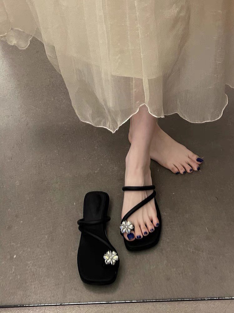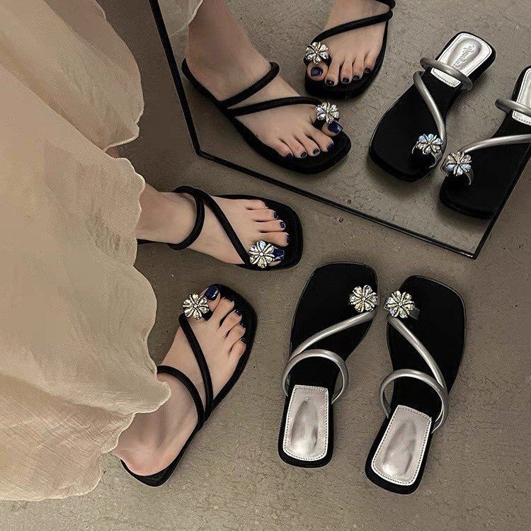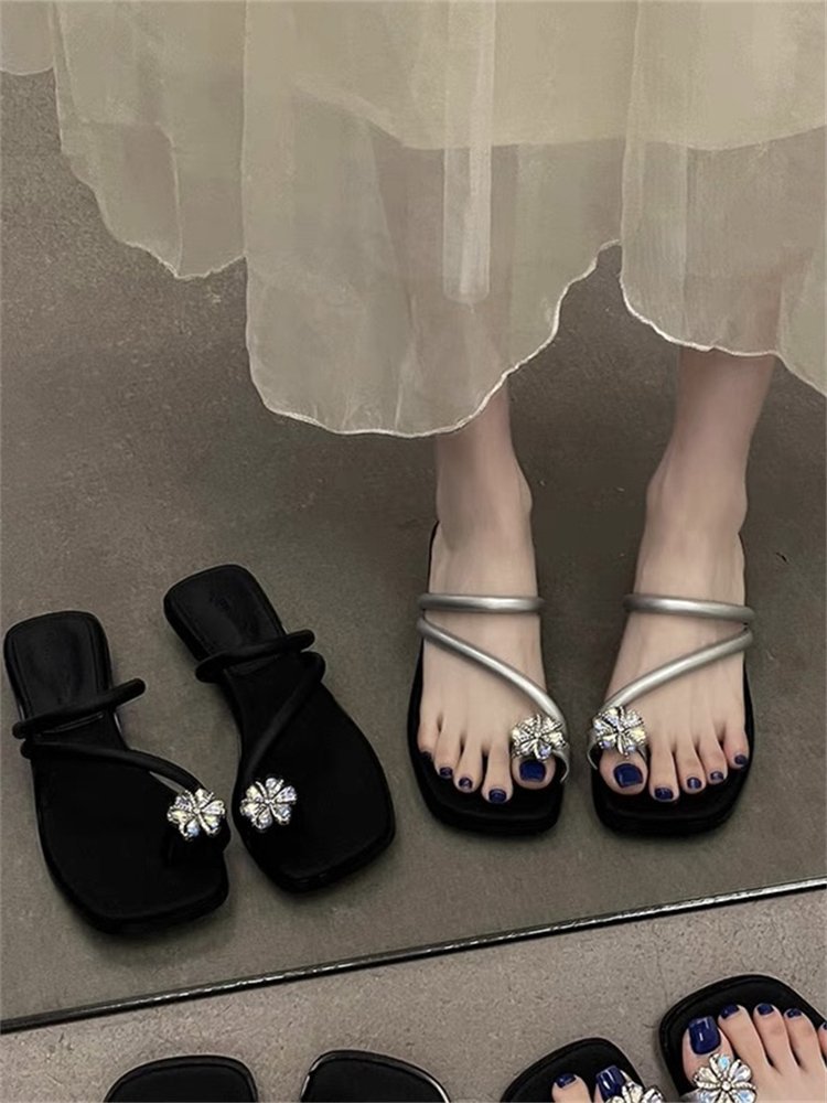 여성을위한 꽃 라인 석 샌들 2025 여름 새로운 스타일 플립 플롭 요정 스타일 겉옷 해변 해변 신발스토어 가기