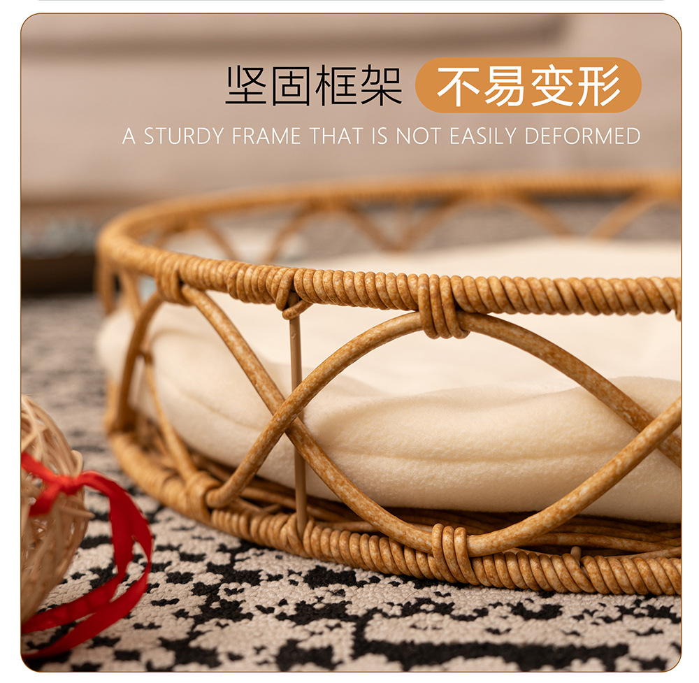 등나무 고양이 집 애완동물 집 가정용 실내 개집 통기성 고양이 빌라 대형 고양이 집 고양이 하우스 개 침대