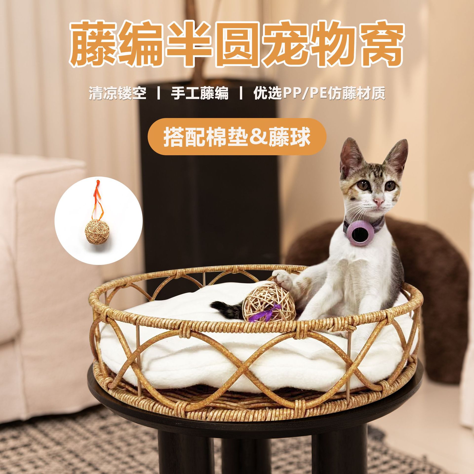 • 반원형 애완동물 둥지 + 매트 + 세팍타크로 공