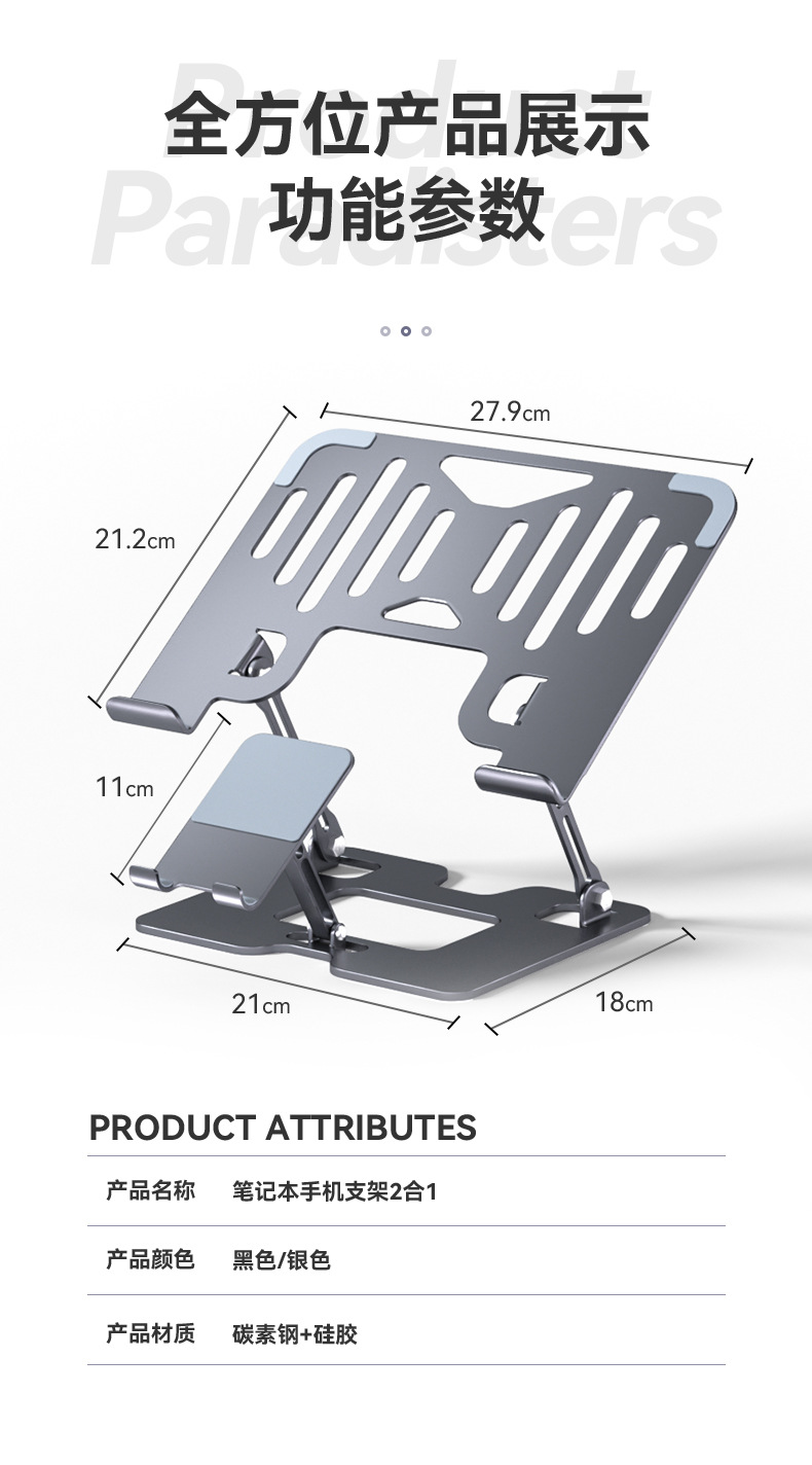 • 실버(중공형-노트북 및 휴대폰용 투인원 스탠드)