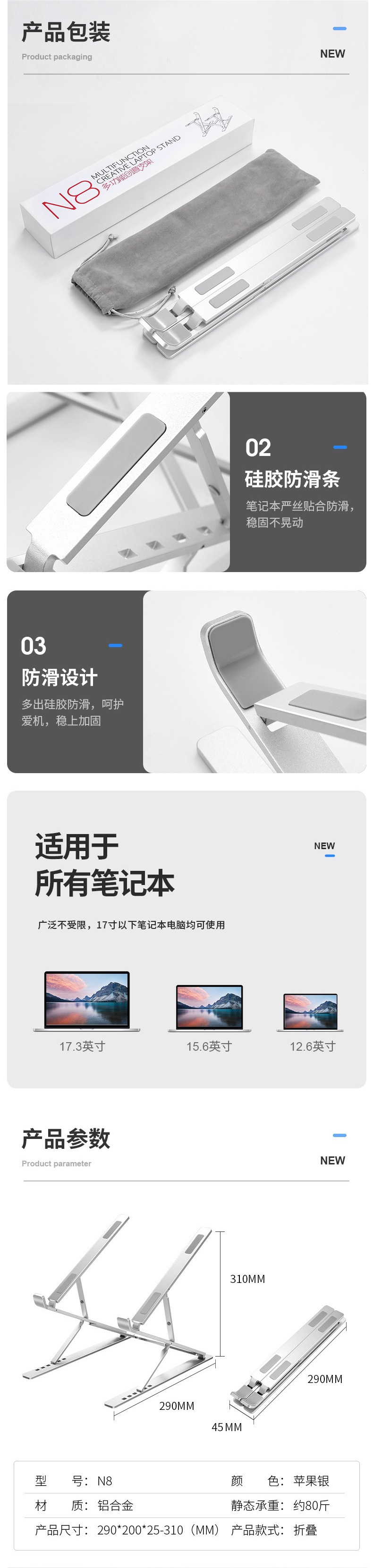 • (업그레이드 모델) 2단 알루미늄 합금 강화 방열 브라켓 [실버] + 무료 미끄럼 방지 스티커