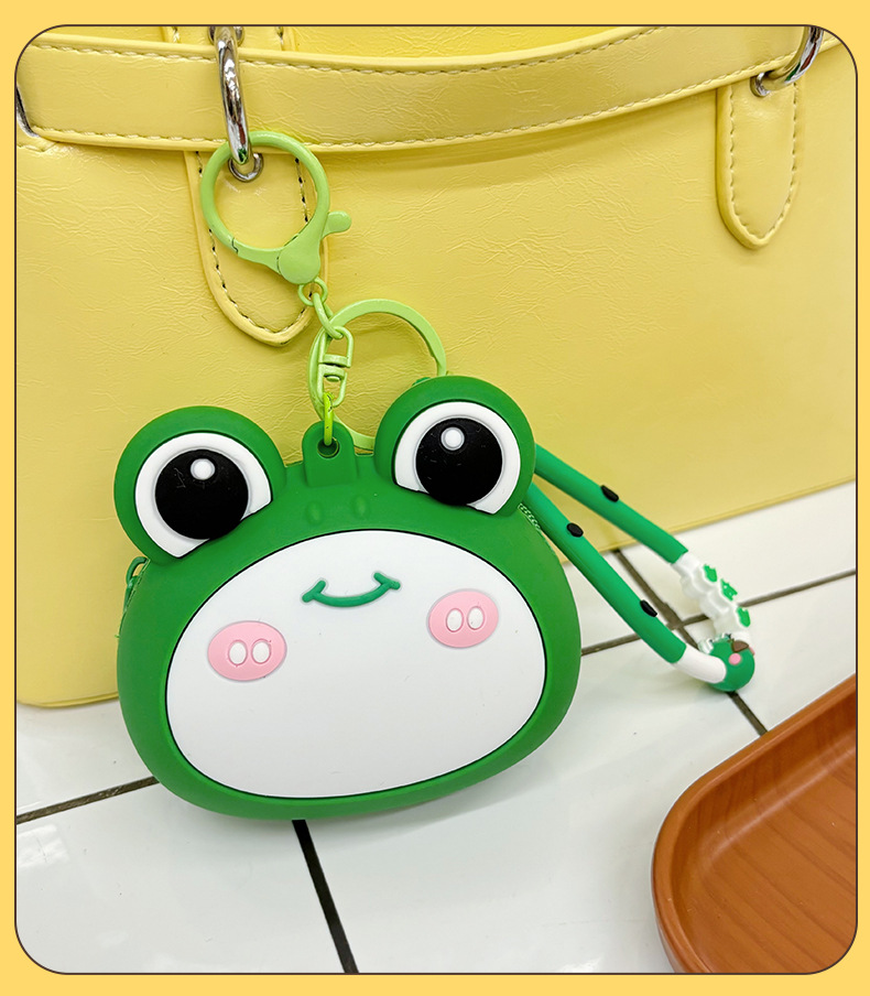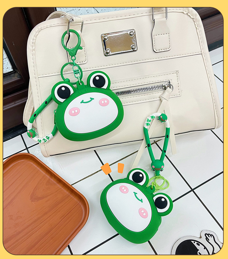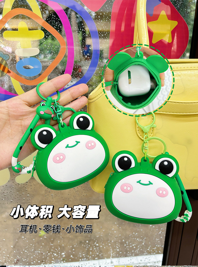 새로운 개구리 동전 지갑 어린이 만화 미니 이어폰 실리콘 보관 가방 여성의 귀여운 키 작은 지갑 펜던트