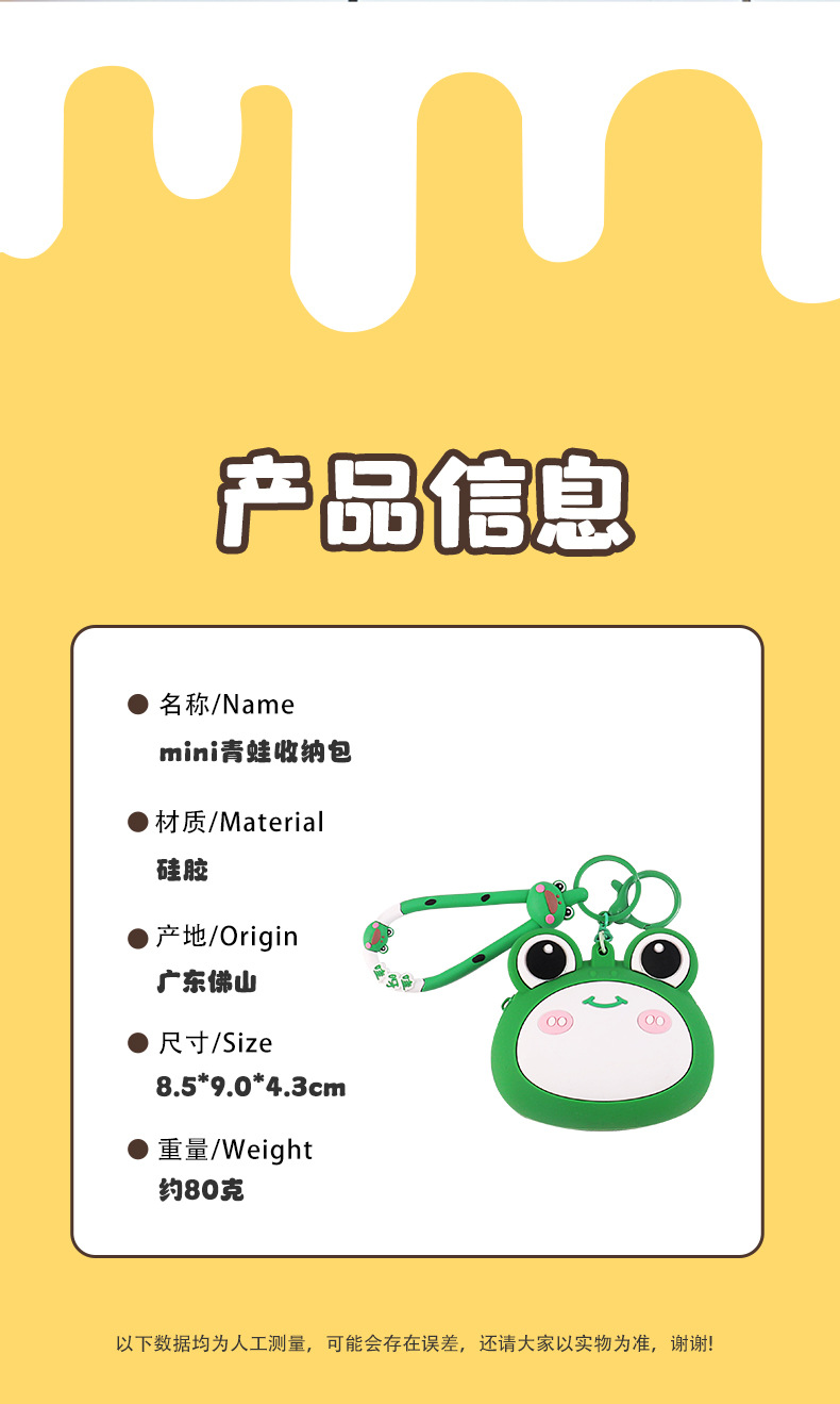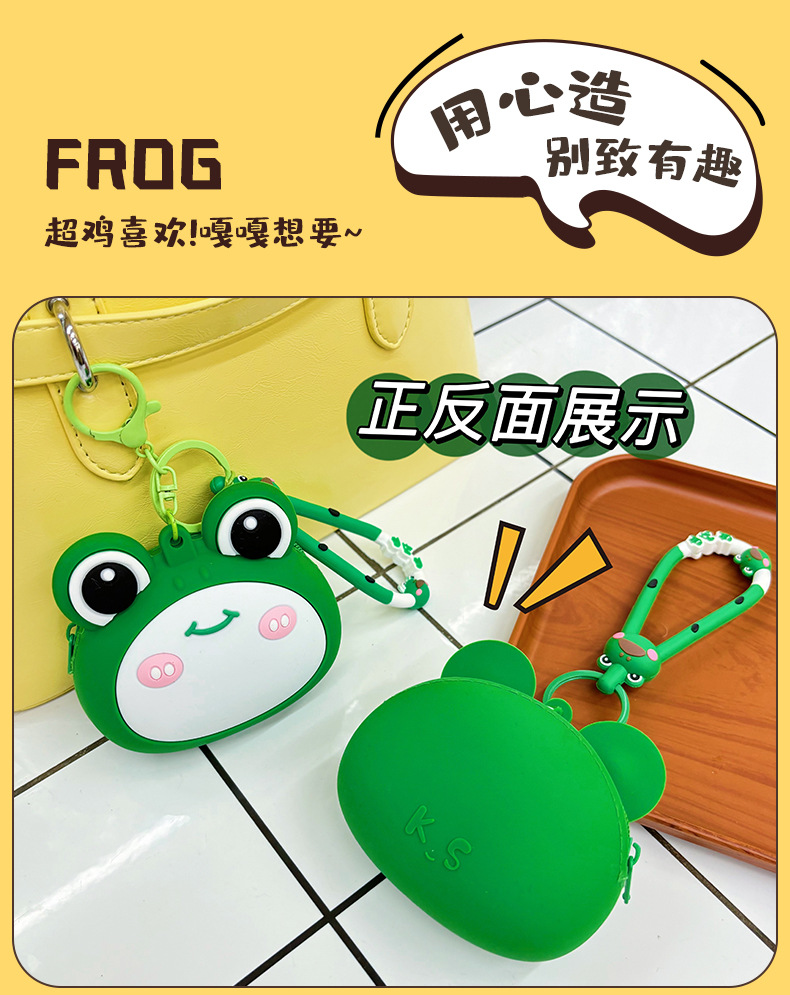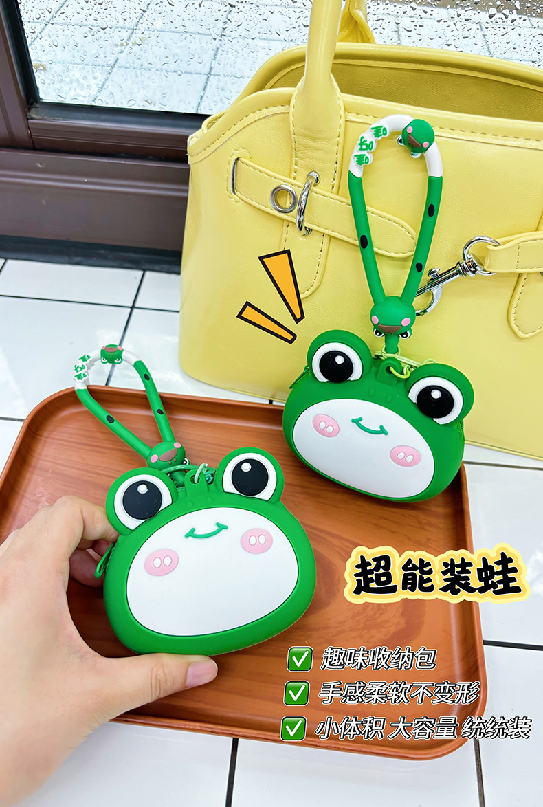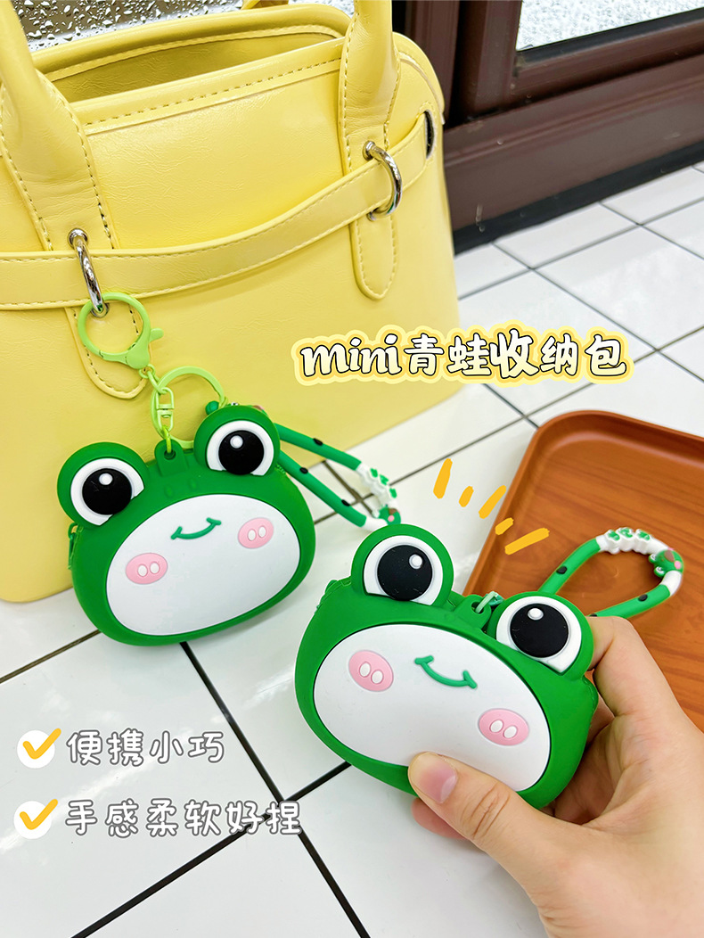 새로운 개구리 동전 지갑 어린이 만화 미니 이어폰 실리콘 보관 가방 여성의 귀여운 키 작은 지갑 펜던트스토어 가기