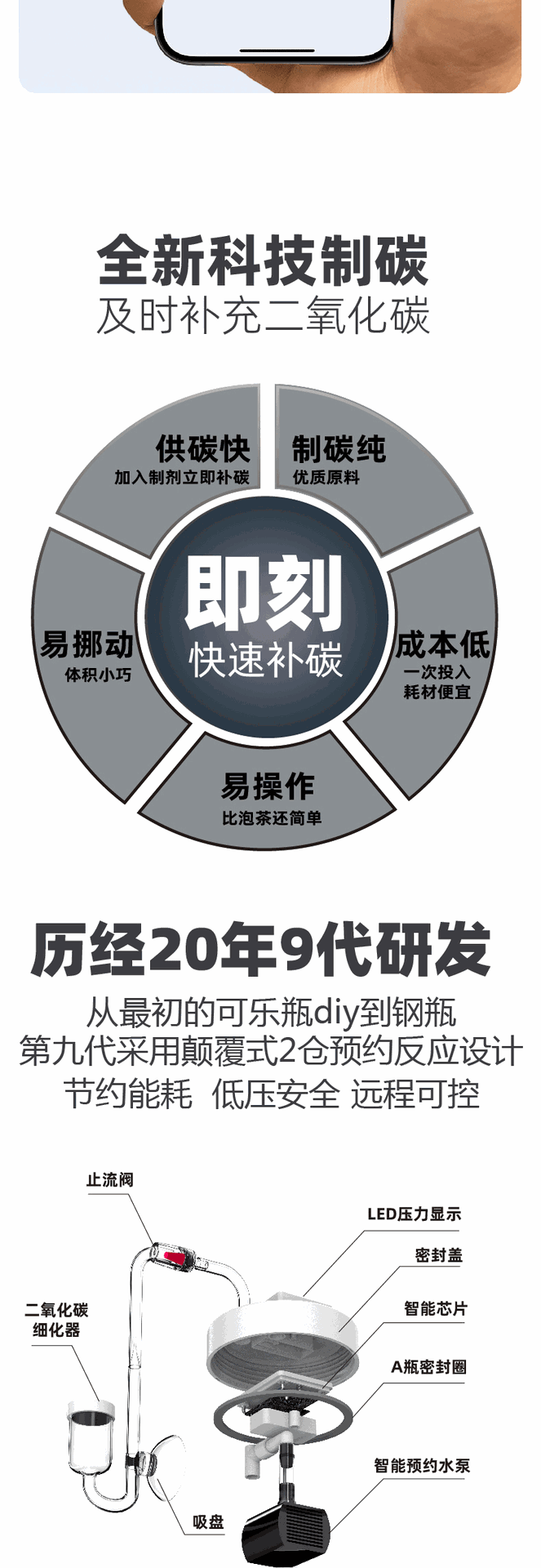 수족관 수조 이산화탄소 발생기 지능형 원격 수생 식물 지원 저압 안전 CO2 발생기 세트스토어 가기