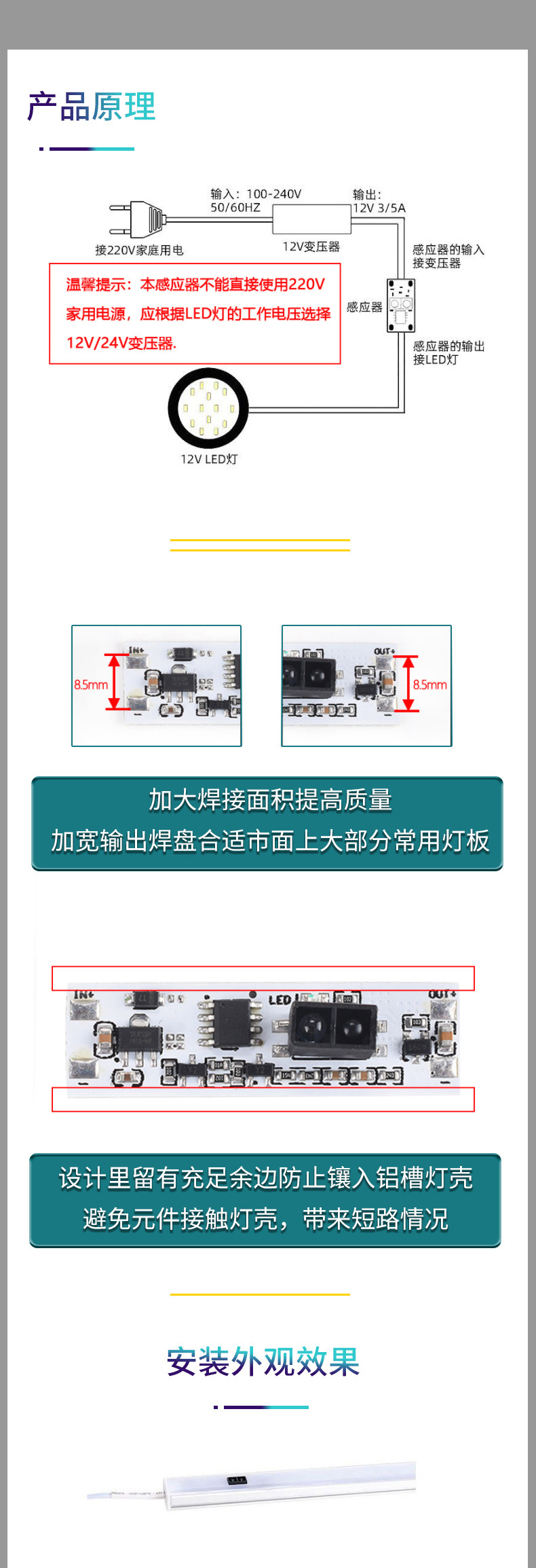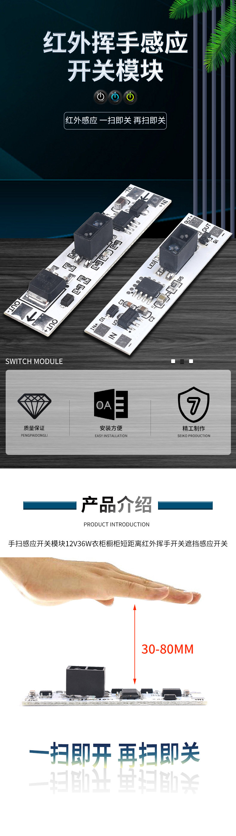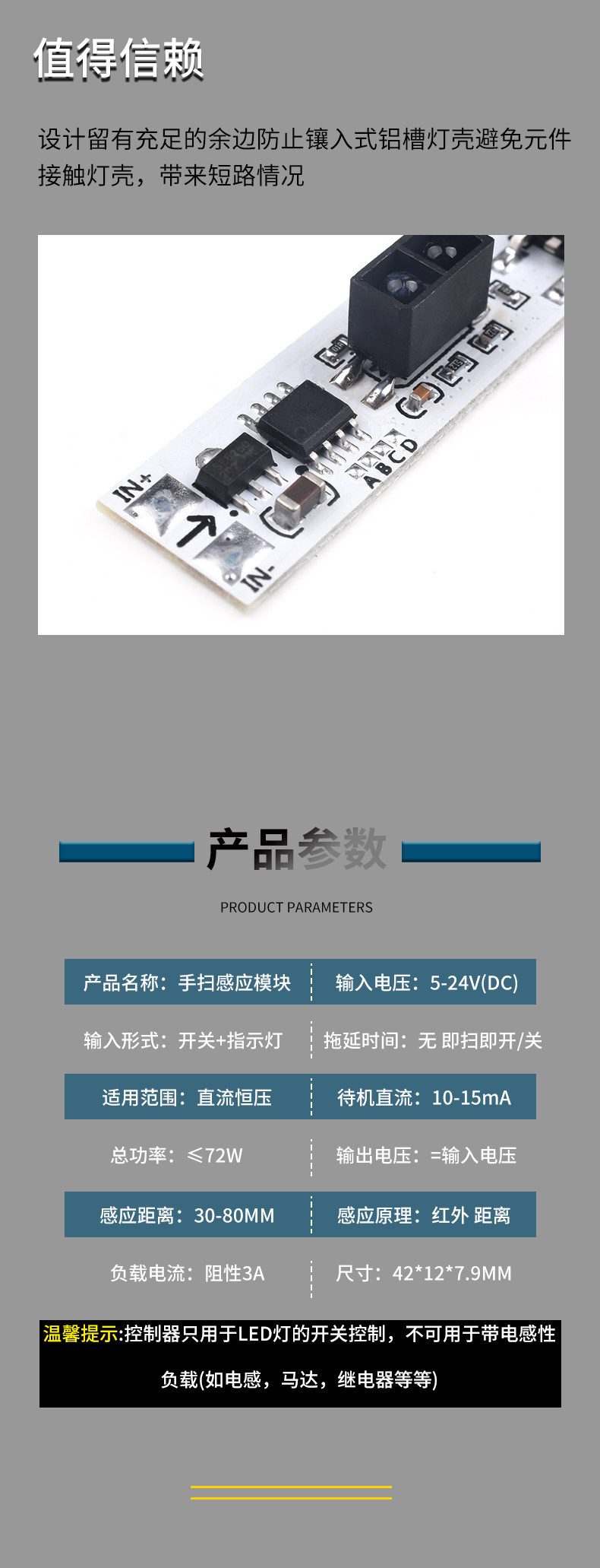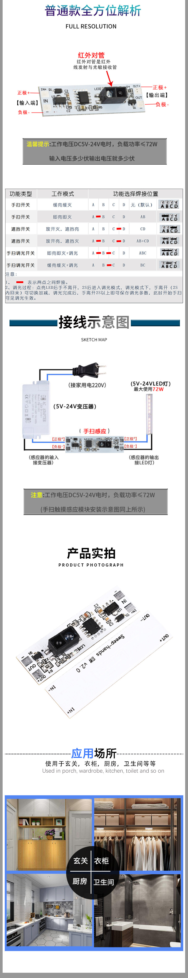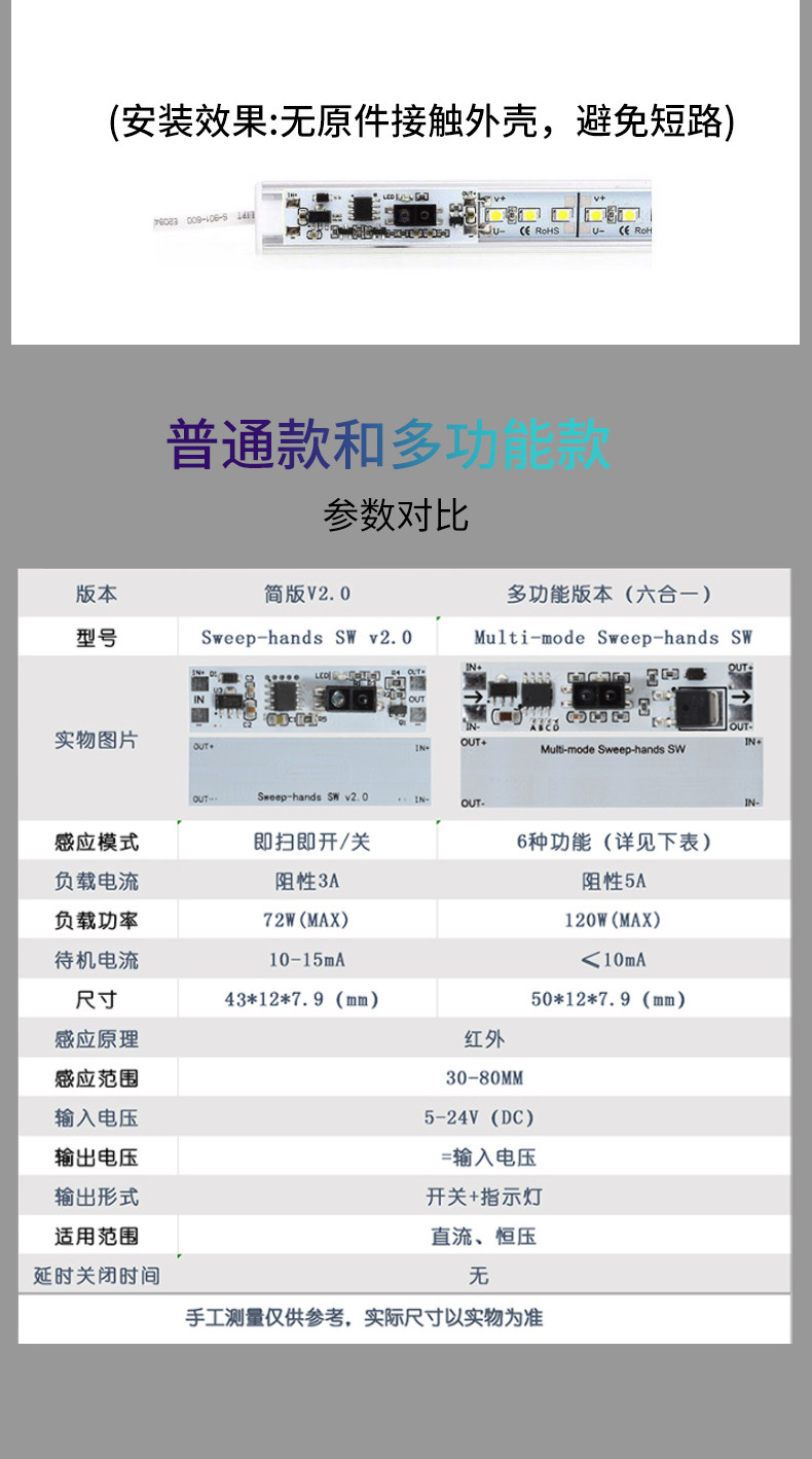 5V-12V-24V 72W 내부 캐비닛 옷장 신발 캐비닛 LED 조명에 적합한 핸드 스윕 휴대용 센서 스위치 모듈
