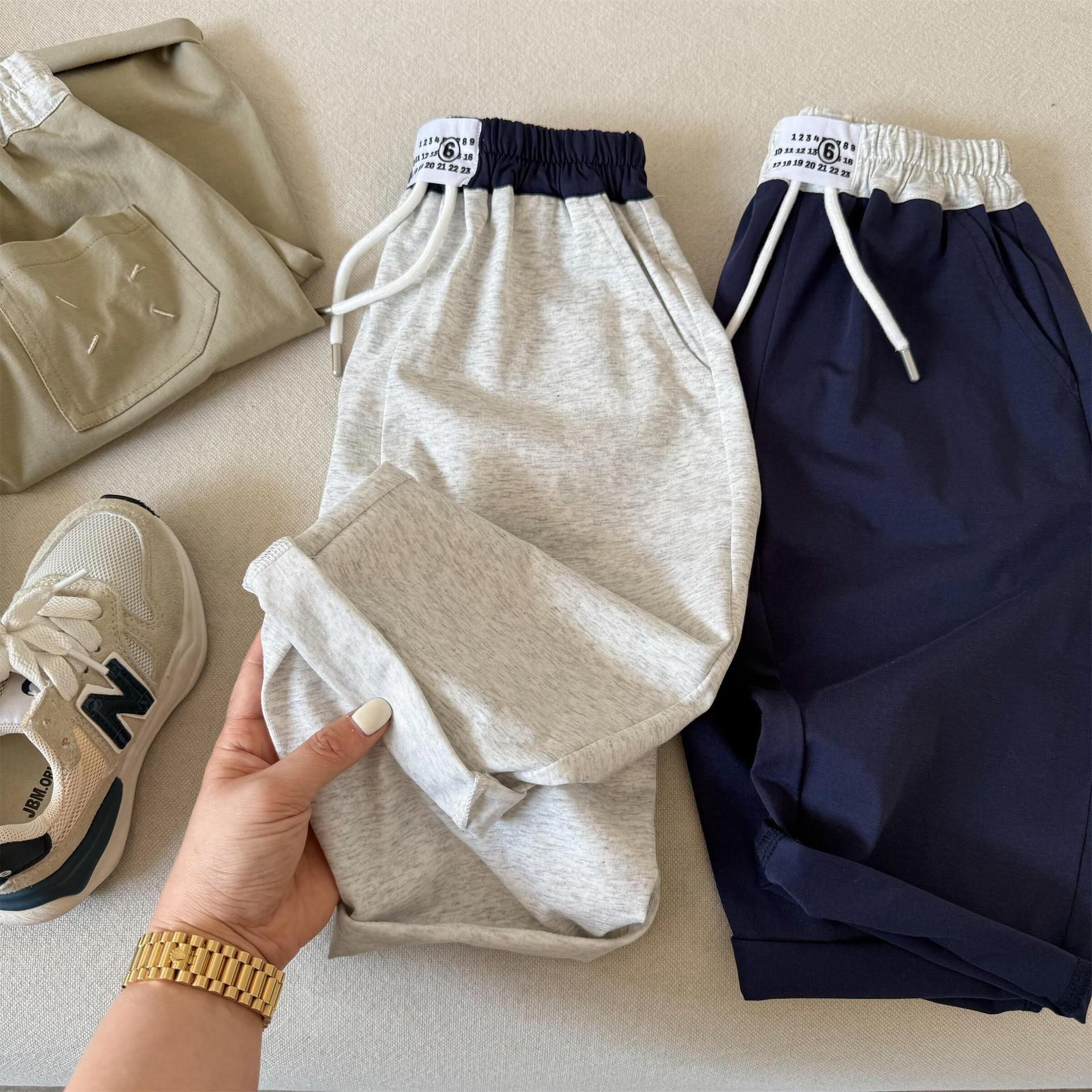 [Ningli] 여름용 남아 및 여아용 아동용 바지, 일본식 스플라이스 스포츠 캐주얼 바지, 유아 및 아동용 패셔너블한 스웨트팬츠