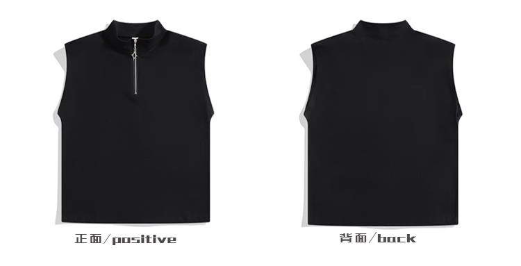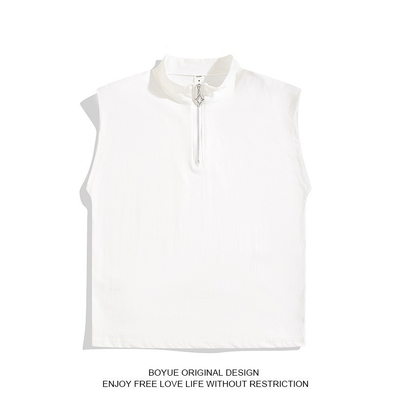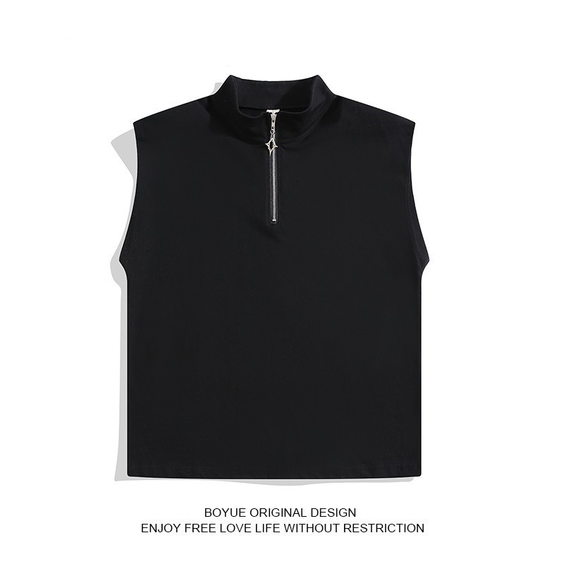 아메리칸 하프 터틀넥 지퍼 조끼 남성용 틈새 디자인 어깨 패드 민소매 티셔츠 하이 엔드 솔리드 컬러 조끼 탑스토어 가기