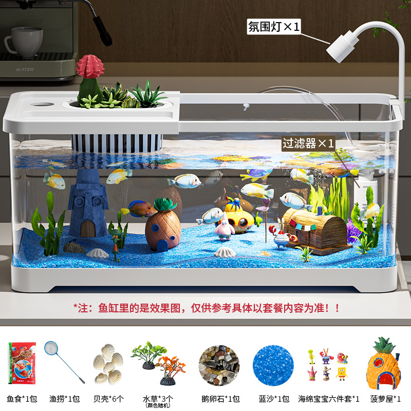 수조 수족관 가정용 필터 산소 발생기 통합 물고기 수조 고화질 투명 거실 데스크탑 거북이 사육 탱크스토어 가기