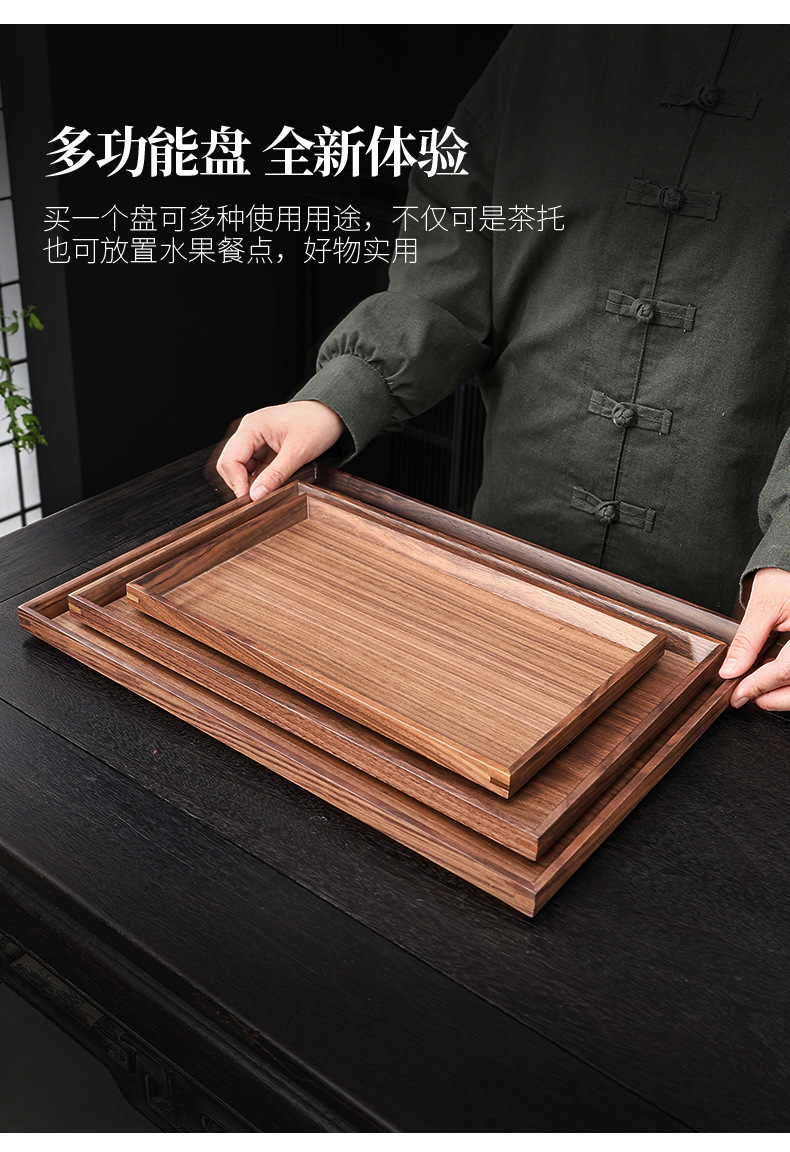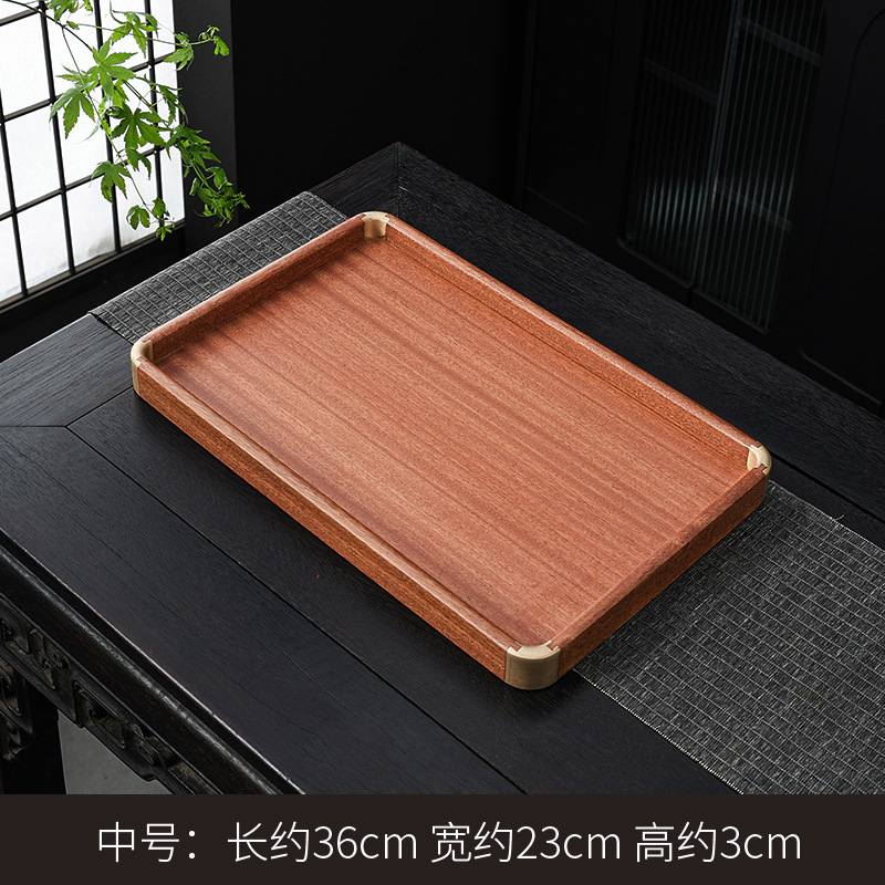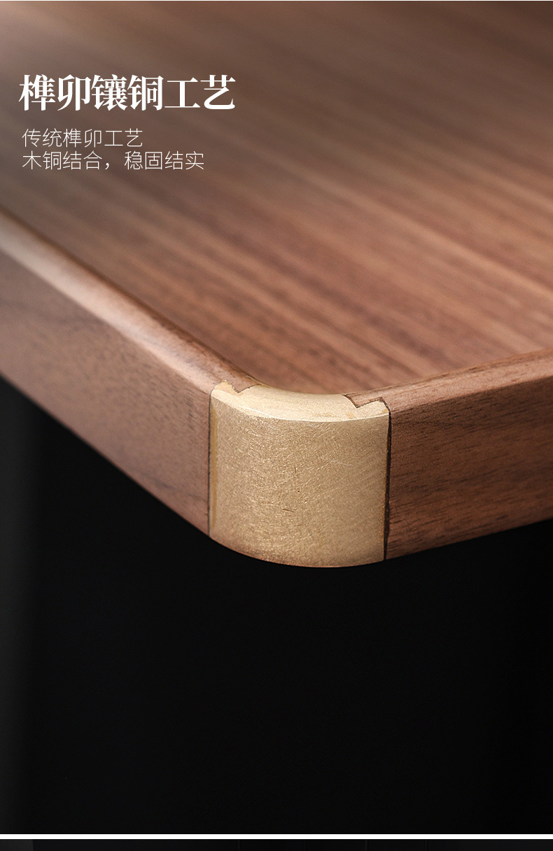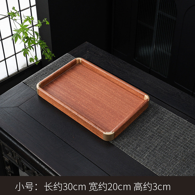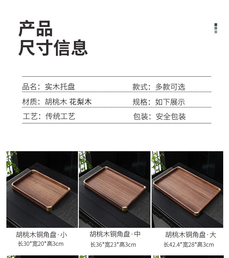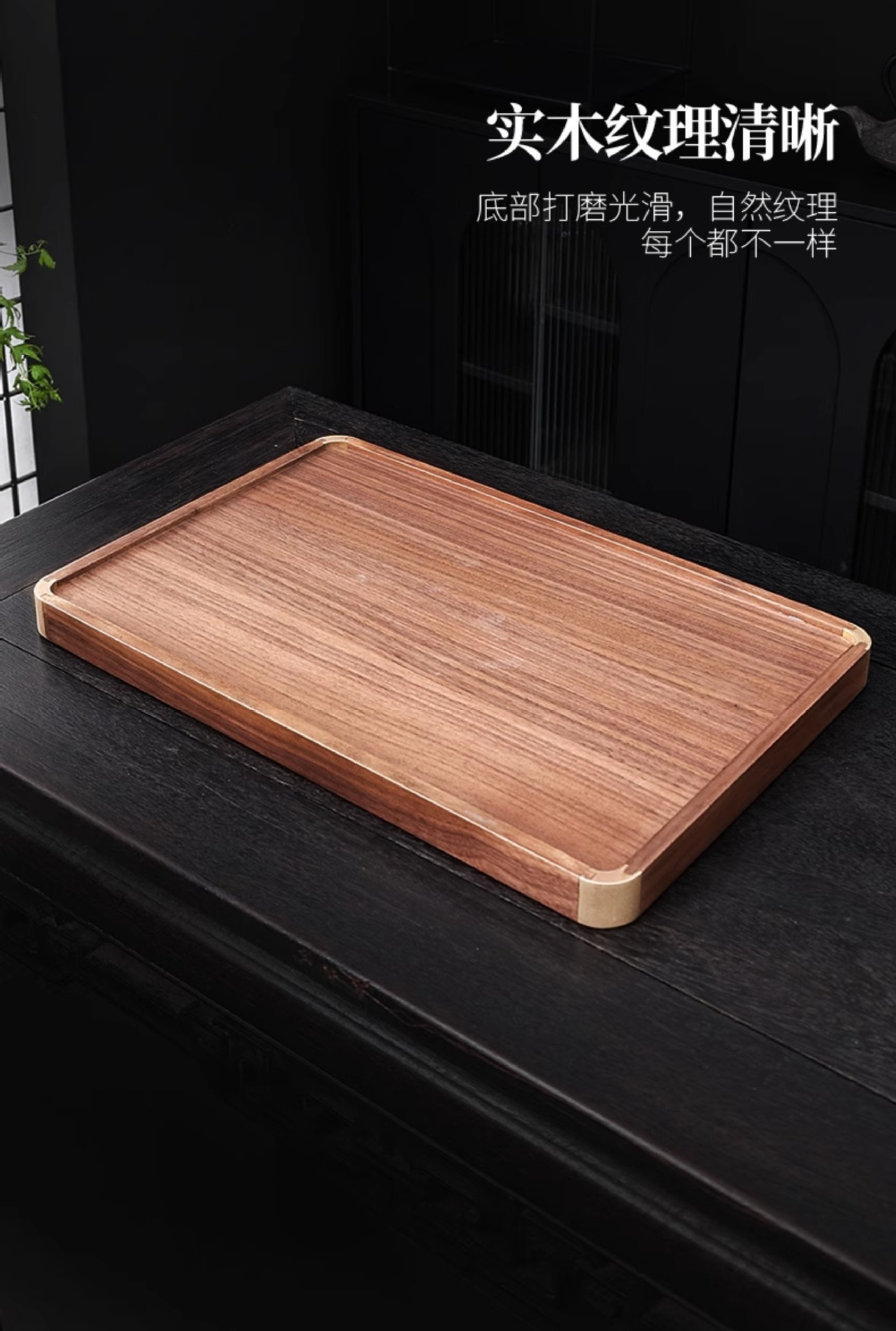 천연 북미 호두나무 차 트레이, 나무 트레이, 가정용 직사각형 수납 트레이, 구리 코너 상감 트레이, 트레이