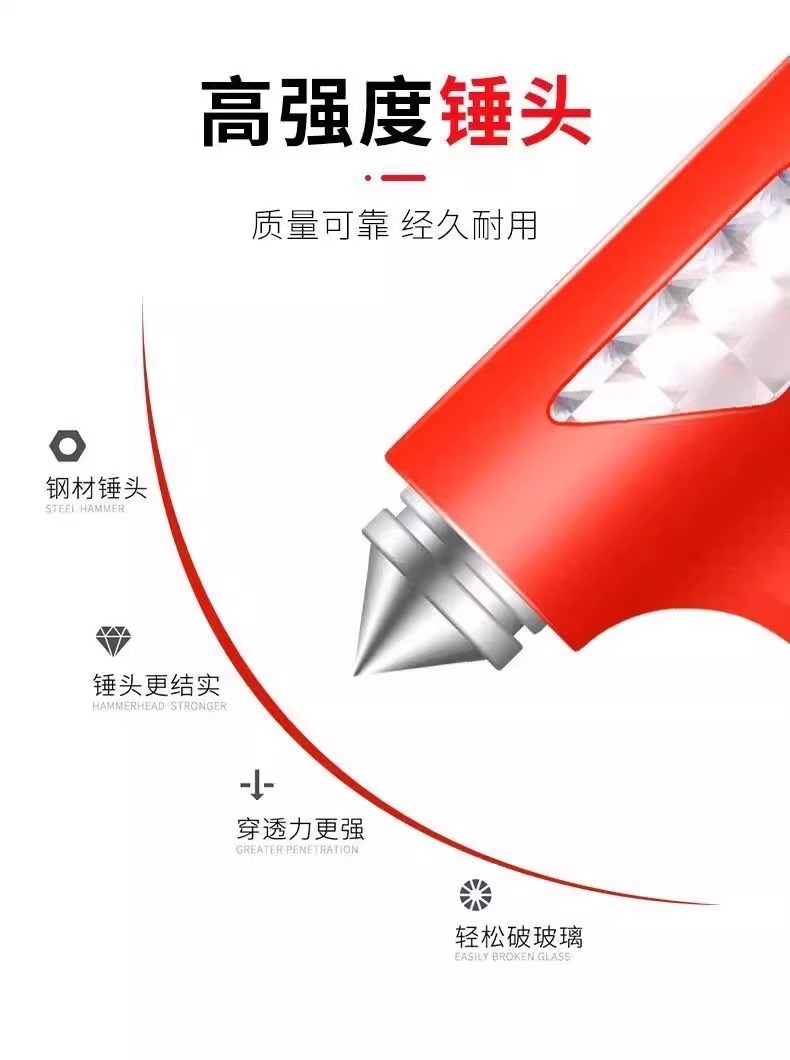 2.尖锐牢固的尖头锤,遇到事故可击碎玻璃安全逃生