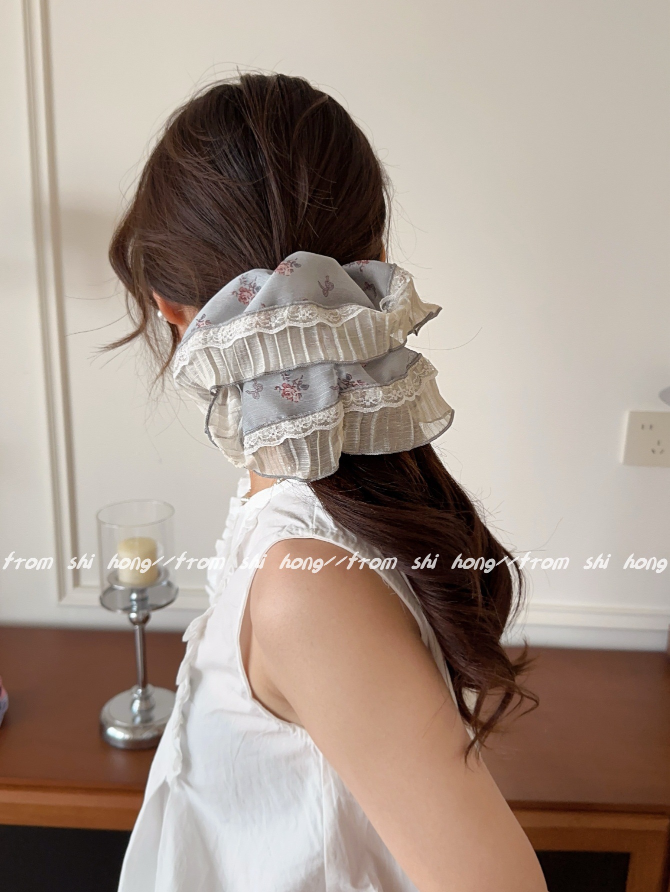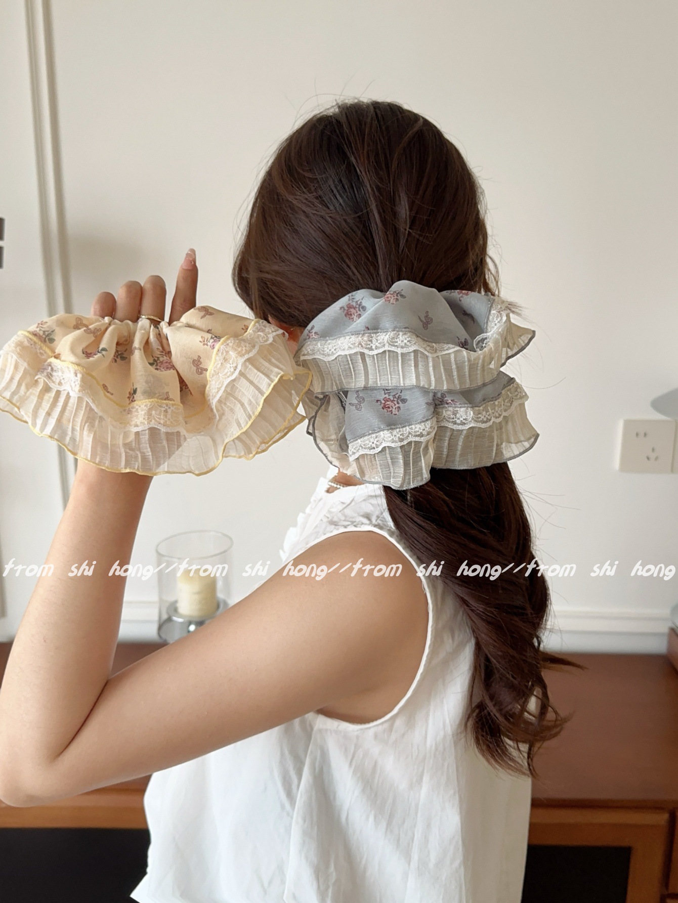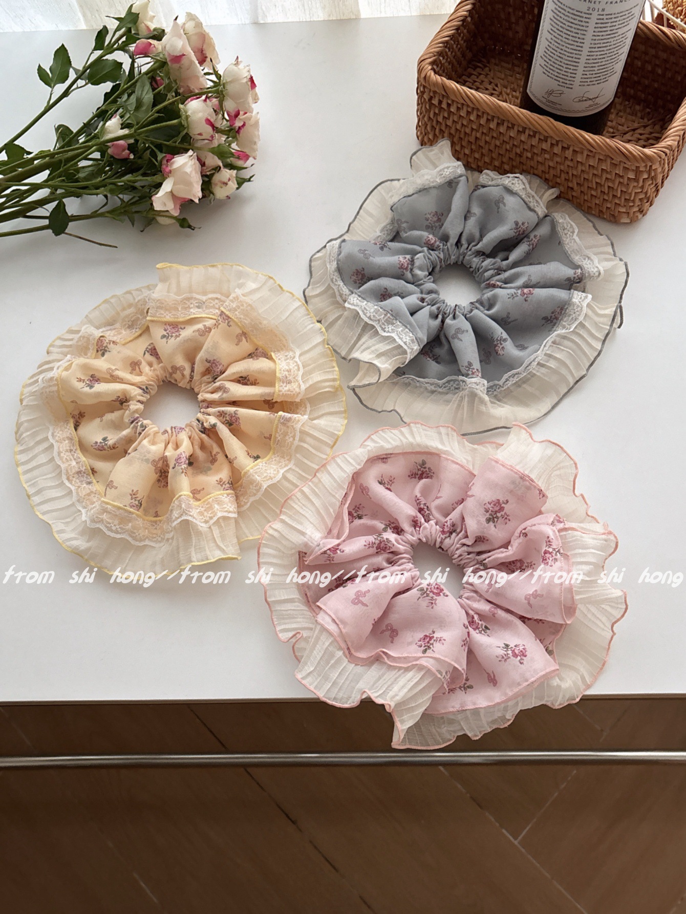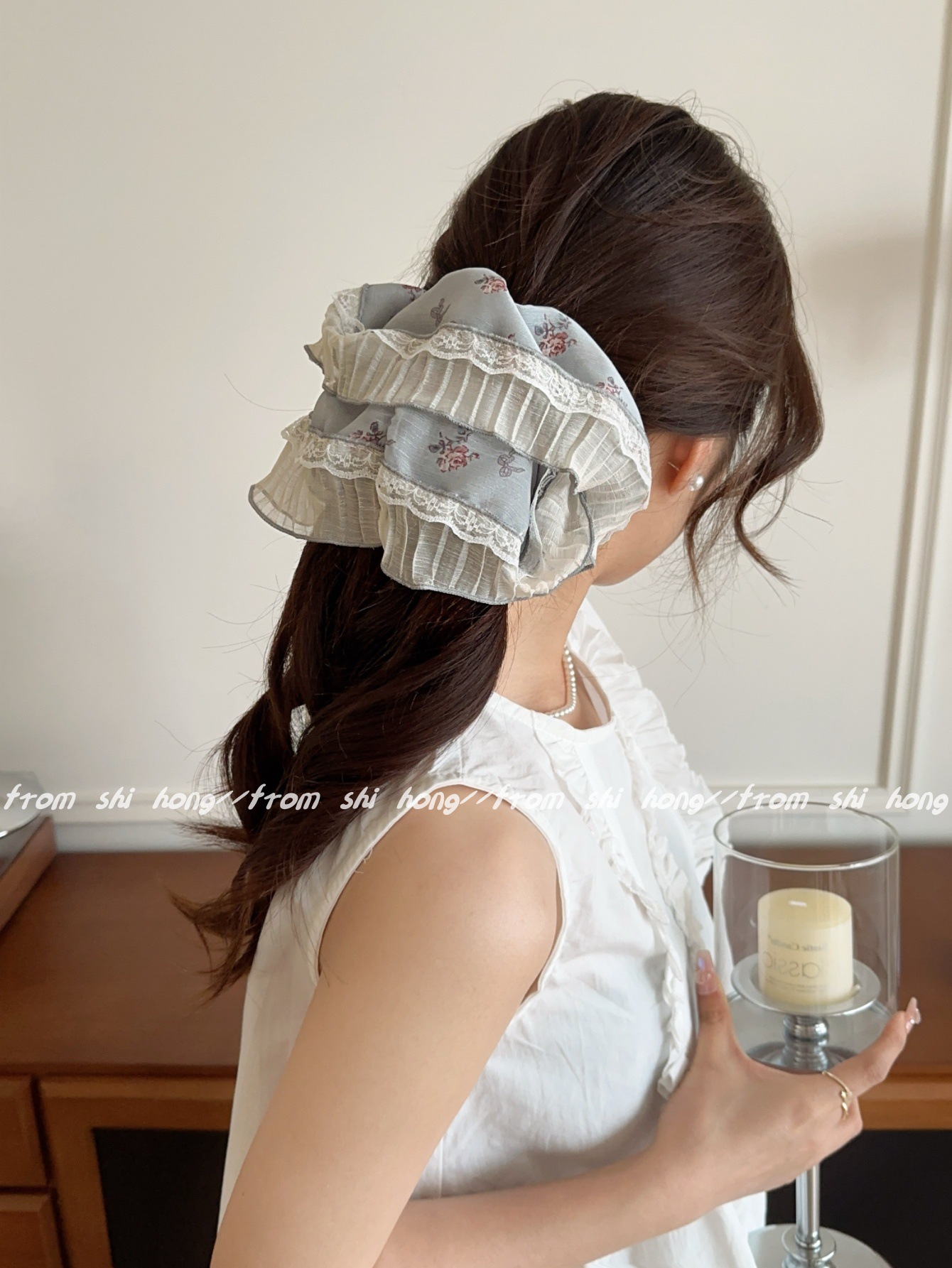 여름 신선하고 달콤한 꽃 러플 레이스 대형 장내 헤어 링 여성 한국 스타일 볼 헤어 로프 낮은 말굽 헤드웨어스토어 가기