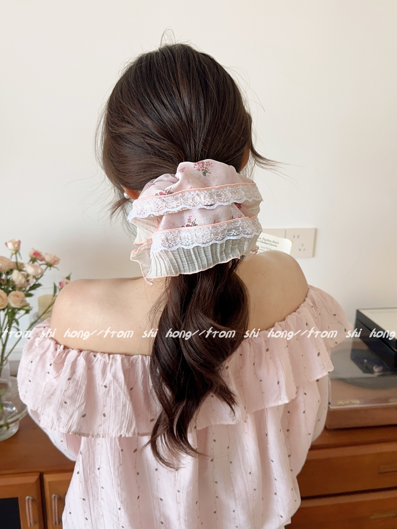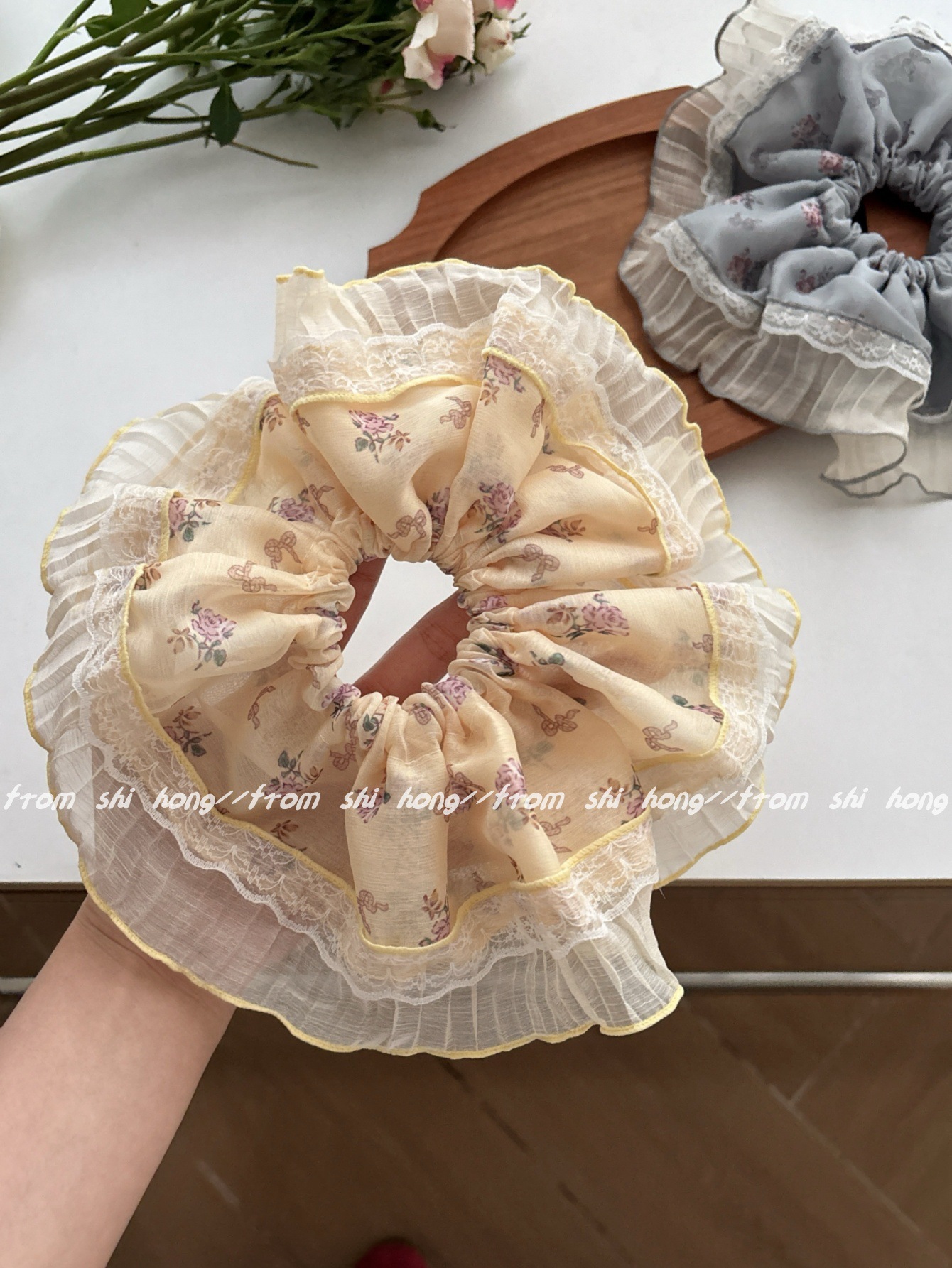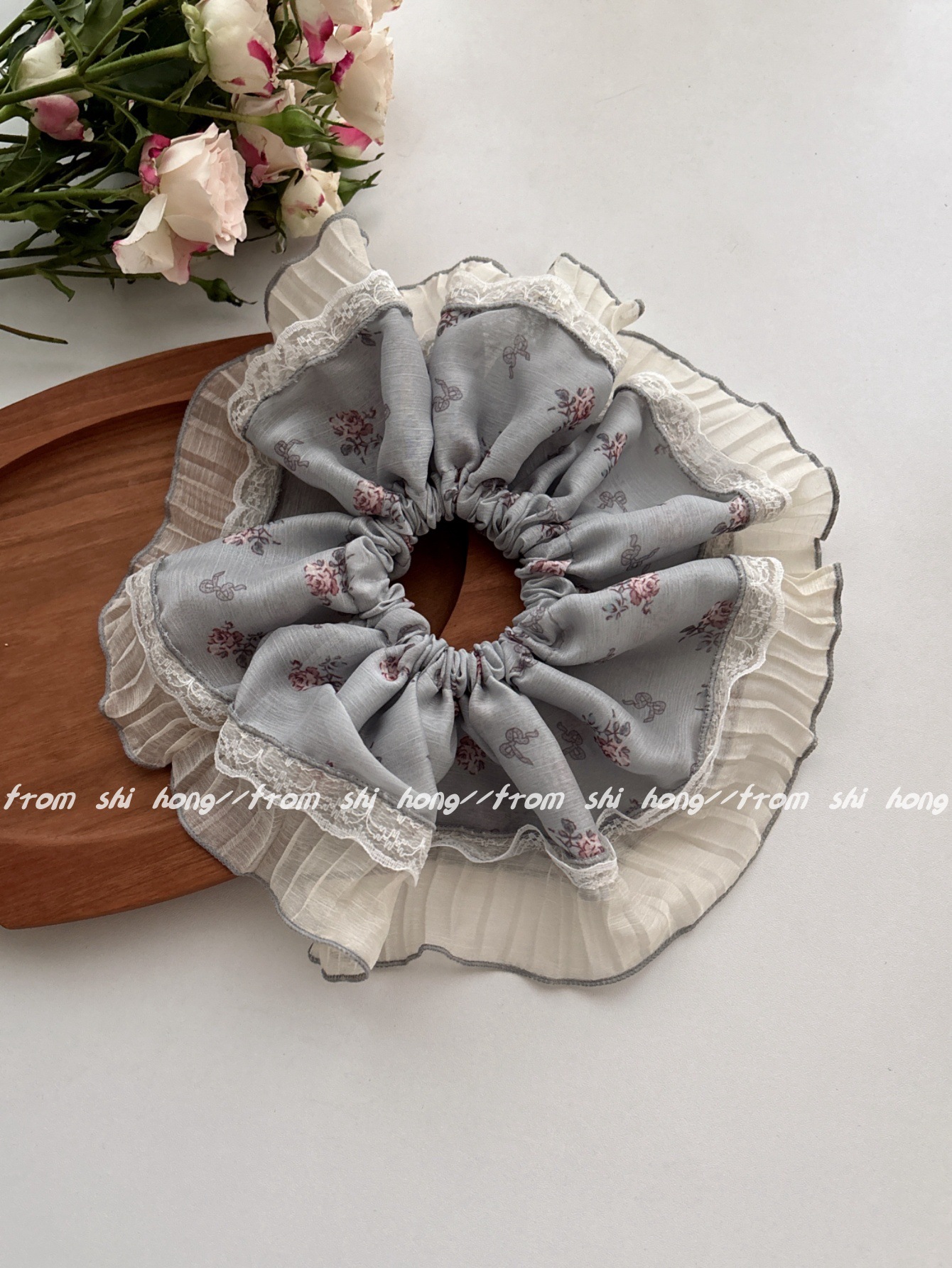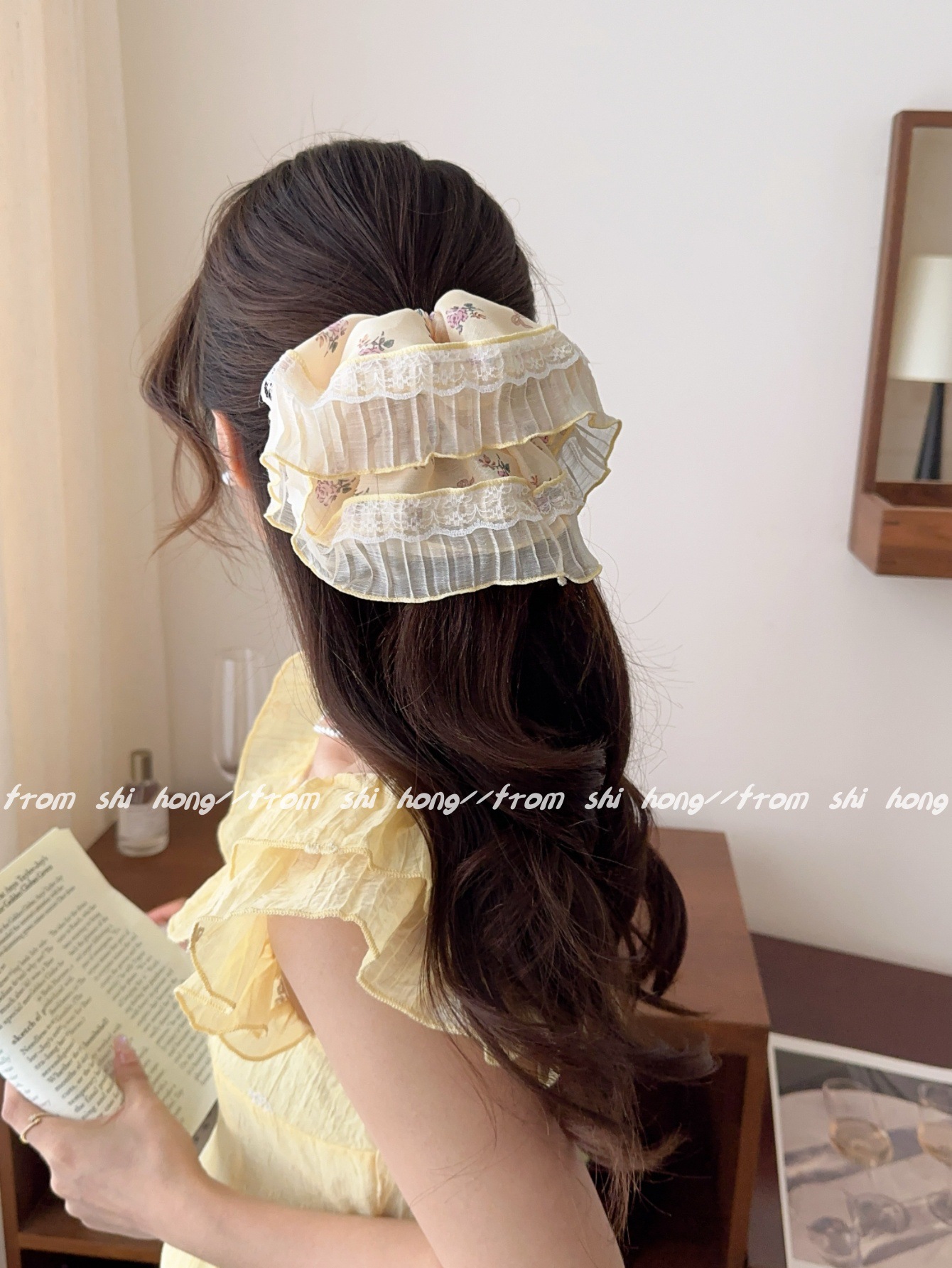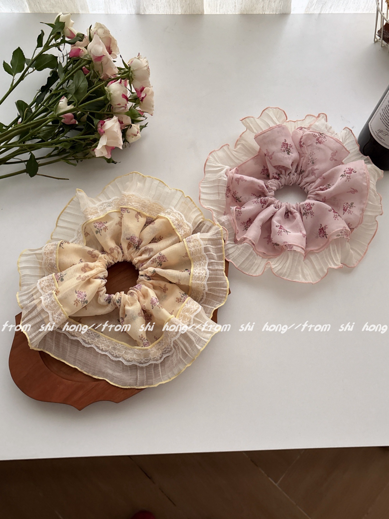 여름 신선하고 달콤한 꽃 러플 레이스 대형 장내 헤어 링 여성 한국 스타일 볼 헤어 로프 낮은 말굽 헤드웨어스토어 가기